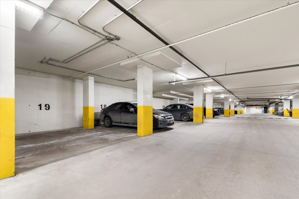 TERRASSES WINDSOR! Bright corner unit ideally located at the junction of Griffintown and downtown. Features abundant windows, an open living space, and two bedrooms positioned opposite each other for added privacy. Enjoy unobstructed views, a larger-than-average indoor parking space, indoor gardens and exercise room. Prime location near ÉTS, Bonaventure and Lucien-L'Allier metro stations, grocery stores, pharmacies, the Bell Centre, and the restaurants and trendy spots of Notre-Dame Street. New heat pump installed in 2025. Quick occupancy possible.