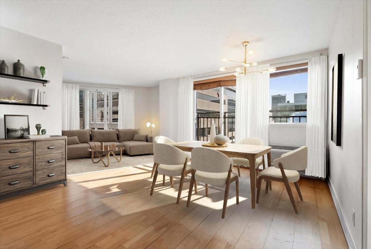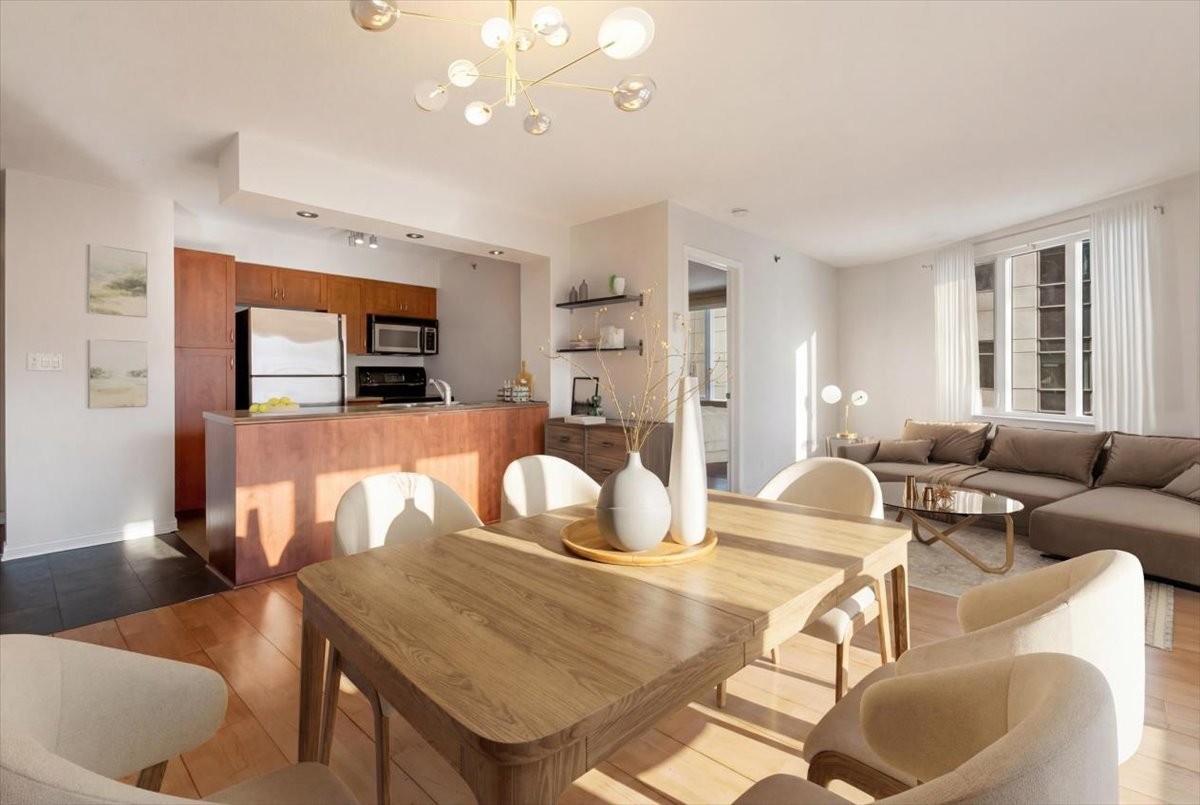 Unité de coin partiellement meublé moderne au YUL avec 2 chambres, 1 salle de bain et espace lumineux à aire ouverte. Fenêtres pleine hauteu...