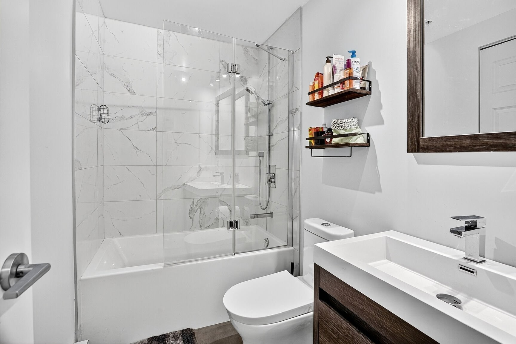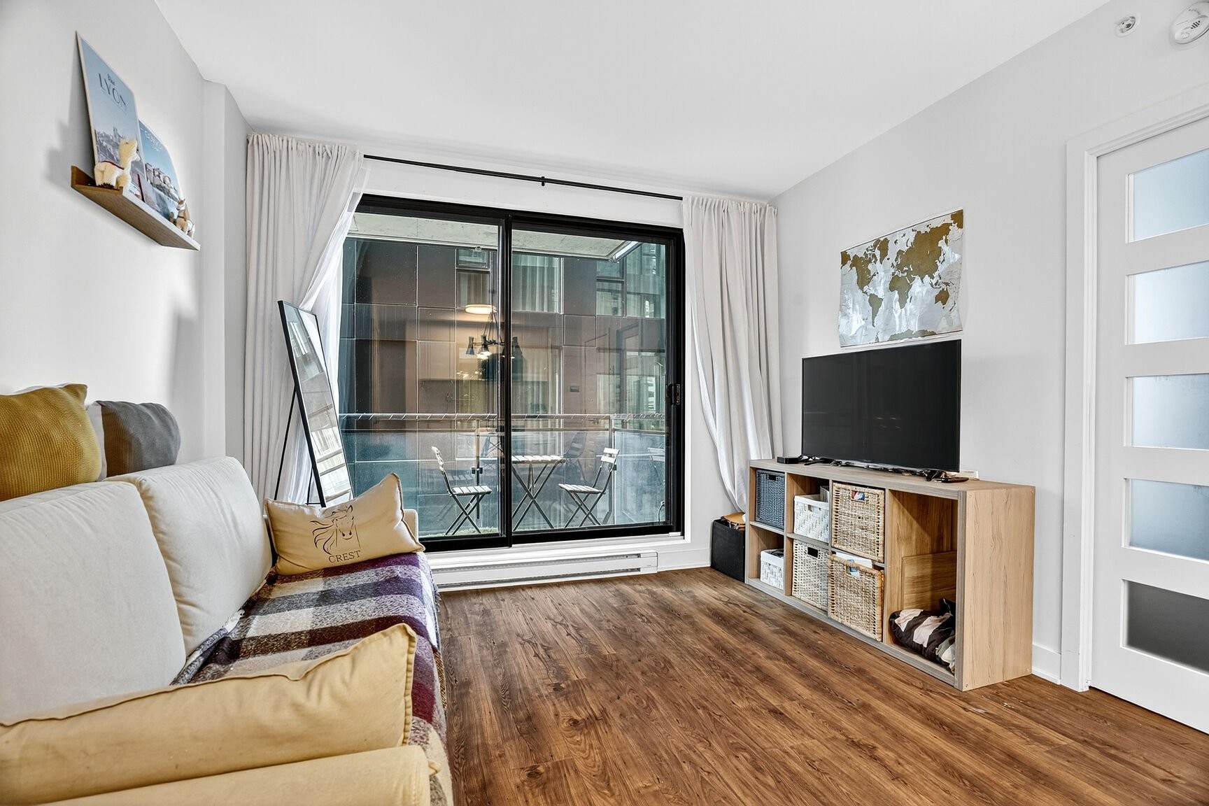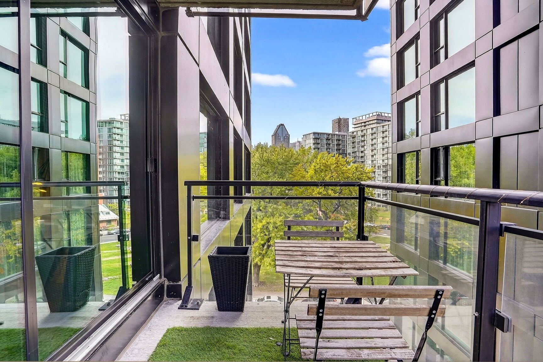 Discover this charming one-bedroom condo in a recent (2020) building offering a modern, full-service lifestyle. Enjoy upscale amenities including a pool, fully equipped gym, and a common lounge ideal for remote work or entertaining. The bedroom features a unique view of the iconic Five Roses sign, a true Montreal landmark. Bright, functional, and well-designed living space--perfect for a first-time buyer, a city pied-à-terre, or an investment in a sought-after location.