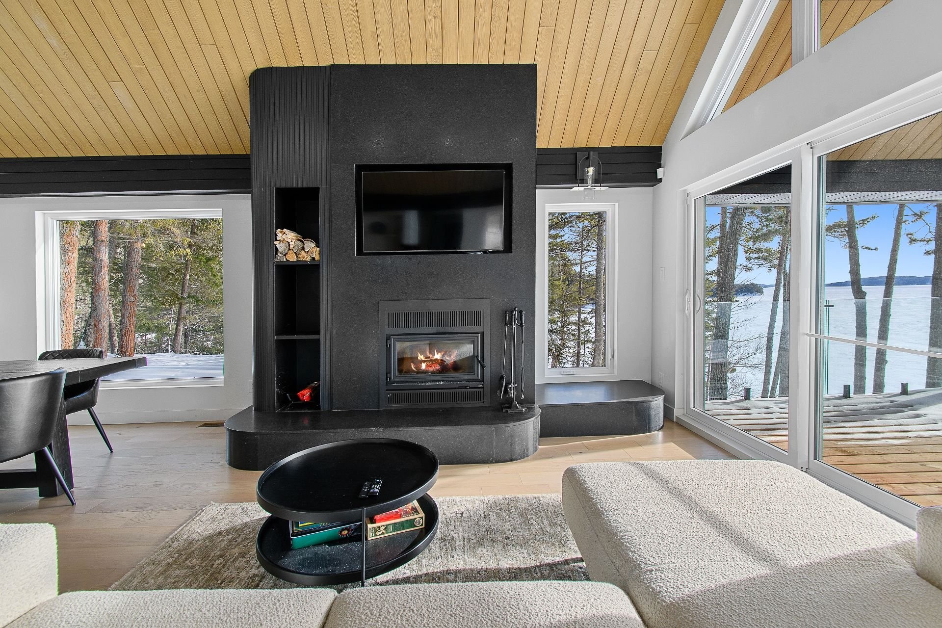 Outside, the property sits on a beautifully wooded lot of over 62,000 sq. ft., offering peace, serenity, and direct access to the navigable lake--perfect for boating, swimming, paddleboarding, and unforgettable sunset moments.