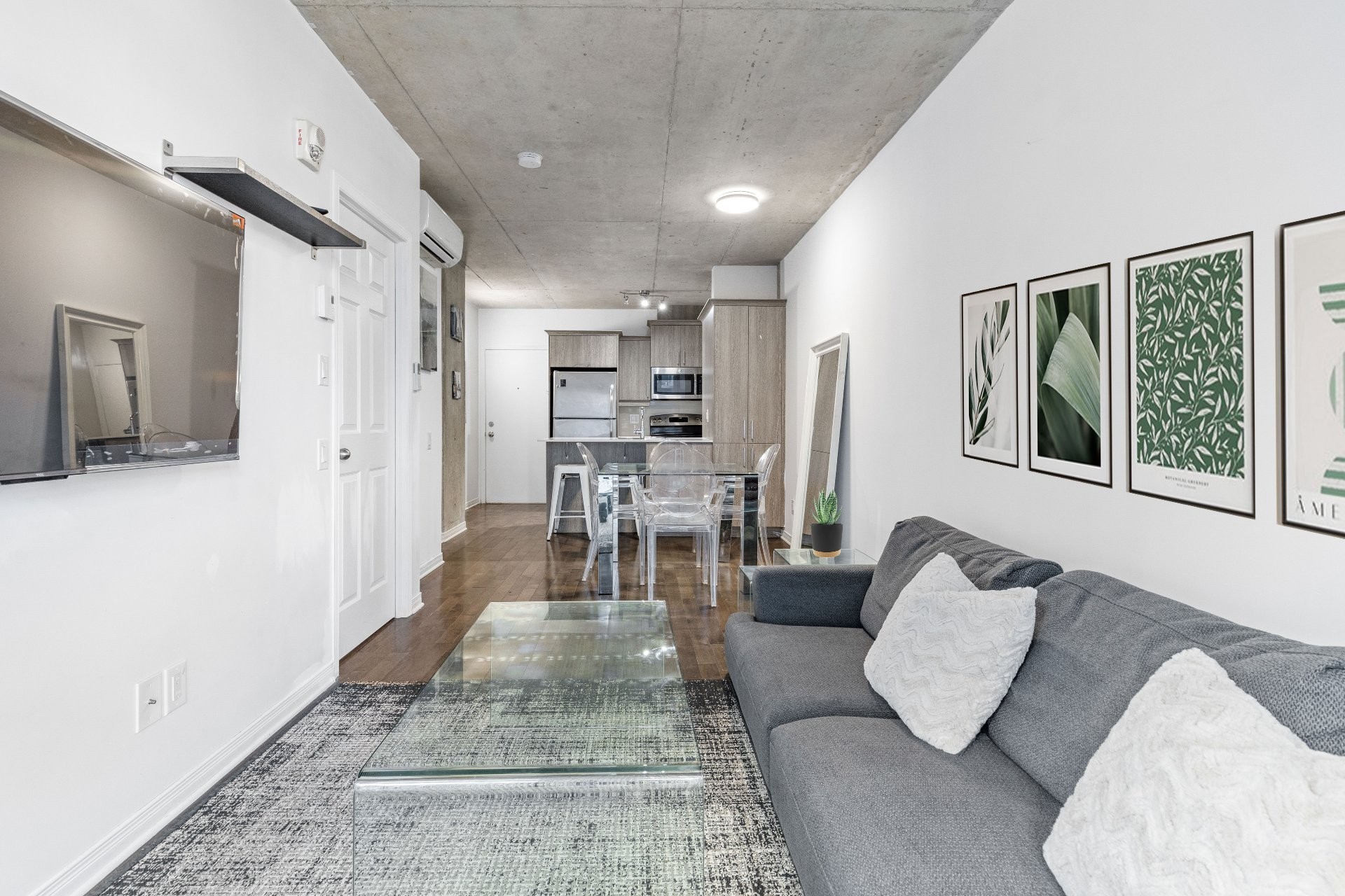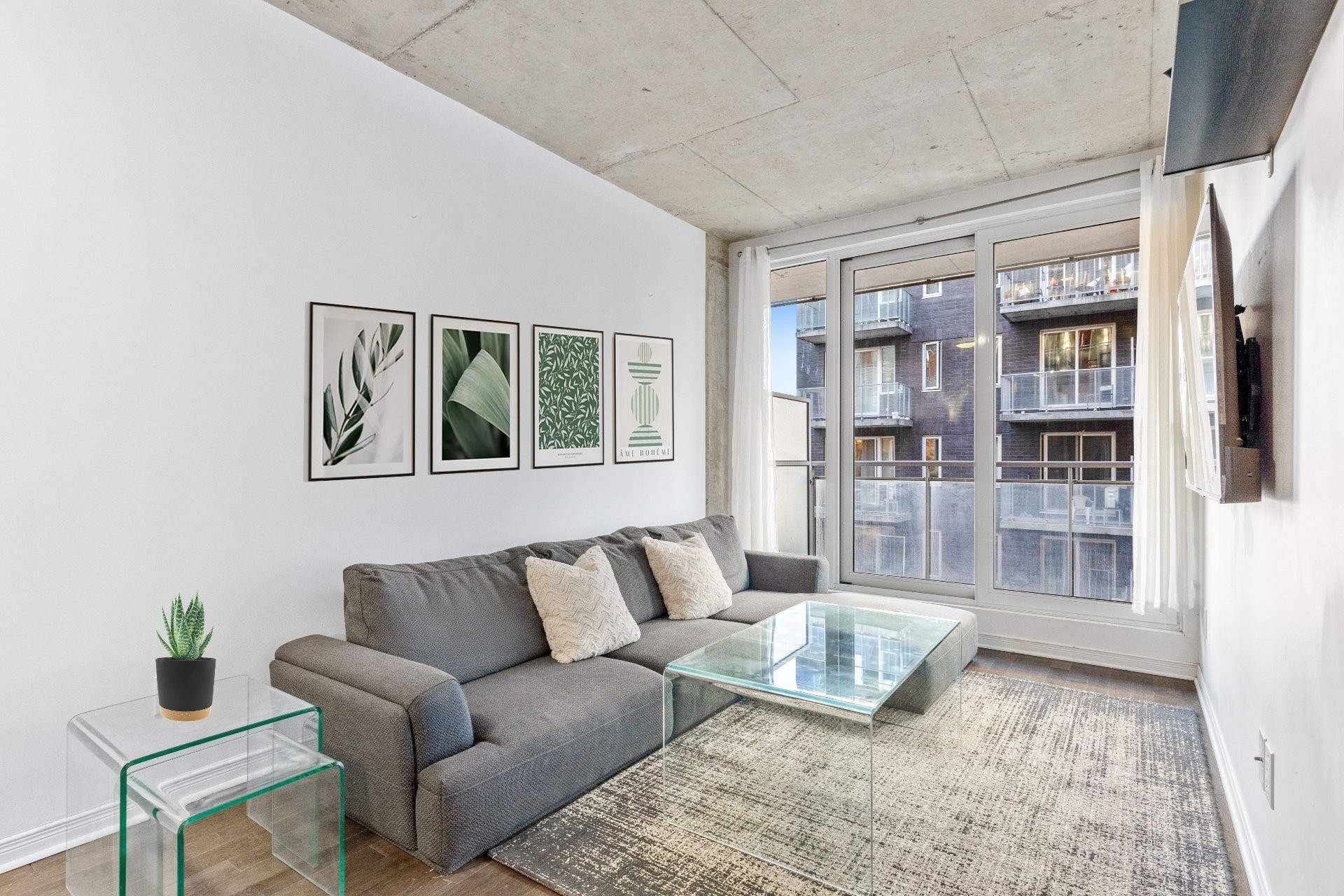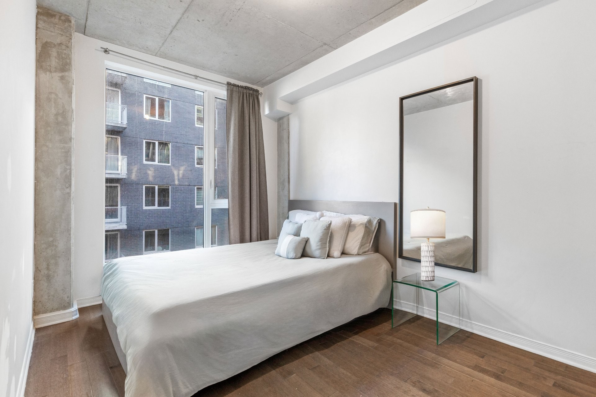 *available for February 1st occupancy* This exceptional unit truly embodies the essence of downtown Montreal living! Bright and airy, it features 1 spacious bedroom, 1 bathroom, and a private balcony that overlooks the bustling city skyline. Fully furnished, this condo offers a turnkey living experience, with all the modern appliances you need. Whether you're enjoying the panoramic views from your balcony or taking in the energy of the city below, this unit offers the perfect blend of comfort and convenience.