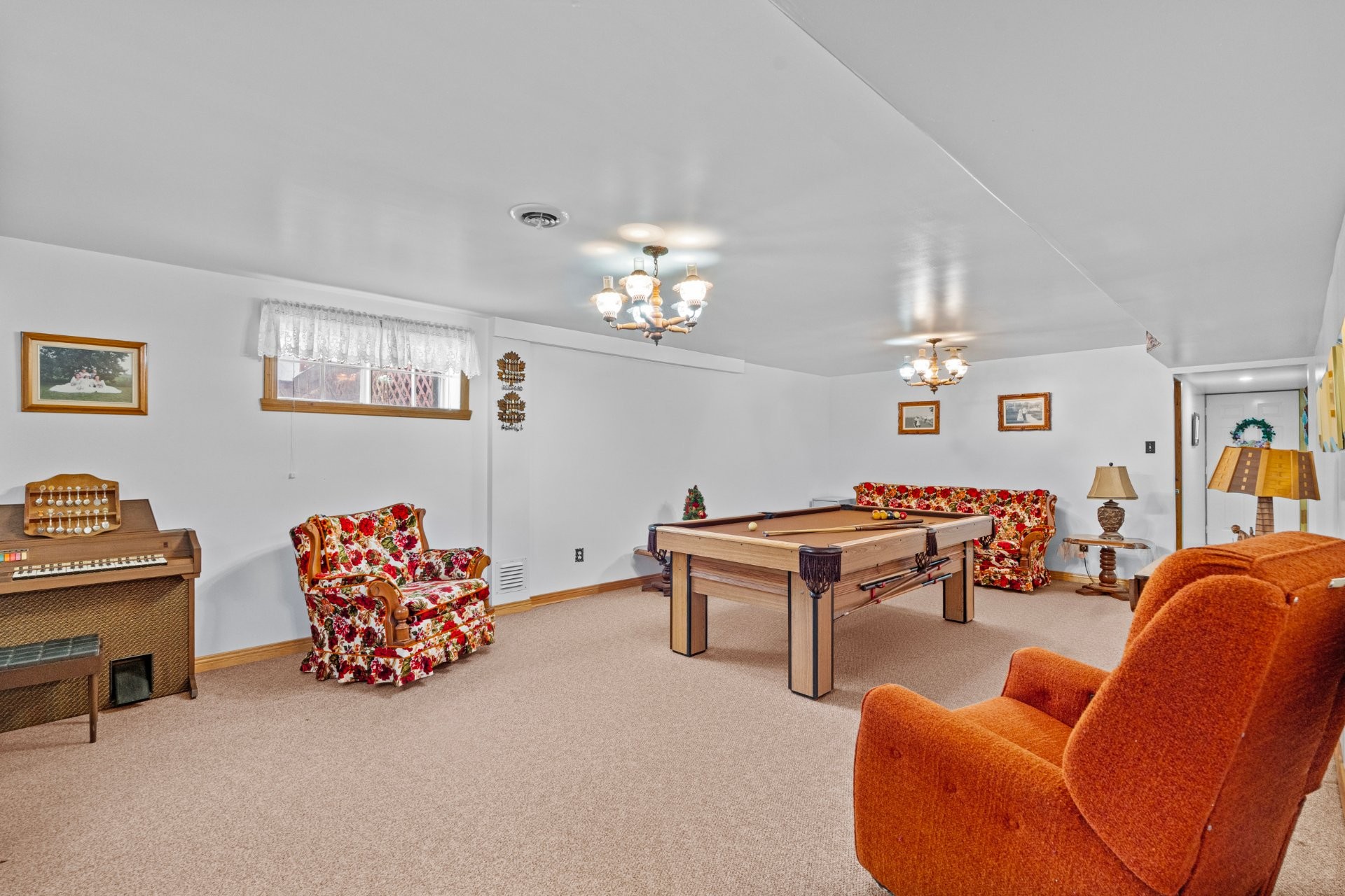 Pool table, washing machine, dryer, dishwasher, stove, fridge, microwave, blinds