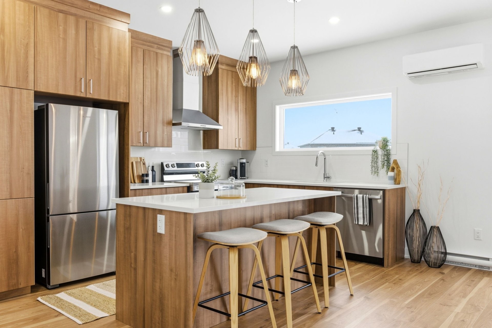 Curtain rods, window coverings, furniture, décor, mirrors, kitchen backsplash, quartz kitchen countertops instead of laminate, electric fireplace, wall-mounted heat pumps, and appliances. Photos are for illustrative purposes only. Final colour and material selections are to be determined by the Buyer based on the selections offered by the Seller.