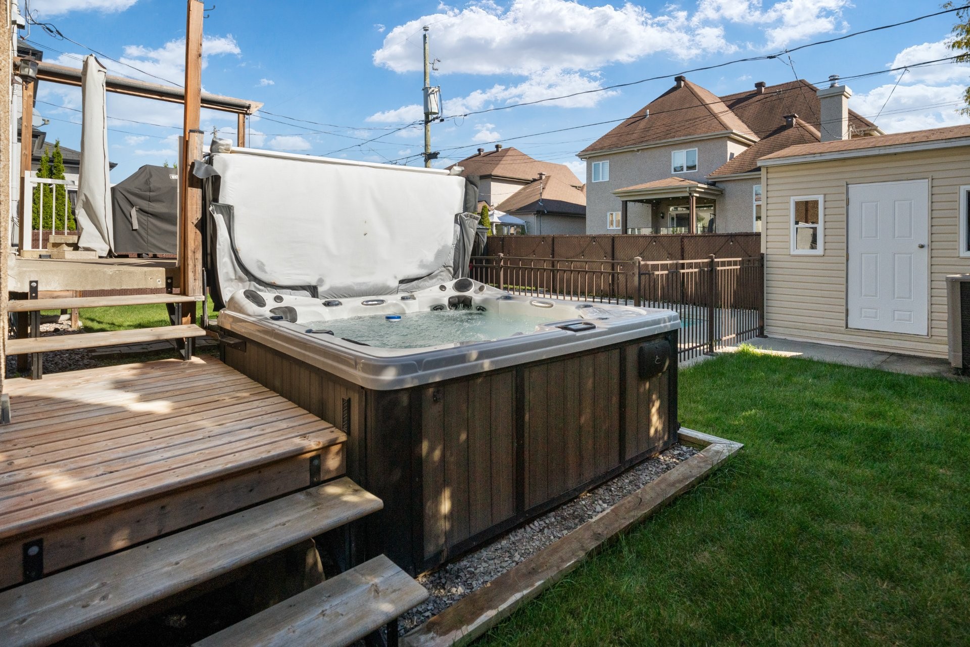 Upstairs, you'll find four generously sized bedrooms, providing ample space for a growing family, along with a beautifully renovated ensuite bathroom. The home continues to impress outdoors, where the backyard has been designed for enjoyment and relaxation. A stunning inground pool is perfectly positioned to capture sunlight throughout the day, complemented by a hot tub and deck--your own private retreat after a long day.