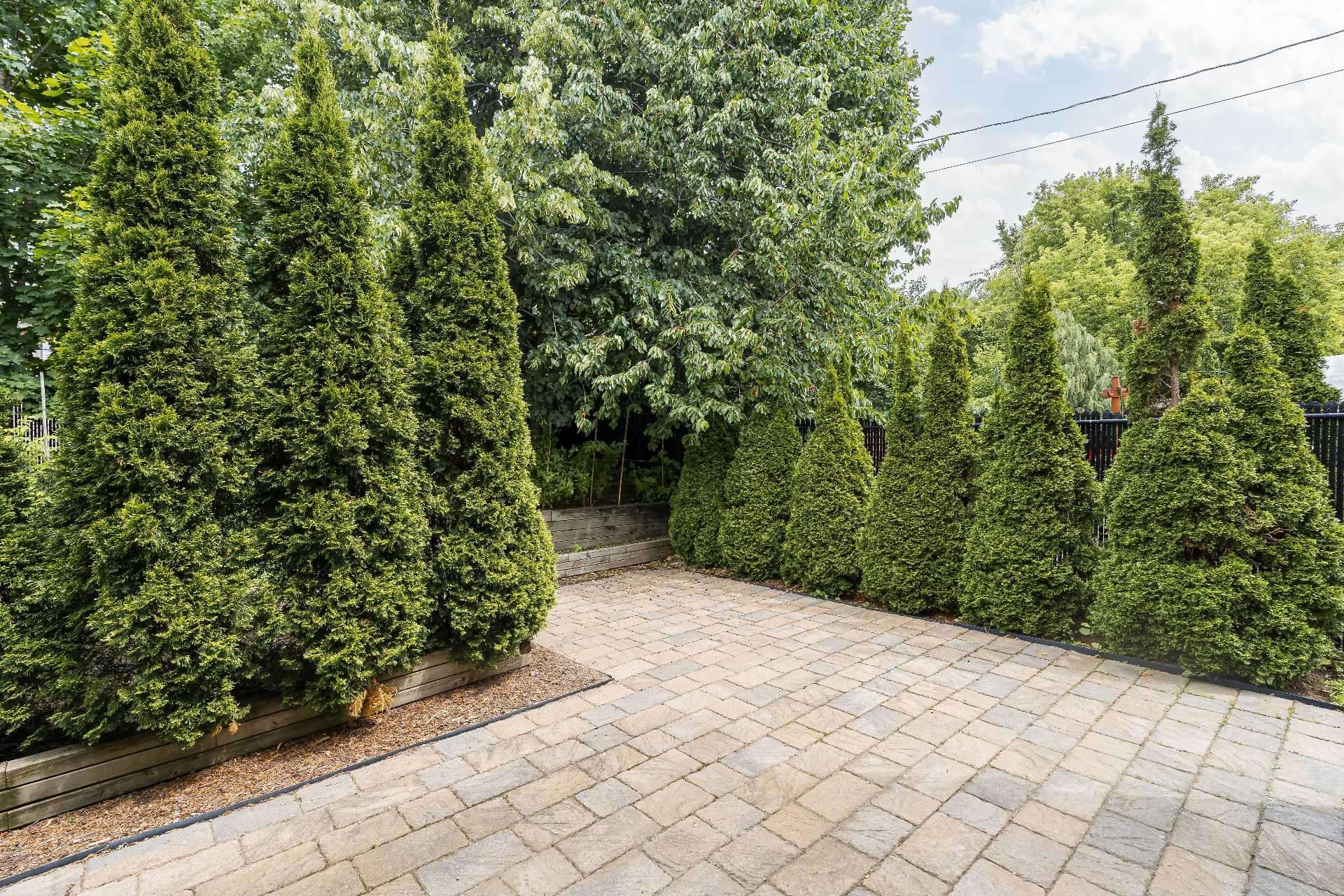 - Landscaping Fenced yard, Land / Yard lined with hedges, Landscape