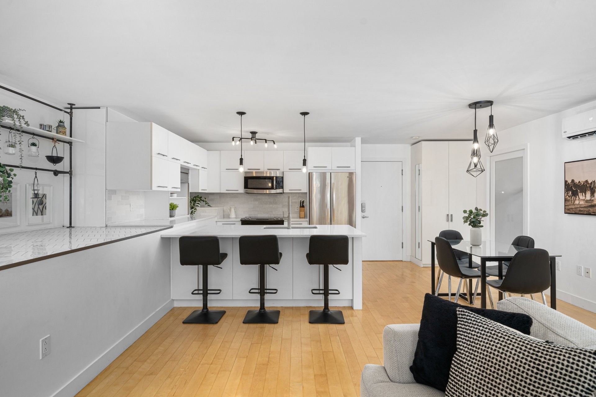 Walk score 100/100. Bright and spacious 1-bedroom condo (currently open like a studio, can be closed if desired) with 1 bathroom in a modern loft-style design. Featuring a stunning brick accent wall, abundant natural light, and exceptional storage both inside and with a private locker. The amount of storage is a huge surprise! Located on the 2nd floor--perfect for sunlight, privacy, and easy access. In a small, community-oriented building in the heart of the Village, steps from the metro, groceries, cafés, and restaurants. Short-term rentals (Airbnb) permitted (see listing agent), making this a rare lifestyle and investment opportunity.