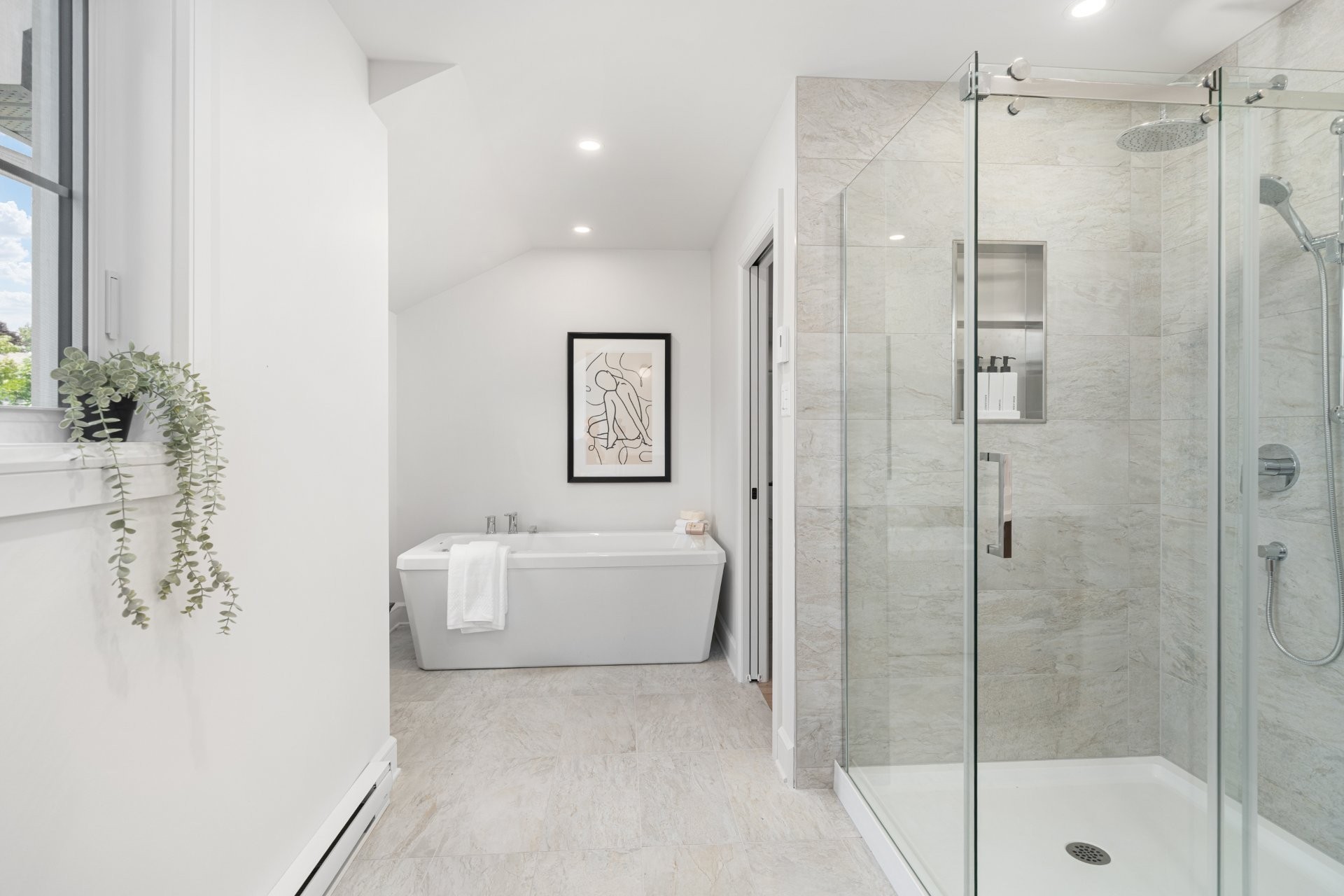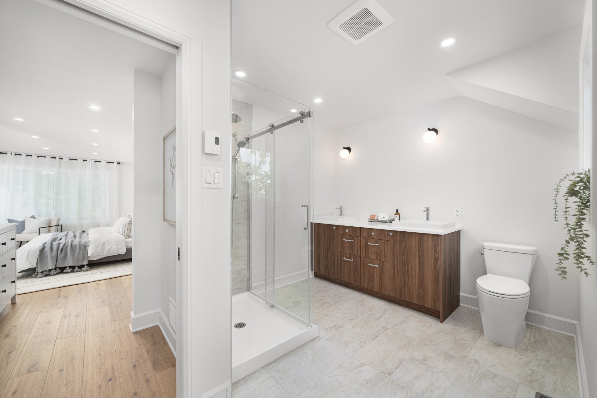 Upstairs, the primary suite offers a spacious retreat with a spa-inspired ensuite including a double vanity, glass shower, standalone tub, heated floors, and a custom walk-in closet. Two additional bedrooms and a stylish family bathroom with heated floors complete the upper level.