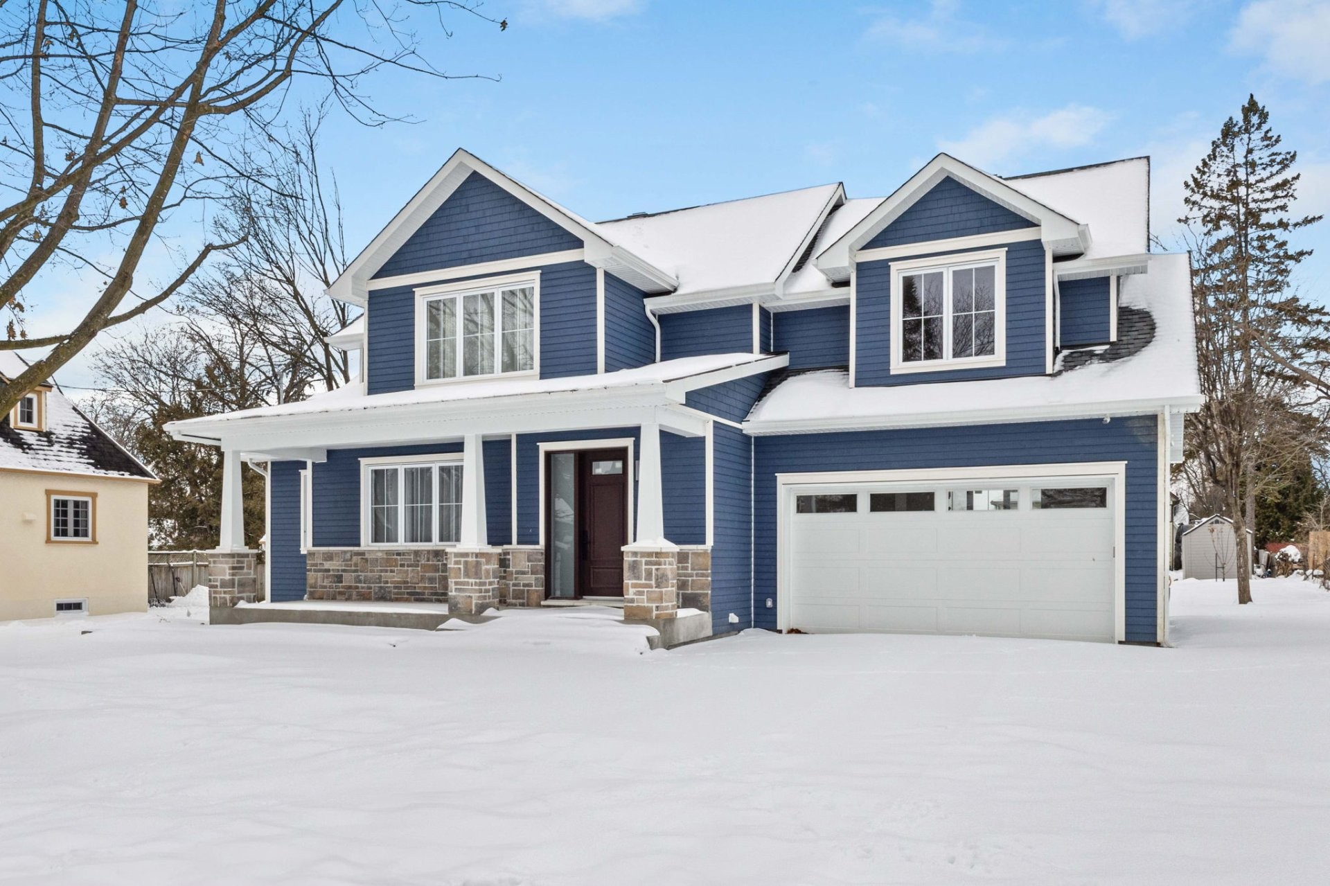 The fully finished basement provides flexibility for intergenerational living or guests, with a full kitchen, family room, bedroom, bathroom, and laundry. The exterior, finished with premium Maibec siding and natural stone, delivers durability and timeless curb appeal.