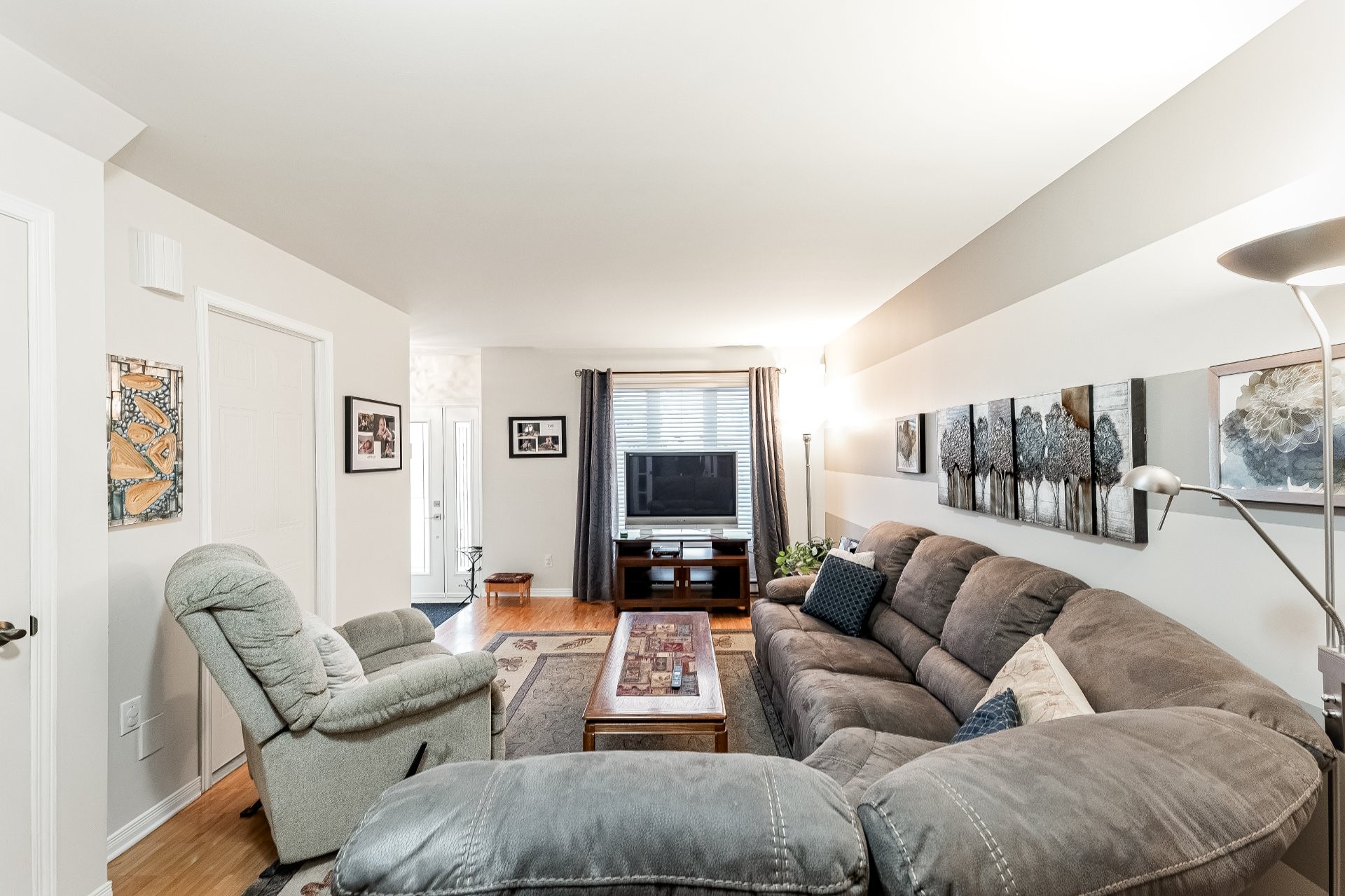 The main floor features a large, bright living room and a functional kitchen open to the dining room, creating a convivial space for meals with family and friends. It includes two comfortable bedrooms, a full bathroom, and a powder room, providing everything needed for everyday comfort. The fully finished basement includes a large family room and a multipurpose room that can be used as a playroom, office, or home theater, depending on your needs.