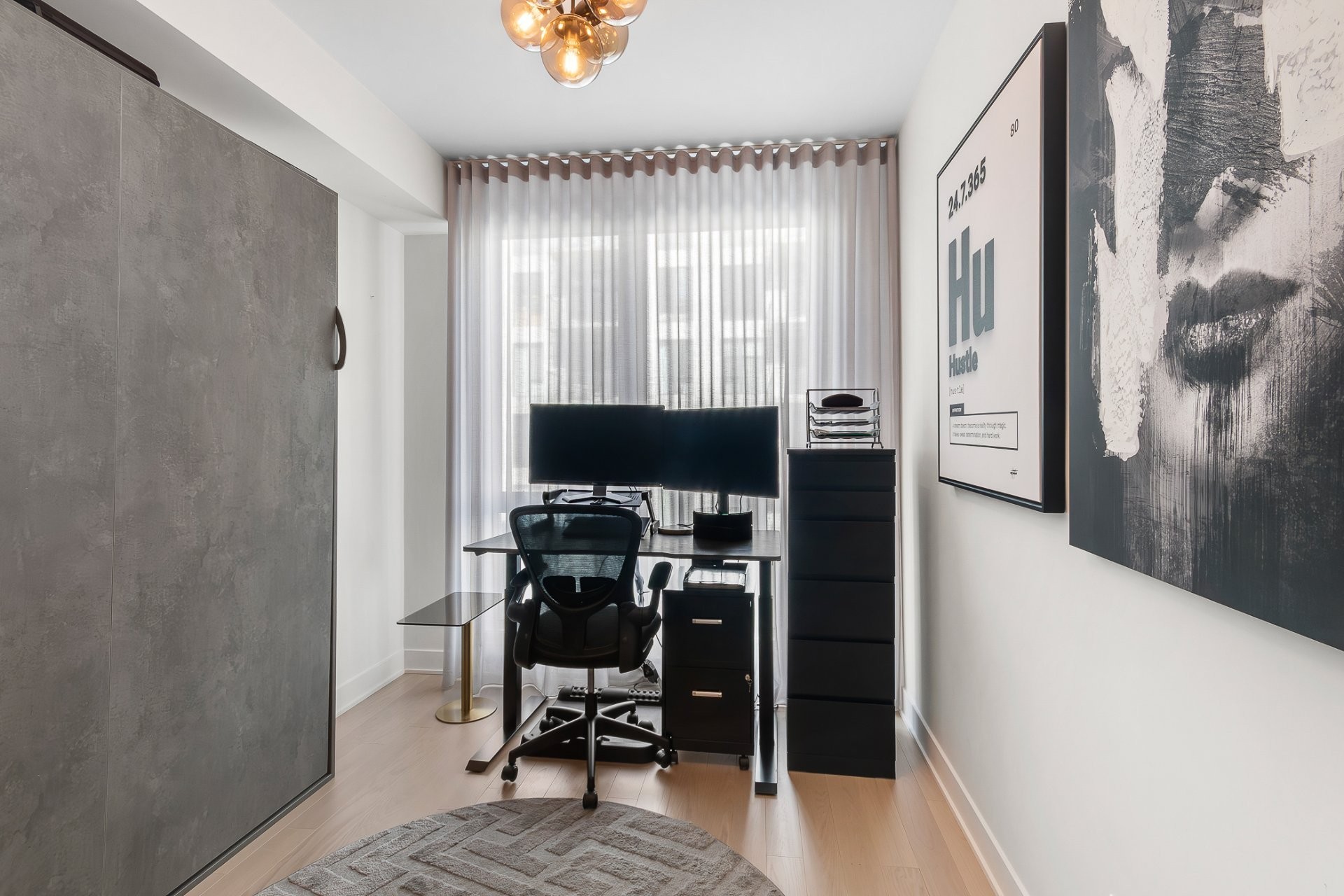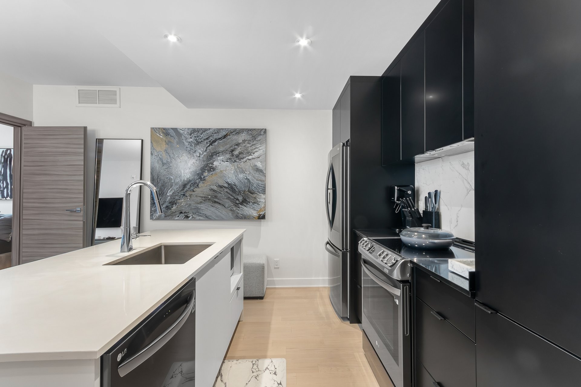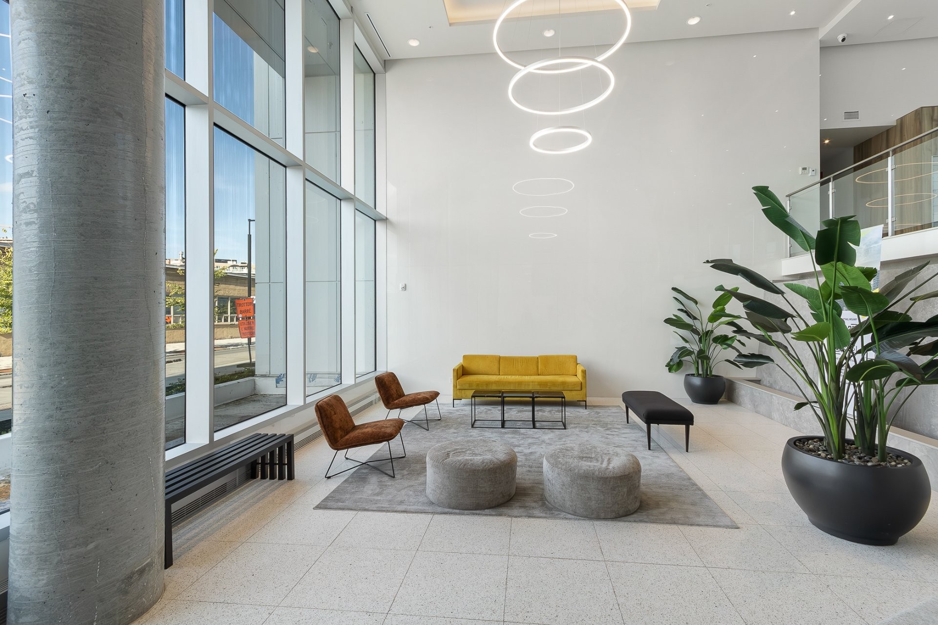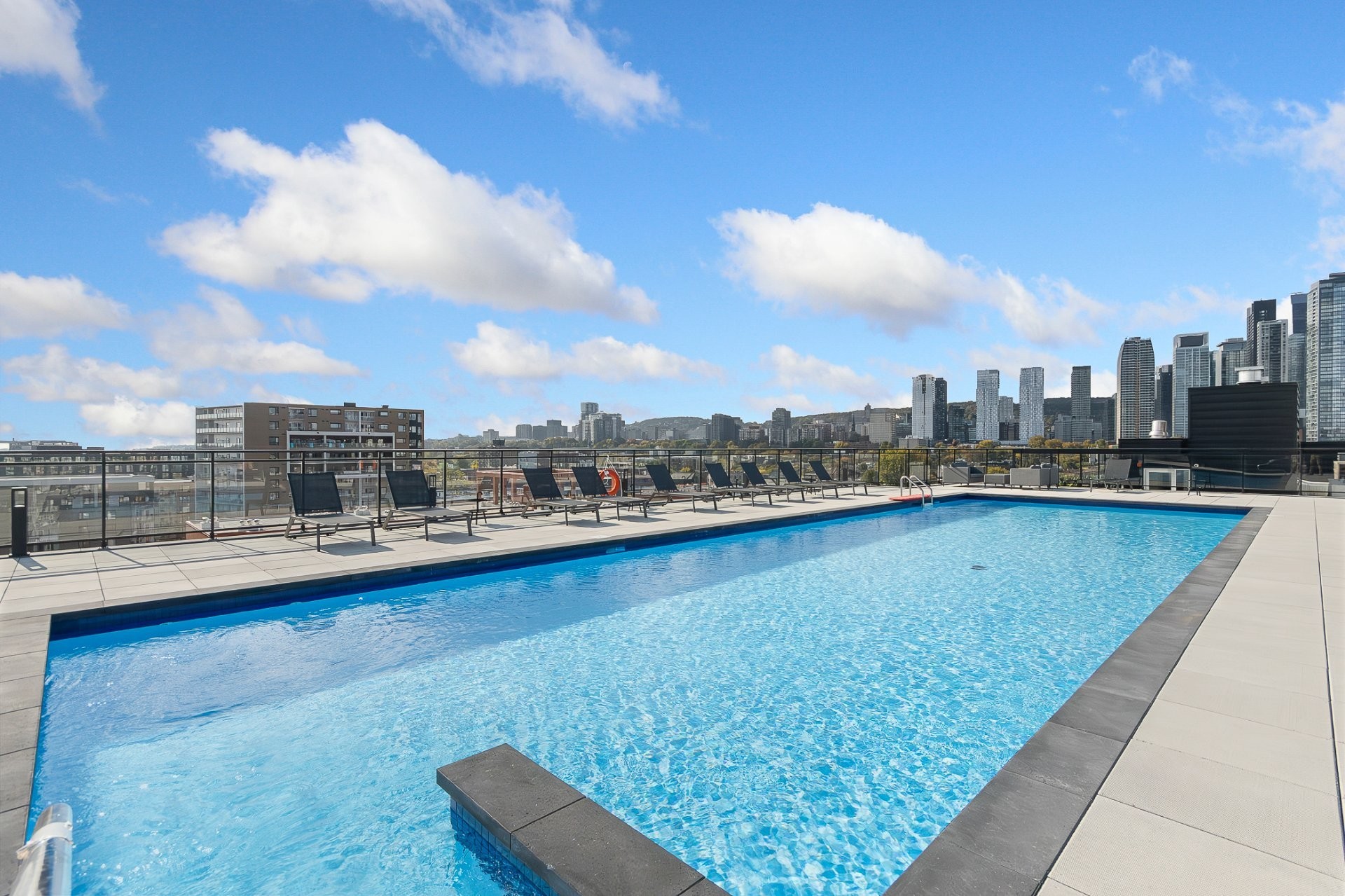 Welcome to Suite 521A of the BASS2 Project - A newly constructed & sophisticated building amongst the trendy, lively and well-situated neighbourhood of Griffintown! This luxurious unit is located in the inner courtyard and is equipped with impeccable upgrades. The modern amenities allow for one of the largest rooftop terraces in the city, a rooftop in-ground pool, large covered seating area, gym and an urban chalet. Enjoy the activities of the Lachine Canal just a few steps away and the breathtaking views of the city once on the rooftop!