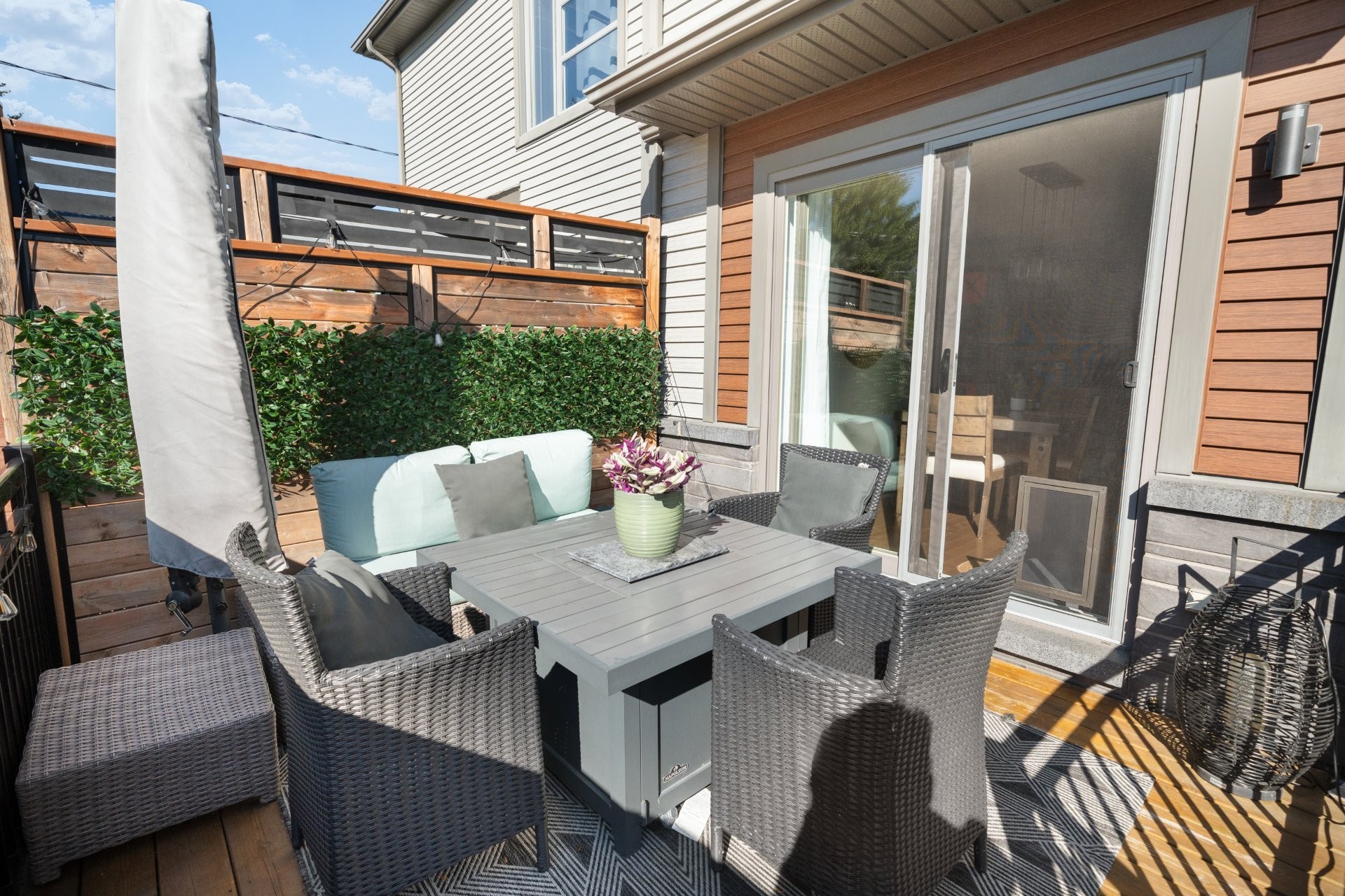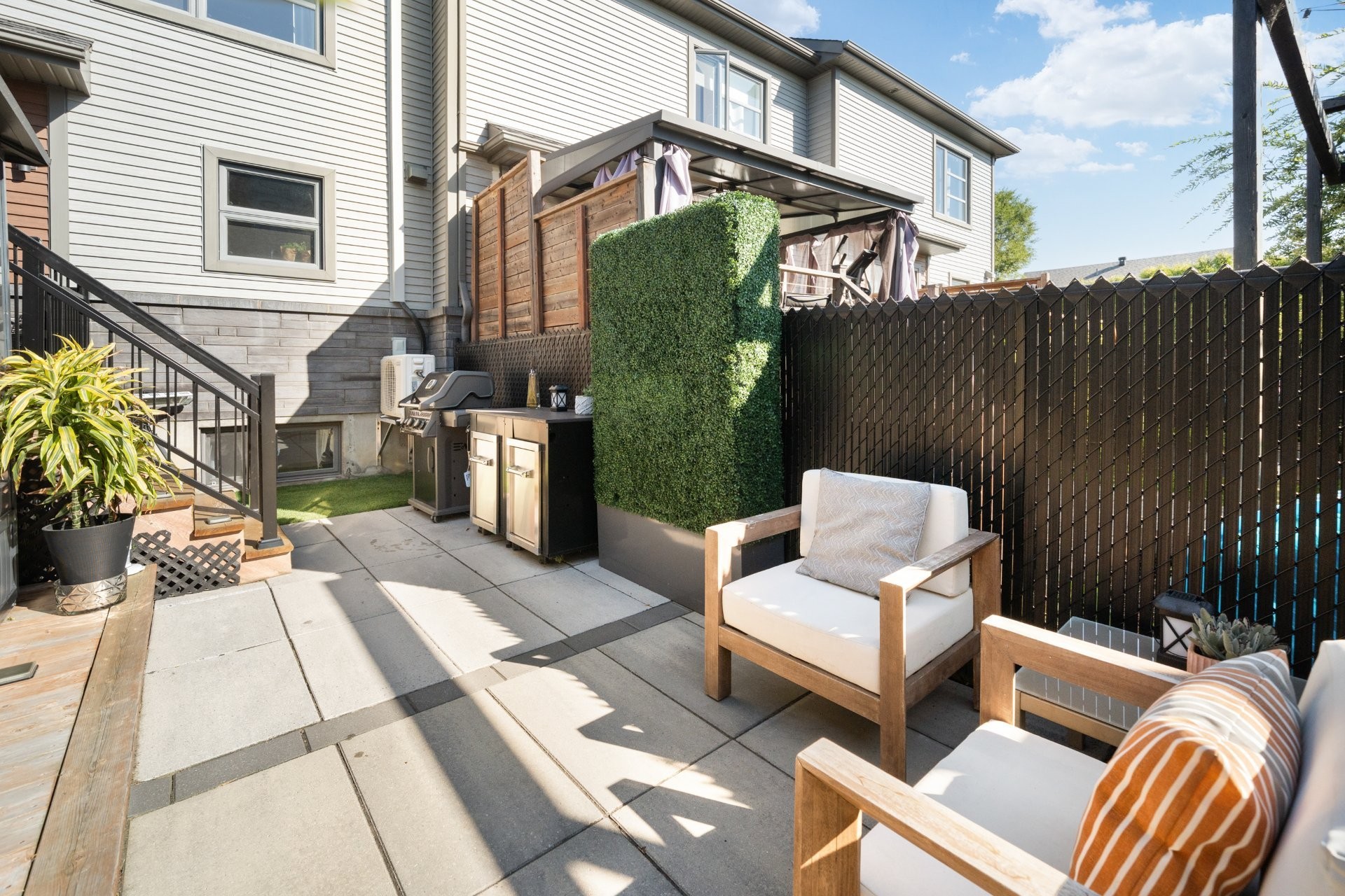 Beautifully renovated townhouse with great attention to detail. Modern kitchen with quartz countertops and heated floors. Inviting living room featuring an electric fireplace and ceramic accent wall, with hardwood floors on the main and second levels. Two spacious bedrooms upstairs and a fully renovated main bathroom with heated floors. Finished basement with a renovated bathroom and family room, designed to easily add two closed bedrooms while maintaining living space. Outside: paving stone, gazebo platform, synthetic grass, and gazebo included. Numerous quality upgrades and improvements over the years. Move-in ready!