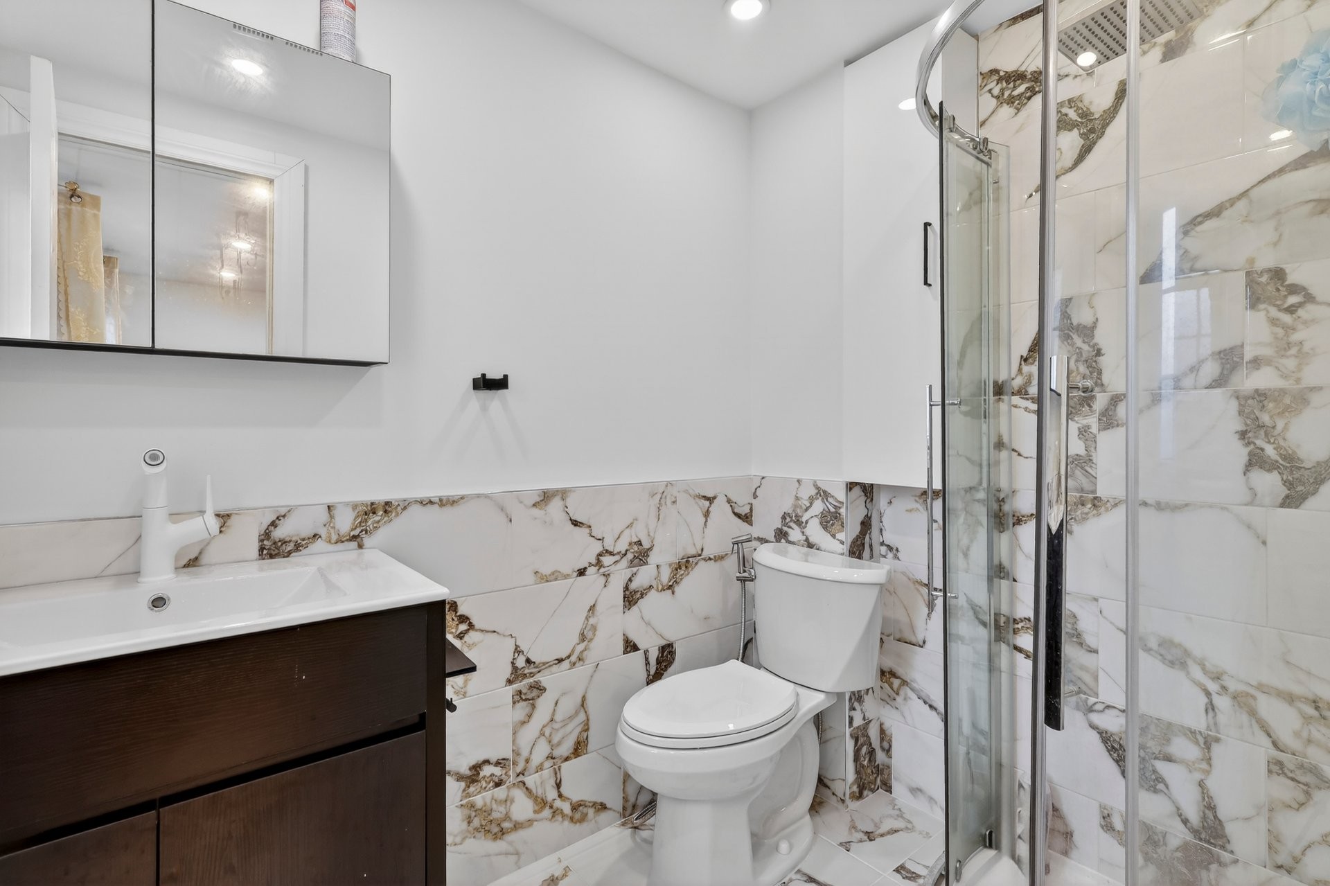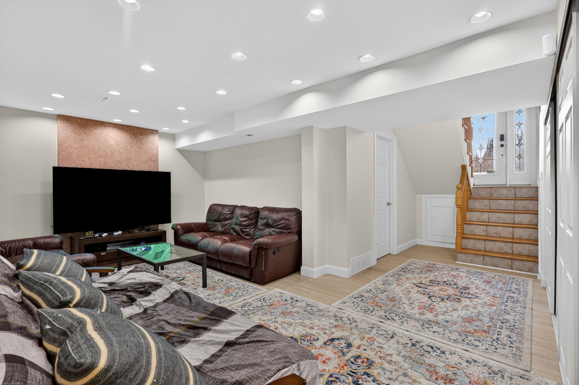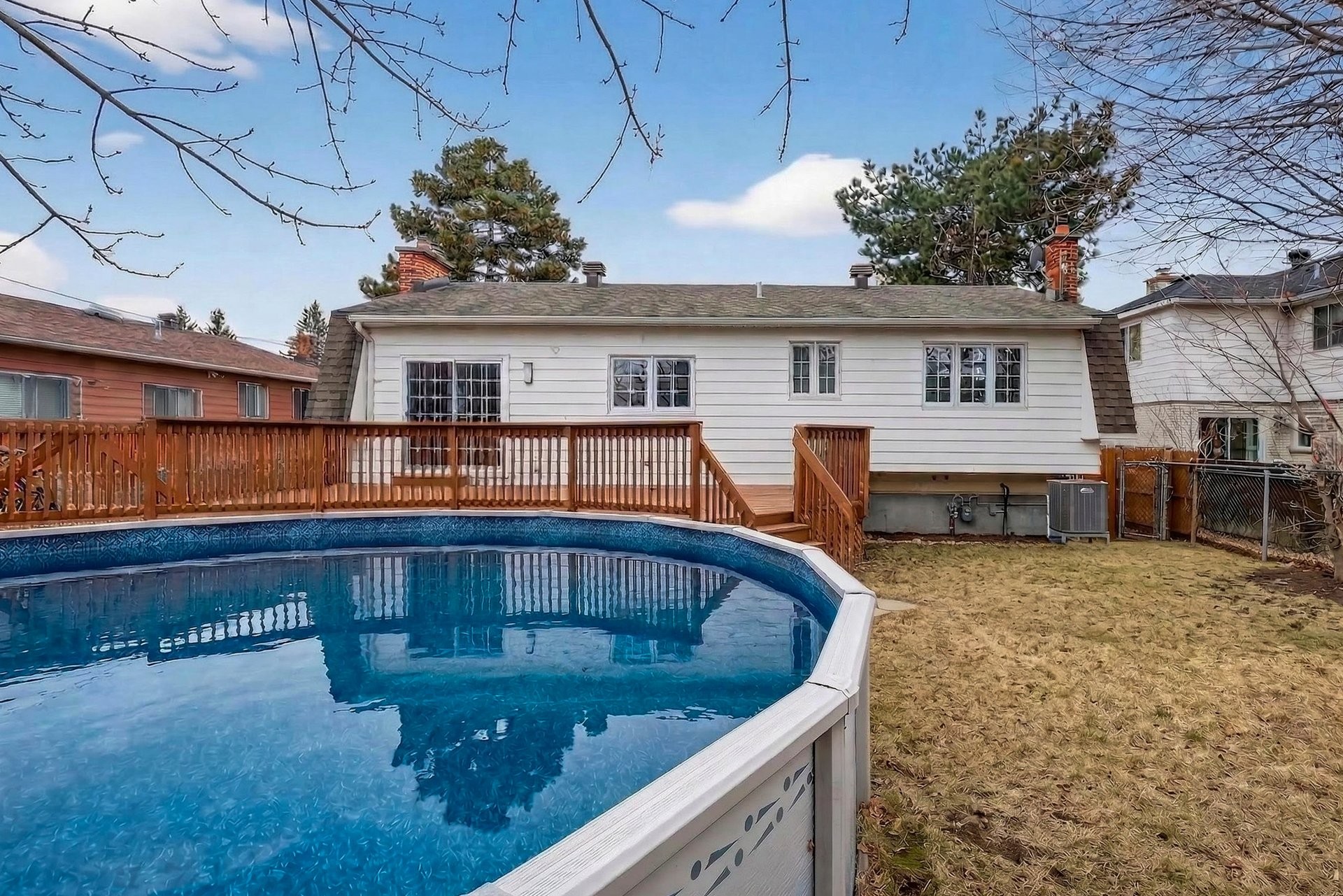 Move-in ready bungalow with a spacious combined living and dining areas with high ceilings and pot lighting. The dining room has a patio door leading to a large deck overlooking the pool and yard. Renovated designer kitchen features quartz counters & backsplash. A generous primary suite includes a beautifully updated ensuite bathroom. The finished basement with large playroom and an additional bedroom. Extensively updated with a newer furnace, heat pump, kitchen, both bathrooms, and electrical panel. Centrally located and within walking distance to Synagogues and Centennial park. An opportunity to Start smart!