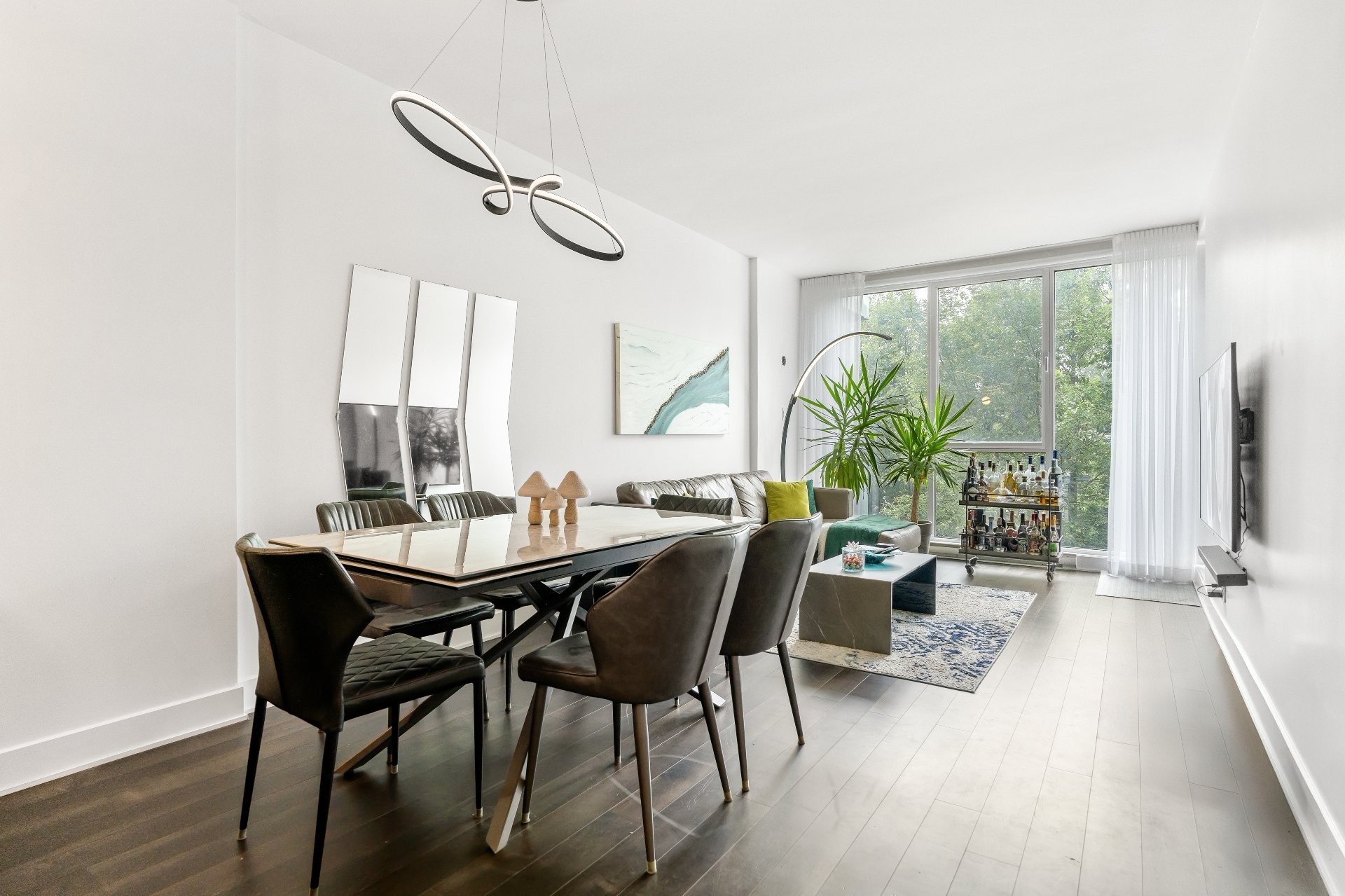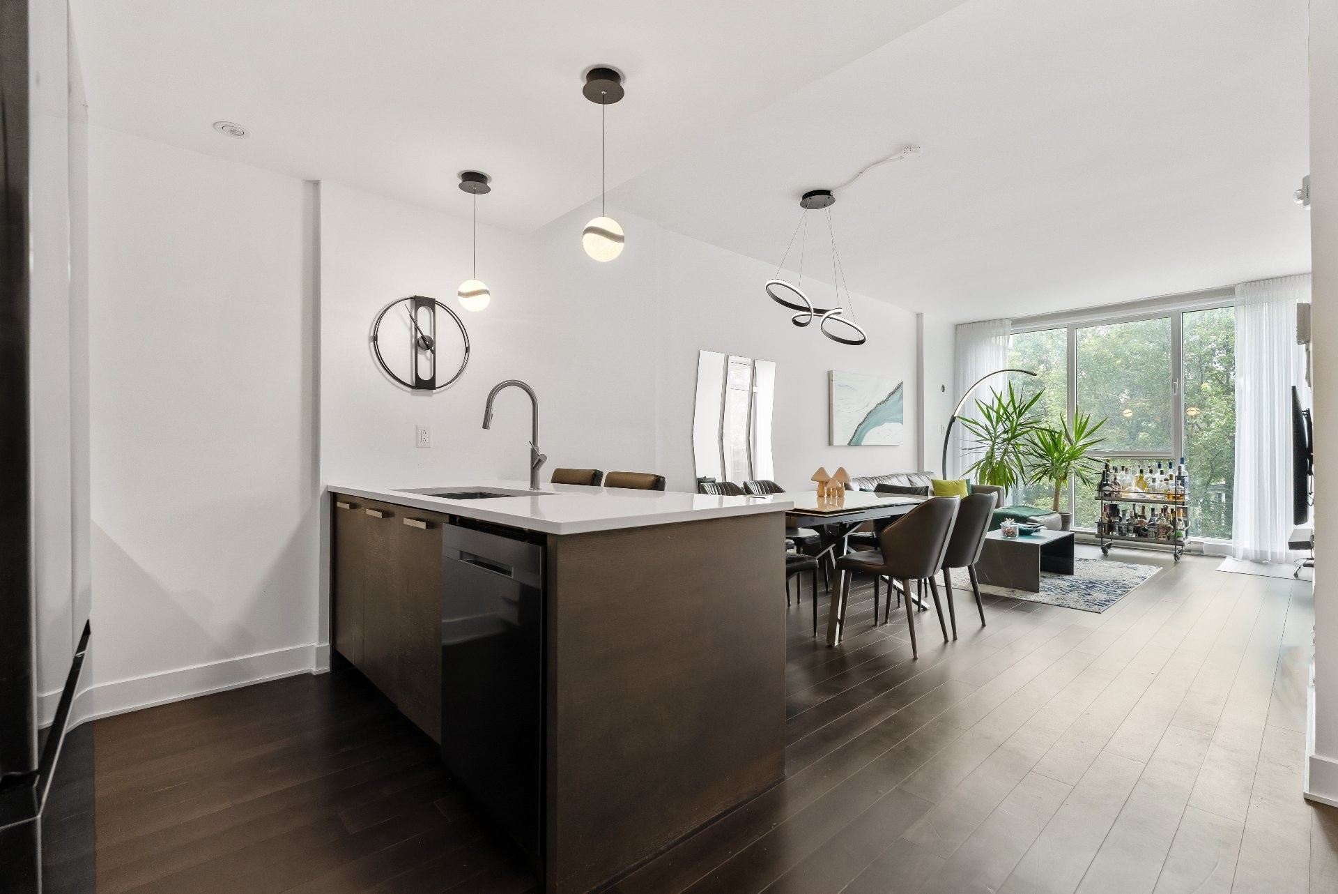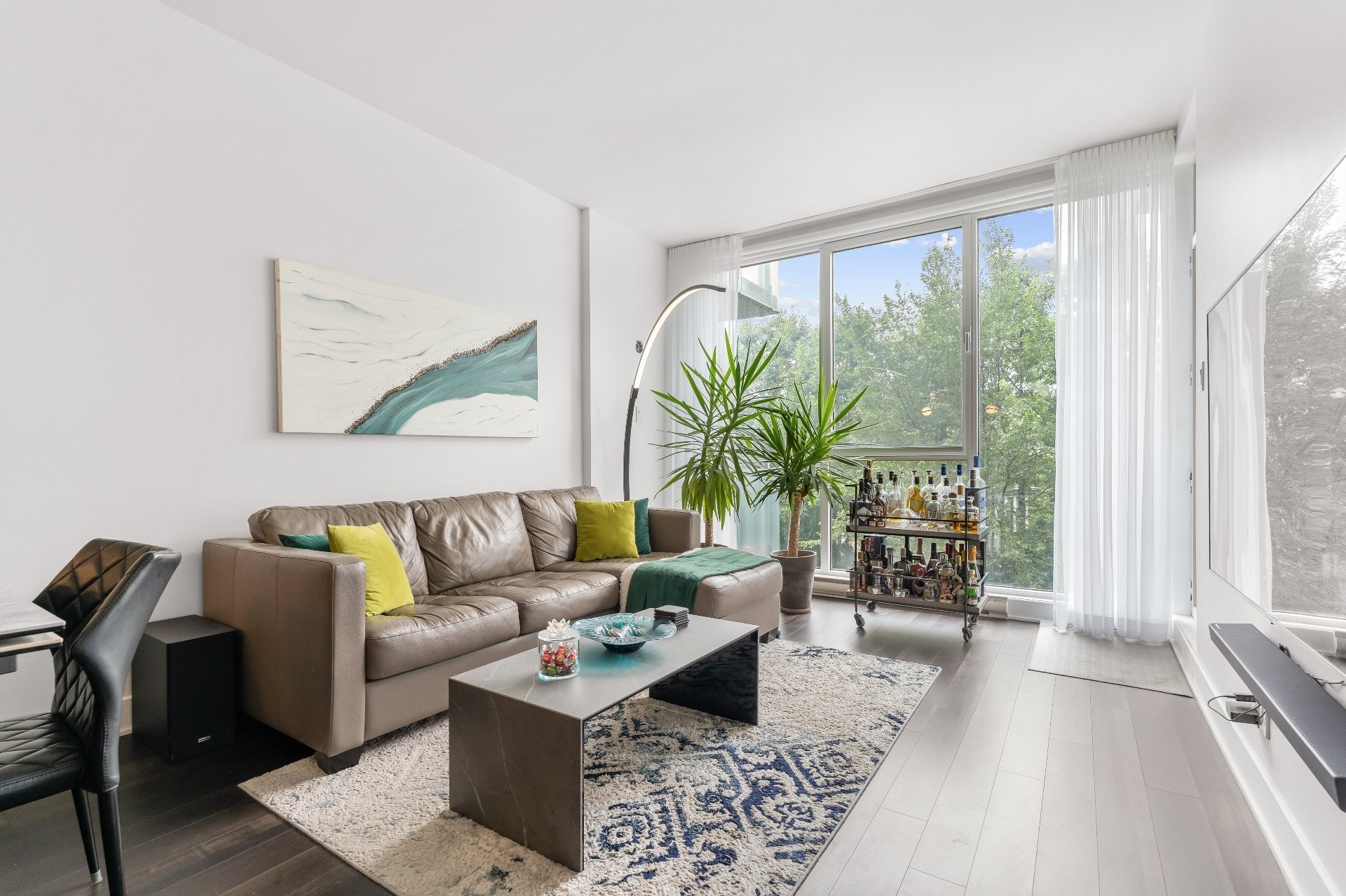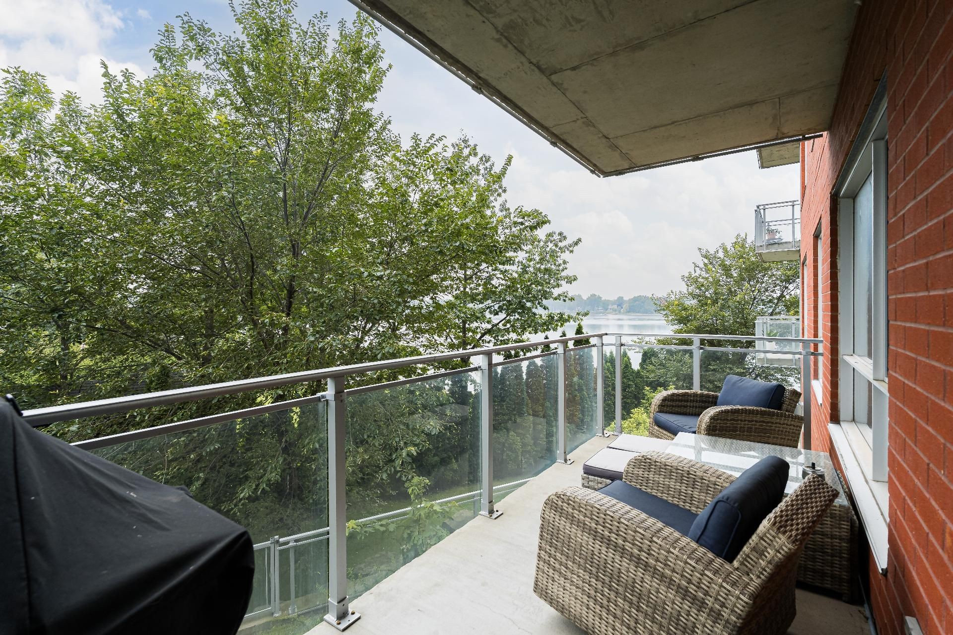 This bright condo (865 sq. ft.) overlooks the Rivière-des-Prairies, thanks to its floor-to-ceiling windows and southwest orientation opening onto a balcony accessible from the living room and master bedroom. It features 2 bedrooms, including a master suite with bathtub and shower, 2 full bathrooms, and a modern luxury kitchen with quartz counter tops stainless steel appliances. High ceilings (up to 9.5 ft), hardwood floors, central heating, and central air conditioning ensure comfort and elegance. Included: indoor parking and storage.