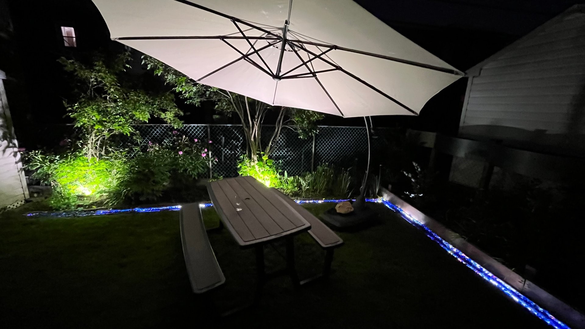 - Landscaping Fenced yard, Land / Yard lined with hedges, Landscape