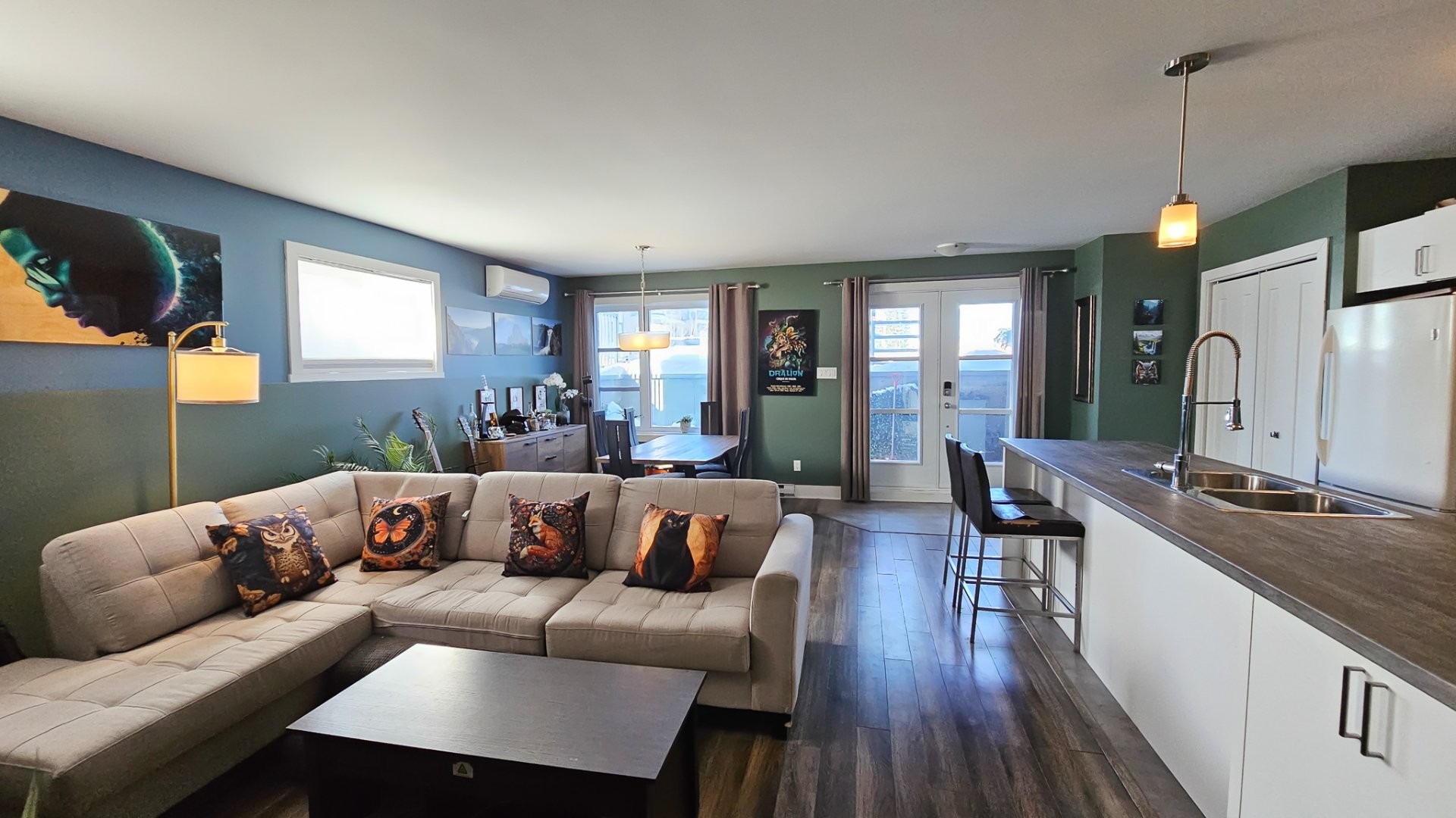 Discover this cozy 2-bedroom condo on a quiet cul-de-sac with no rear neighbors, backing onto a peaceful wooded area. The unit offers two parking spaces, a private entrance, a charming front porch, and a paved sitting area to relax while enjoying the natural setting. Inside, the layout features great natural light and a practical storage locker. Ideally located within walking distance to groceries, pharmacy, restaurants, entertainment, and a nearby park, this condo blends comfort, privacy, and everyday convenience. A great opportunity not to miss!