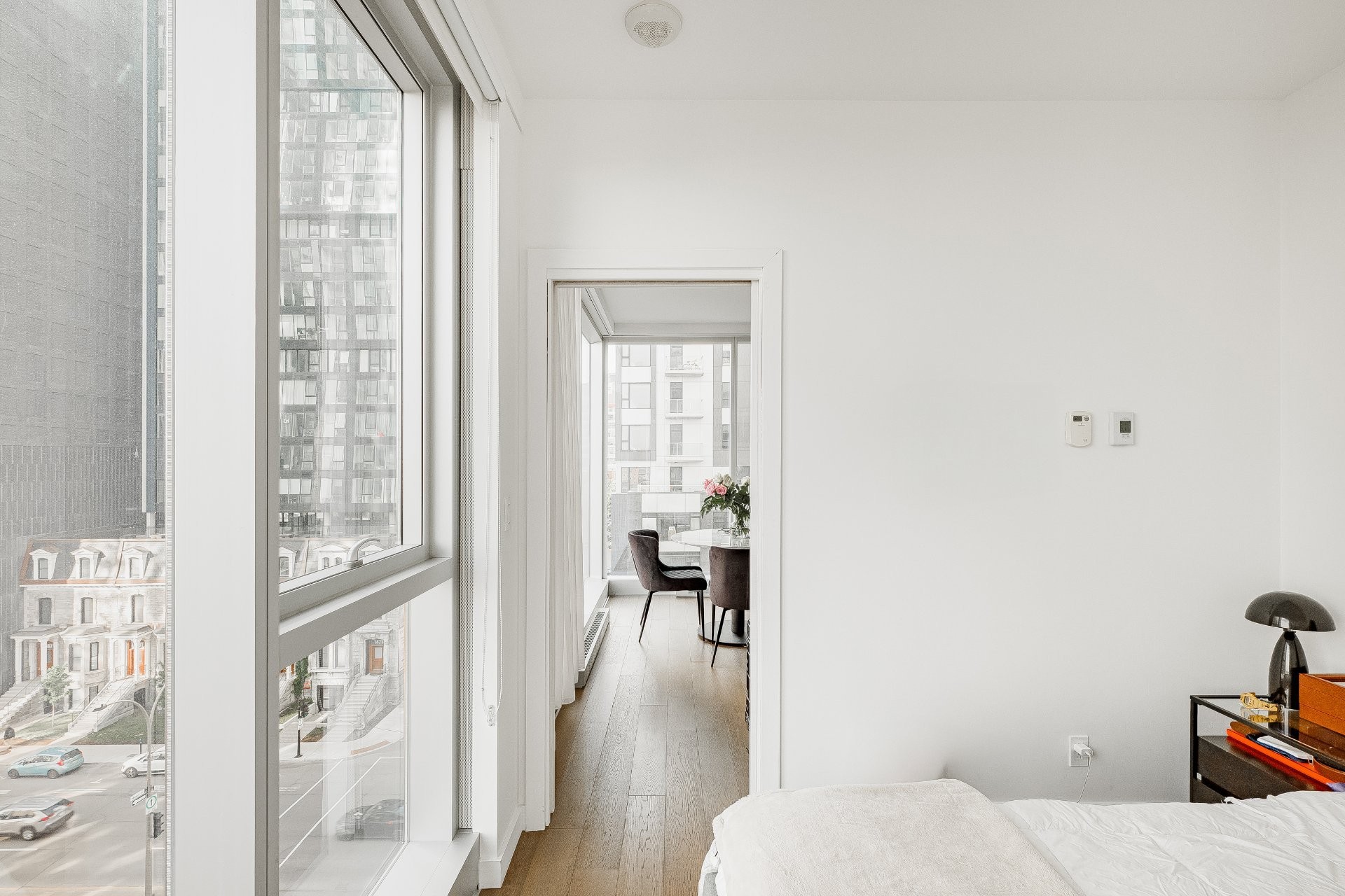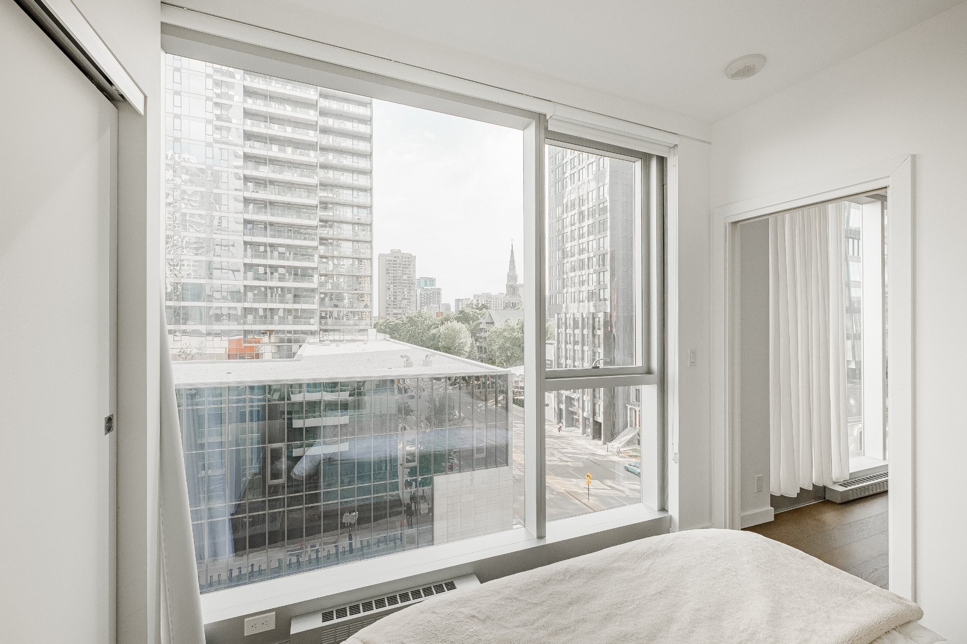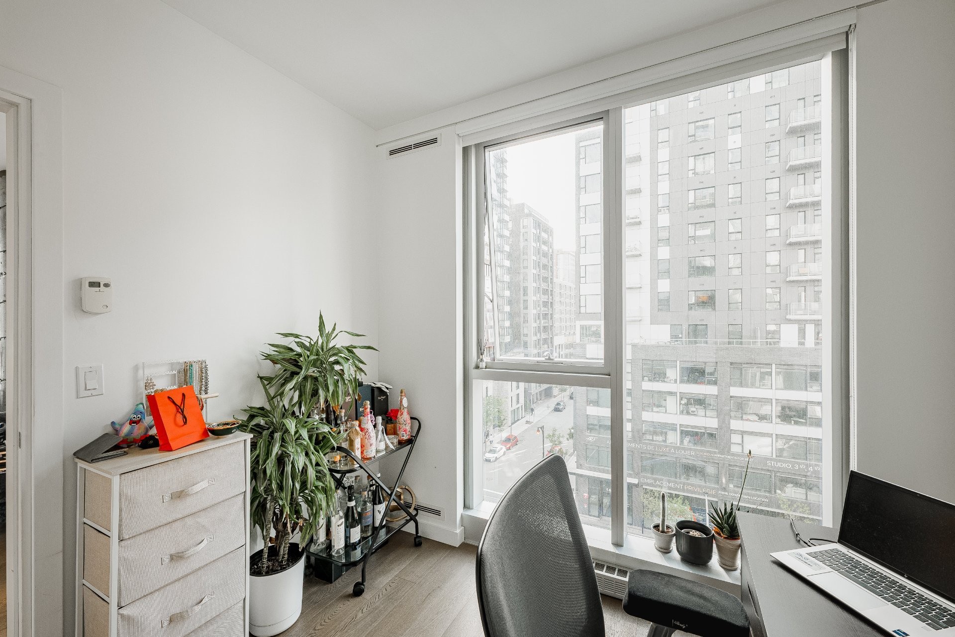 Welcome to this bright and modern corner unit located in the prestigious YUL development in the heart of downtown Montreal. Situated on the 7th floor, this 2-bedroom, 1-bathroom condo offers approximately 730 sq. ft. of intelligently designed living space. Key Features of the Unit:
