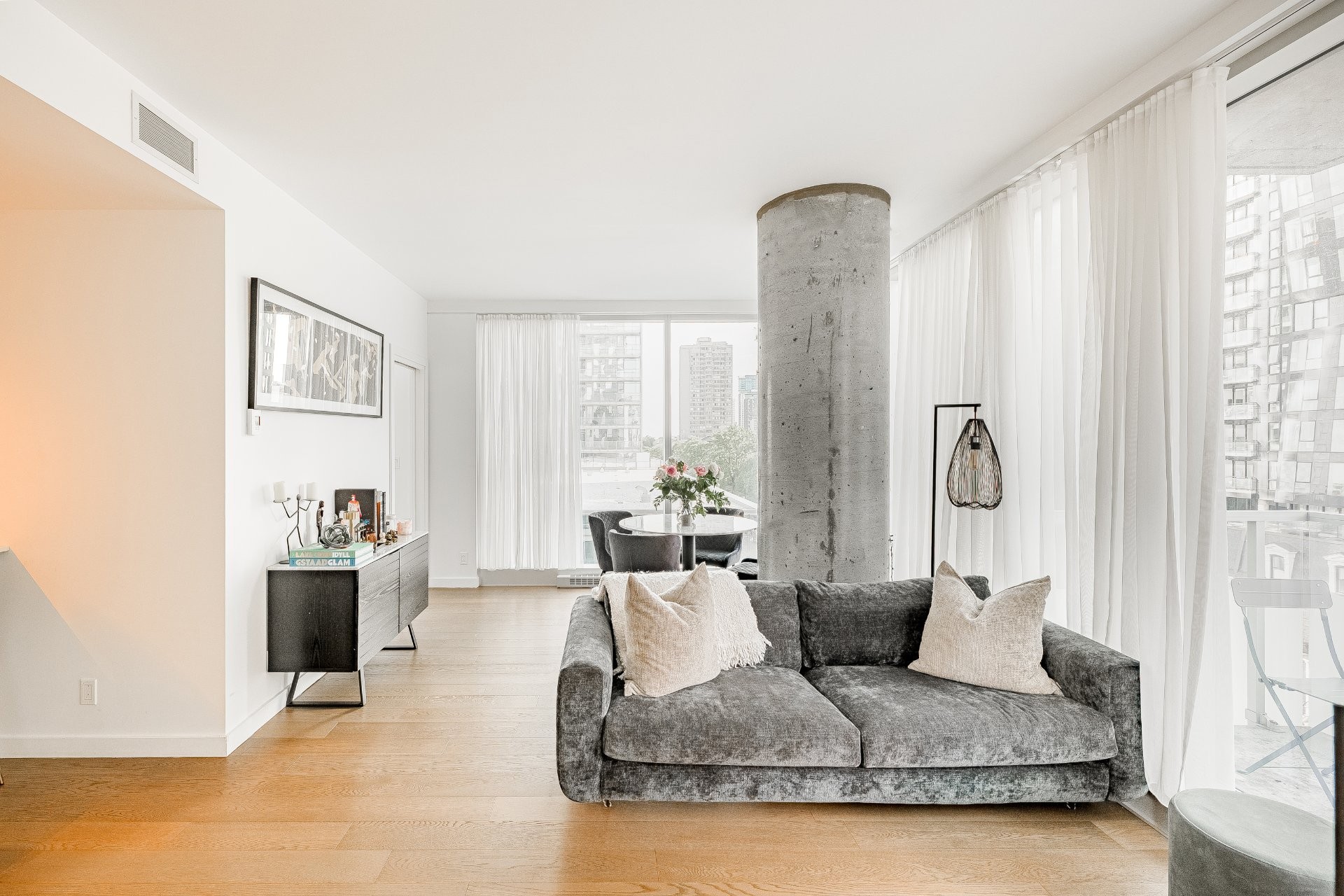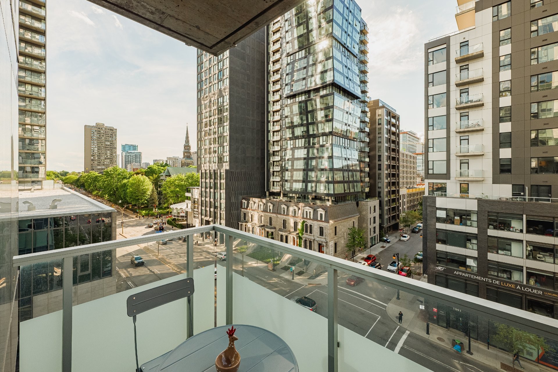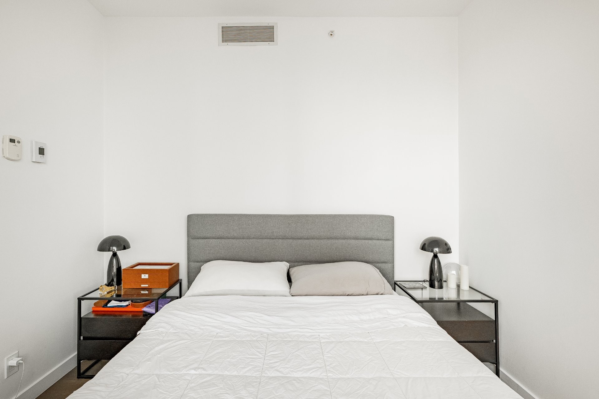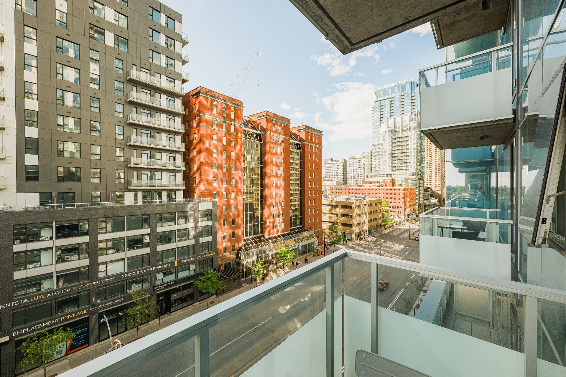 Welcome to this bright and modern corner unit located in the prestigious YUL development in the heart of downtown Montreal. Situated on the 7th floor, this 2-bedroom, 1-bathroom condo offers approximately 730 sq. ft. of intelligently designed living space. Key Features of the Unit: