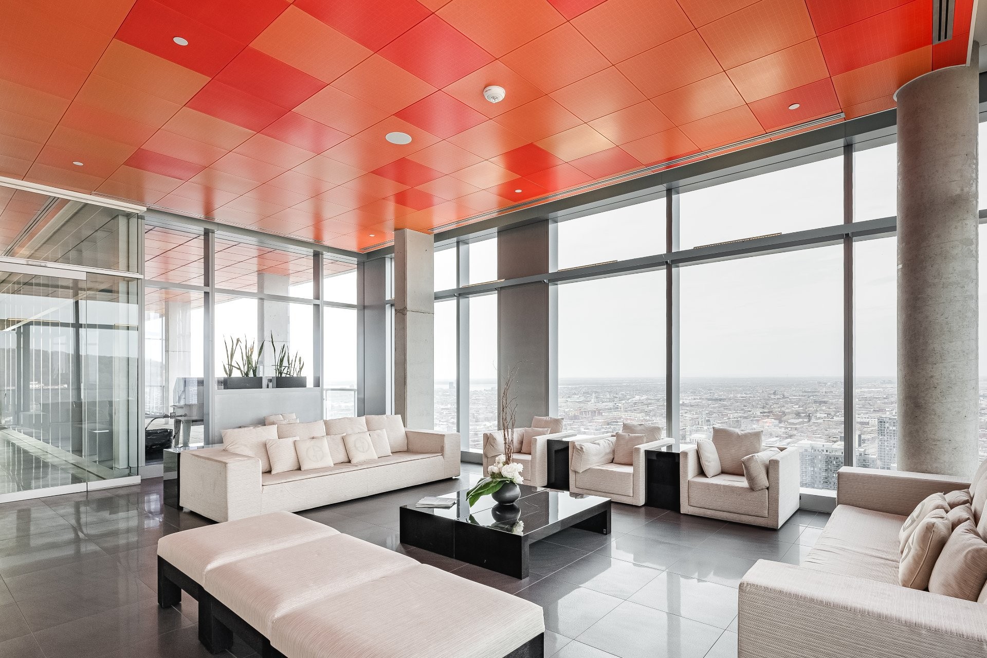 * Sky Lounge on the 38th floor with panoramic views, private meeting room, lounge, and BBQ area