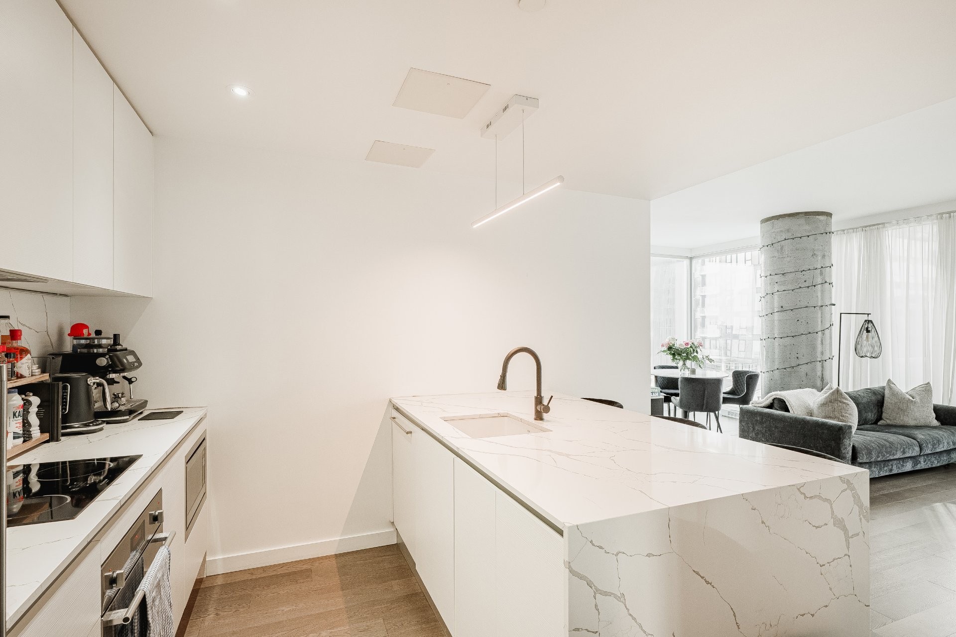 Mille Carré Doré -- Luxueux condo de coin, lumineux avec 2 chambres et 2 + 1 salles de bain, garage, fenêtres du sol au plafond, stores aut...