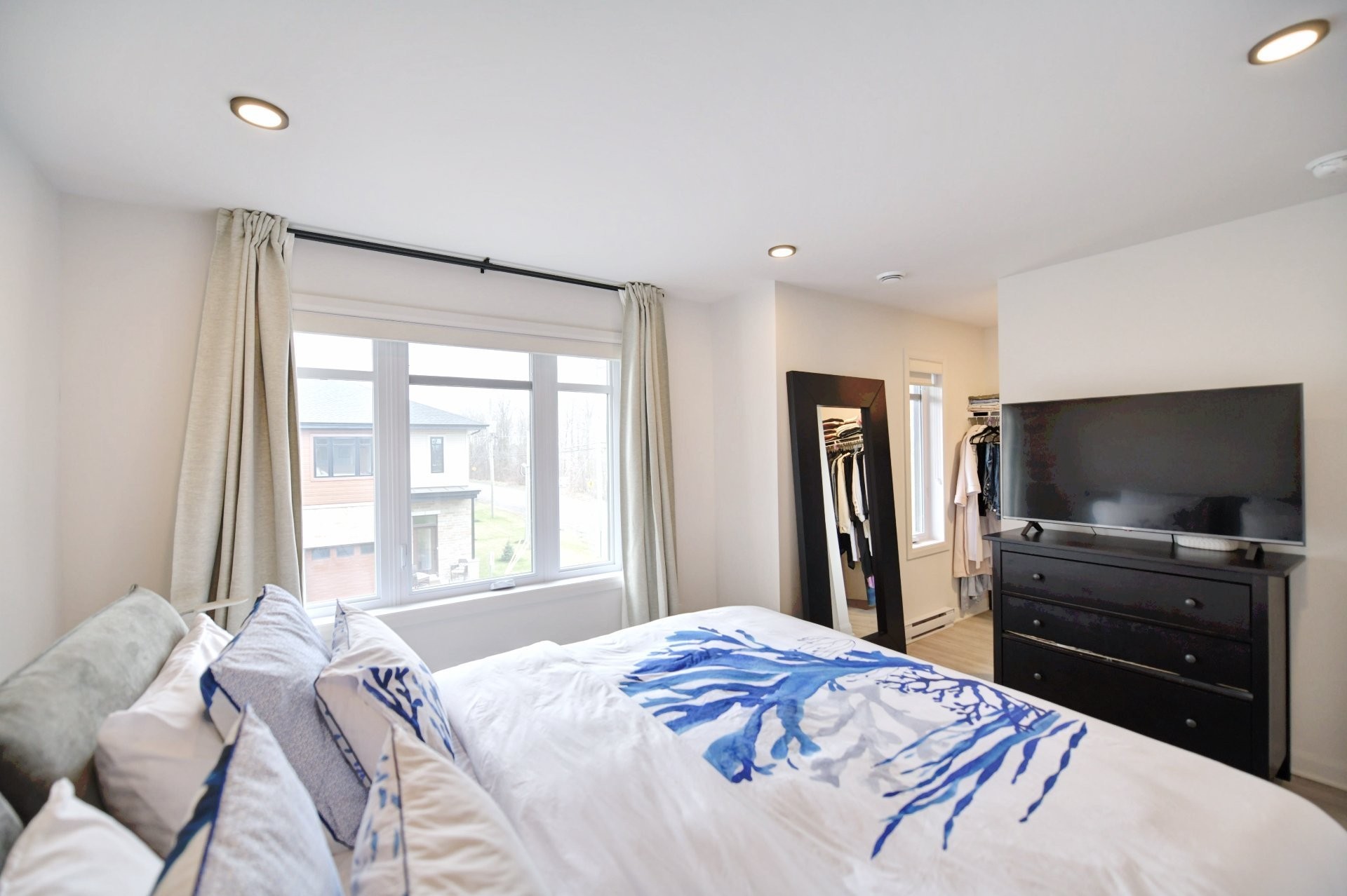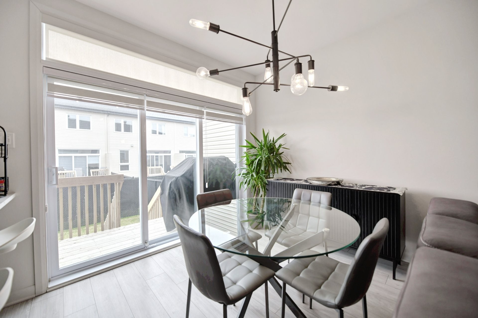 Discover this bright, contemporary townhouse in a charming St-Augustin neighbourhood. This corner unit features three bedrooms, an open-concept layout that harmoniously brings the main living spaces together plus access to the balcony and backyard. The kitchen features quartz countertops and plenty of storage. The many windows allow an abundance of natural light throughout the space. It features a built-in heated indoor garage and storage space. The location is minutes away from the "Premium Outlets Montreal" and close to numerous services and amenities. A visit will charm you!