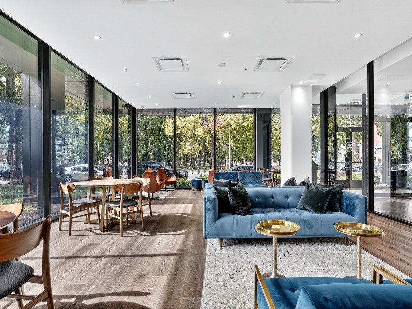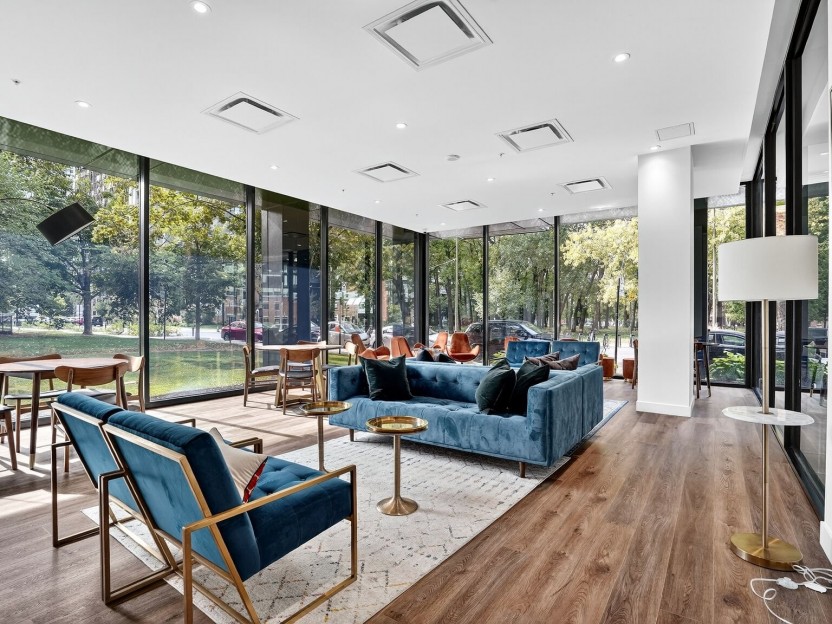 Unité de 8ime étage impeccable plein sud avec de hauts plafonds et très grande balcon. L'unité se situe dans le quartir le plus branché de M...
