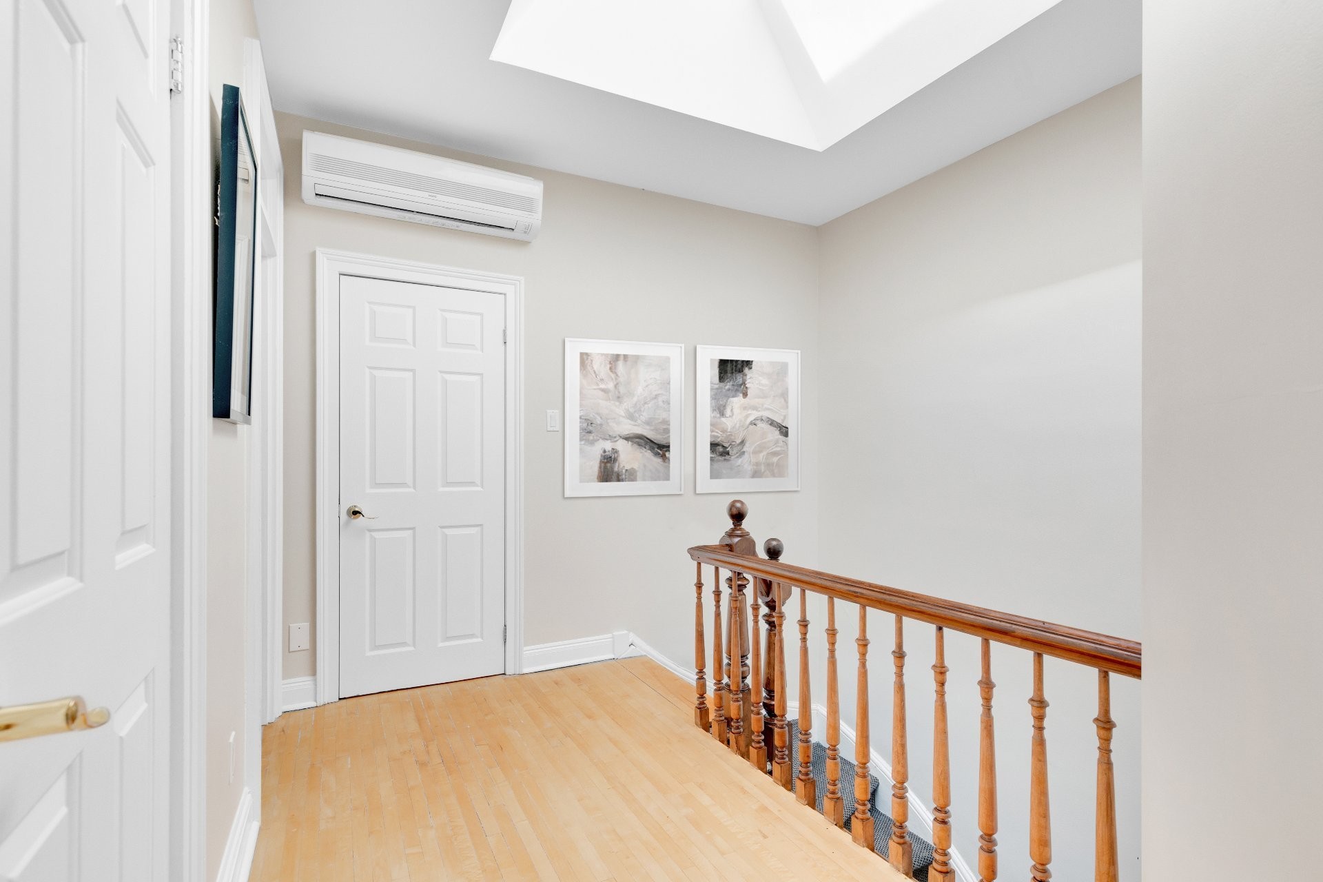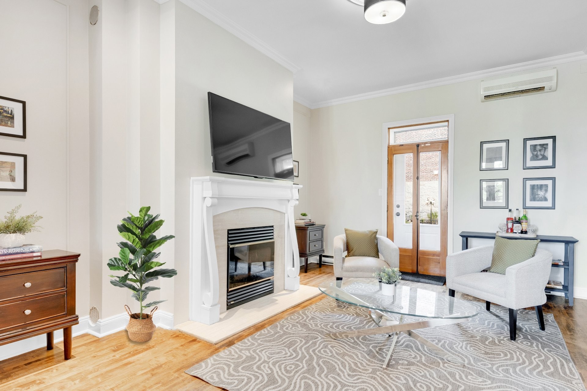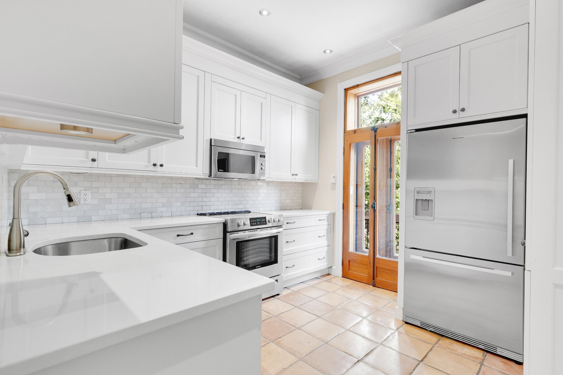 Step onto the private front balcony or unwind on the tranquil rear terrace, where you'll enjoy picturesque views of lush green space and the vibrant city skyline. Meticulously renovated, this unit seamlessly blends the timeless charm of Montreal--complete with exposed brick walls and a grand, ornate staircase--with sleek, contemporary finishes. The result is a harmonious fusion of historic beauty and modern sophistication, epitomizing refined urban living.