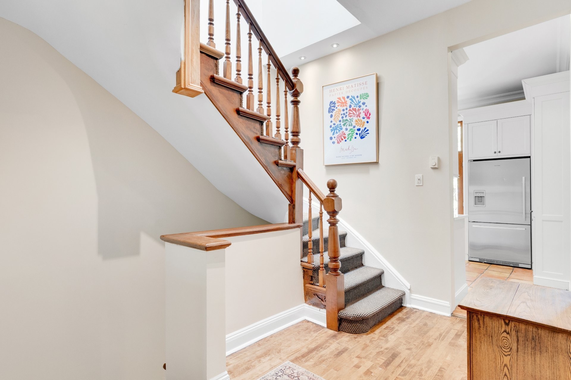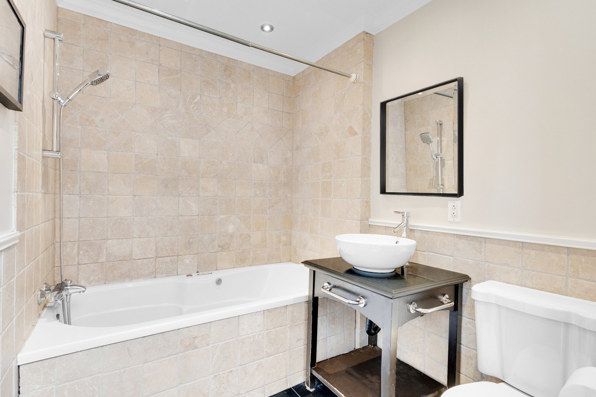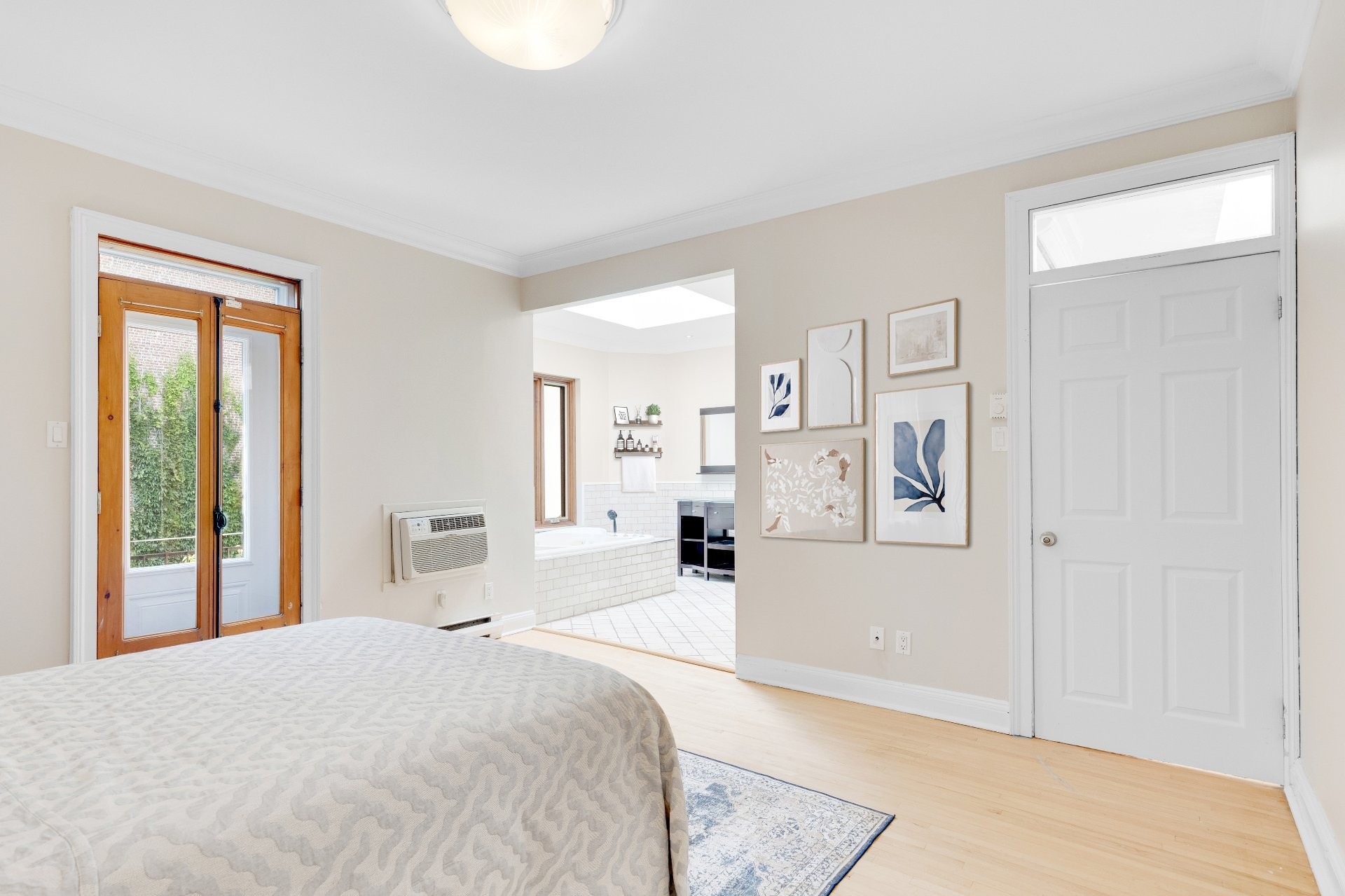 Step onto the private front balcony or unwind on the tranquil rear terrace, where you'll enjoy picturesque views of lush green space and the vibrant city skyline. Meticulously renovated, this unit seamlessly blends the timeless charm of Montreal--complete with exposed brick walls and a grand, ornate staircase--with sleek, contemporary finishes. The result is a harmonious fusion of historic beauty and modern sophistication, epitomizing refined urban living.