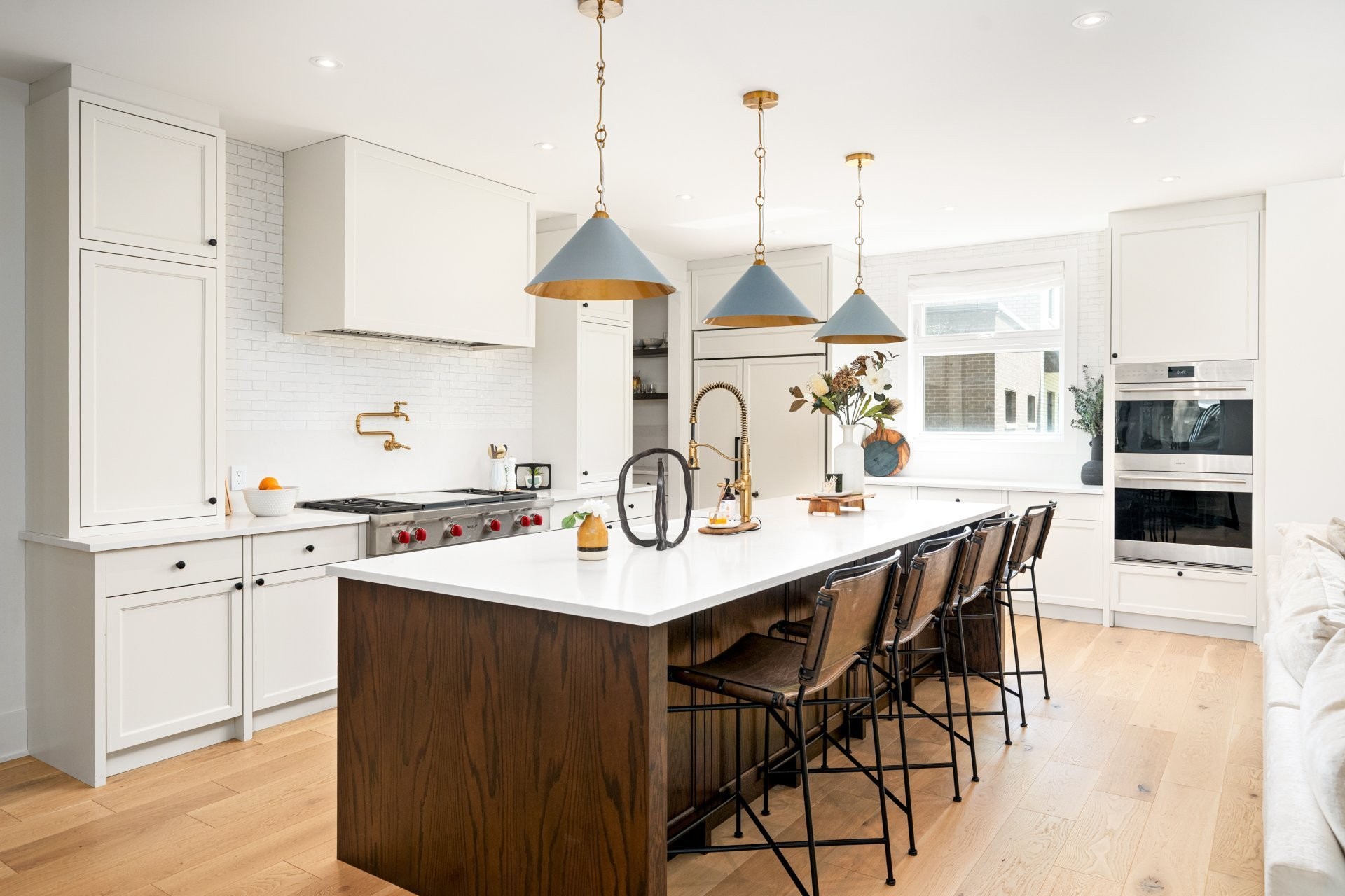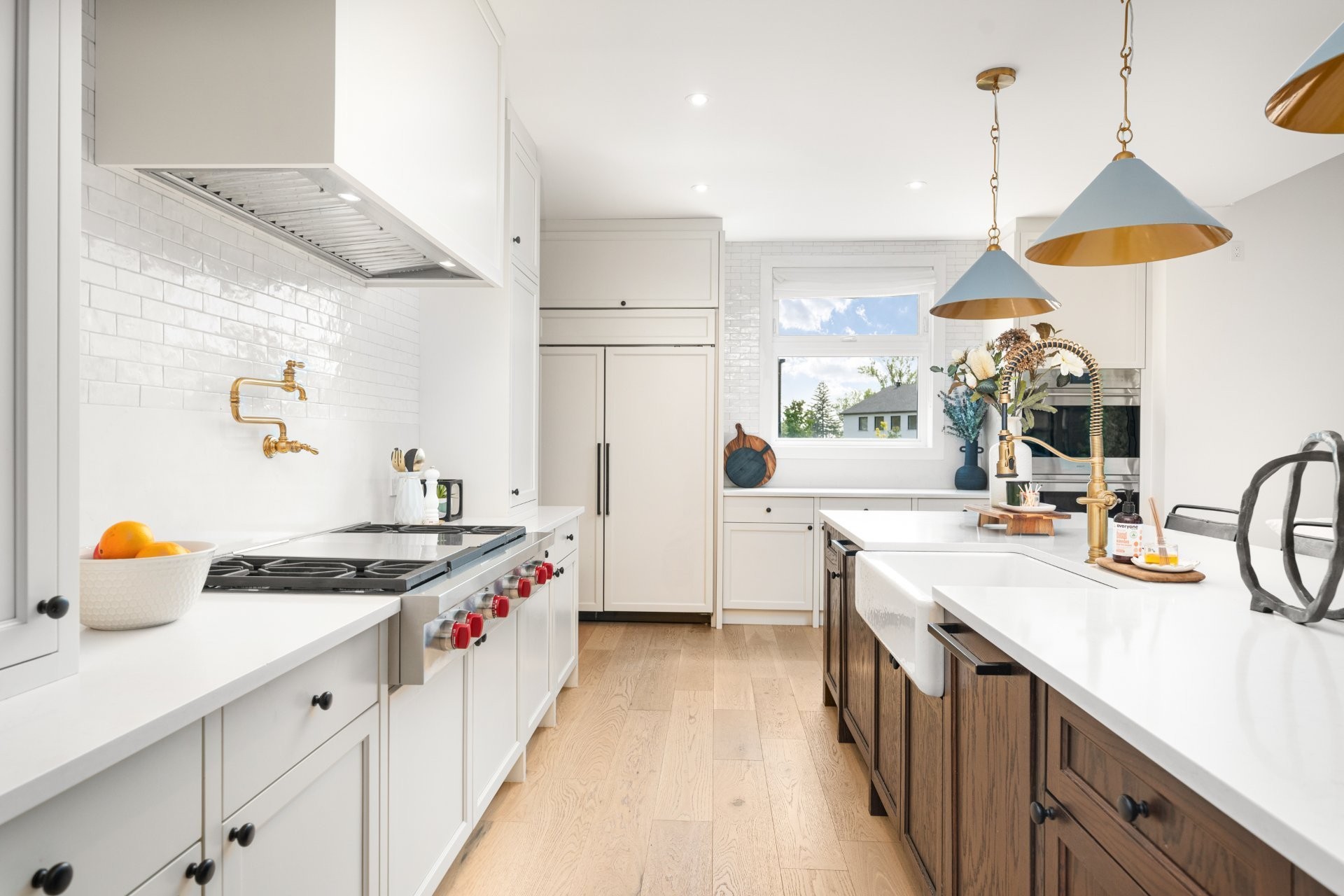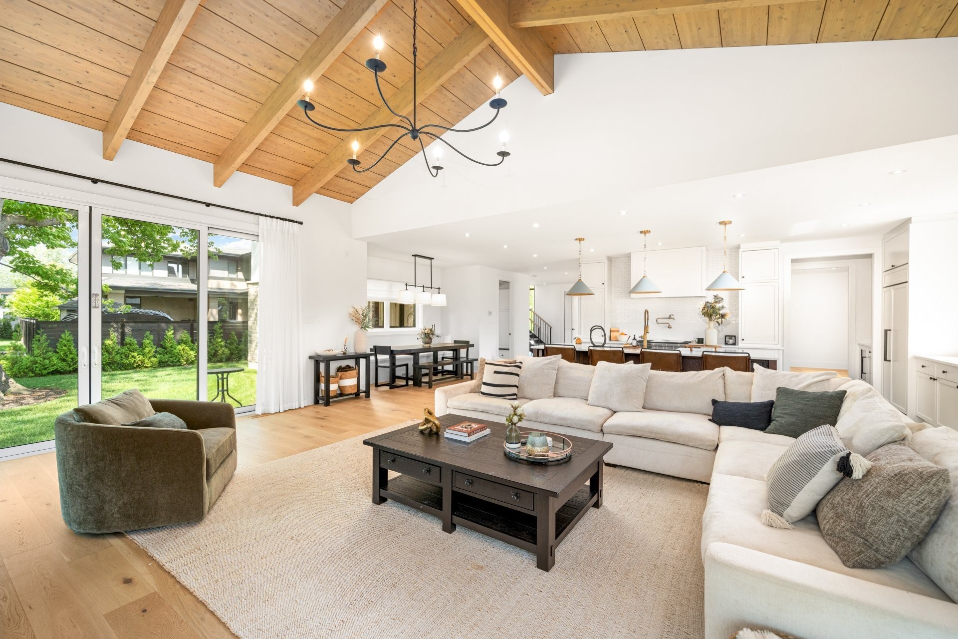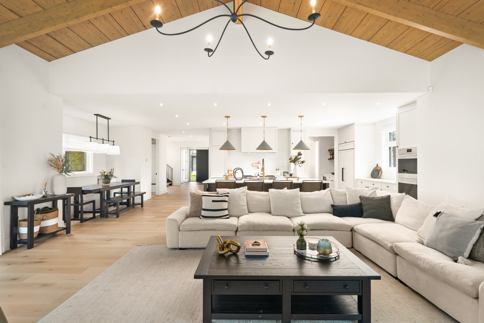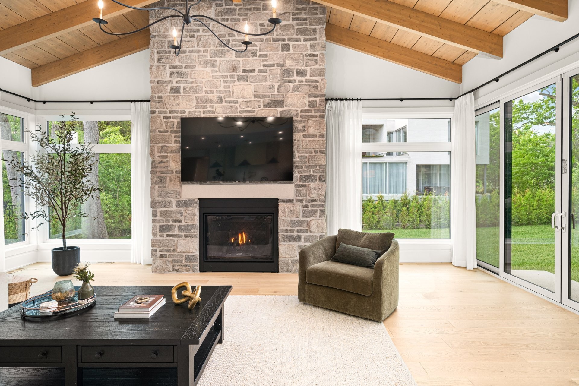 Designed with modern family life in mind, the home features 5 spacious bedrooms (4+1), 4 full bathrooms, including 3 ensuites, 1 powder room, and a fully equipped laundry room on the second floor. The open-concept main floor is ideal for entertaining and everyday living, boasting ceilings up to 16 ft., a warm and inviting natural gas fireplace, and a dramatic structural wood beam ceiling in the family room. The chef's kitchen is outfitted with Wolf appliances, Sub-Zero refrigeration, a walk-in pantry, and a custom coffee station - all tied together by the richness of 8" Mirage oak floors (¾ thick).