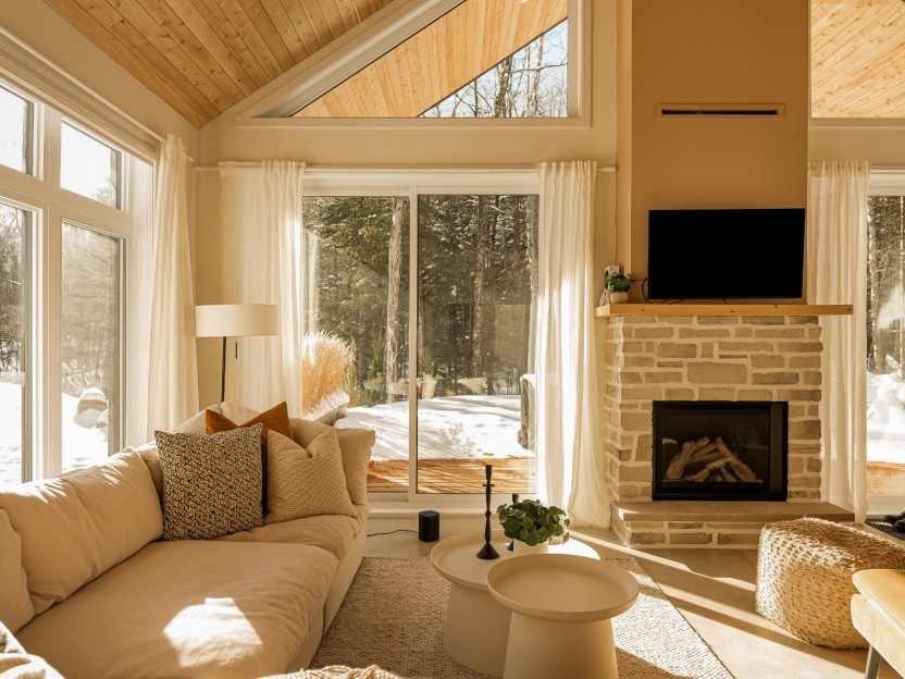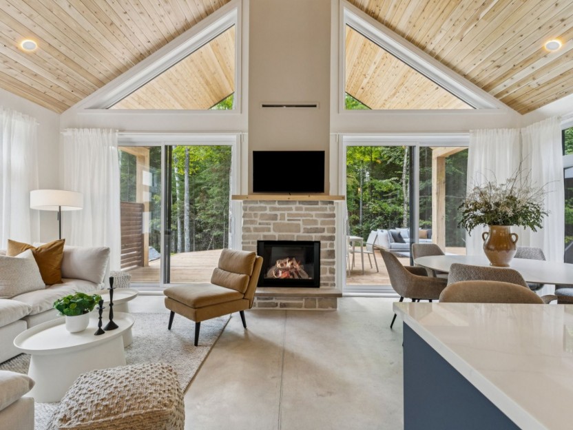LOCATION COURT TERME AUTORISÉE ! Superbe chalet de luxe 2 chambres et 1 salle de bain, situé à seulement 12 min de Mont-Tremblant. Design mo...