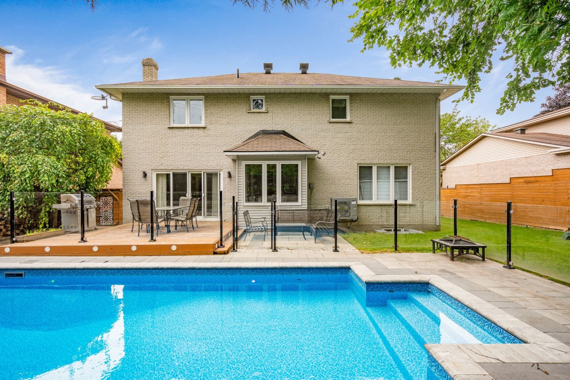 Outside, the private backyard is a true summer retreat, perfect for barbecues, entertaining or relaxing by the recently added in-ground salt-water pool and deck. Mature trees provide privacy and a serene setting, while a newly installed fence surrounds the property. The uni-stone driveway and garage offer ample parking and storage.