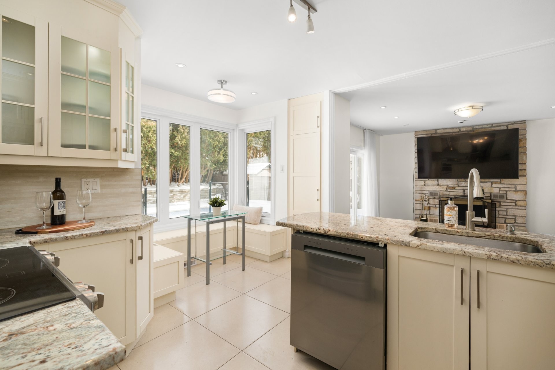 Step inside to a bright and inviting interior where generous room sizes and abundant natural light create a warm, welcoming atmosphere. The main floor boasts a gracious foyer, an open-concept living and dining area perfect for entertaining and a well-appointed kitchen with ample cabinetry and a charming eat-in banquette. An additional family room with a fireplace opens directly onto the backyard and provides convenient access to a spacious laundry room.