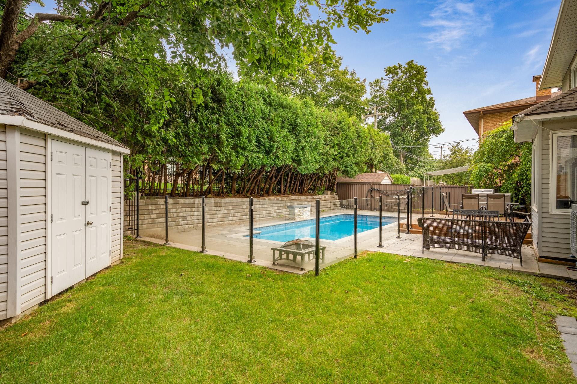 Outside, the private backyard is a true summer retreat, perfect for barbecues, entertaining or relaxing by the recently added in-ground salt-water pool and deck. Mature trees provide privacy and a serene setting, while a newly installed fence surrounds the property. The uni-stone driveway and garage offer ample parking and storage.