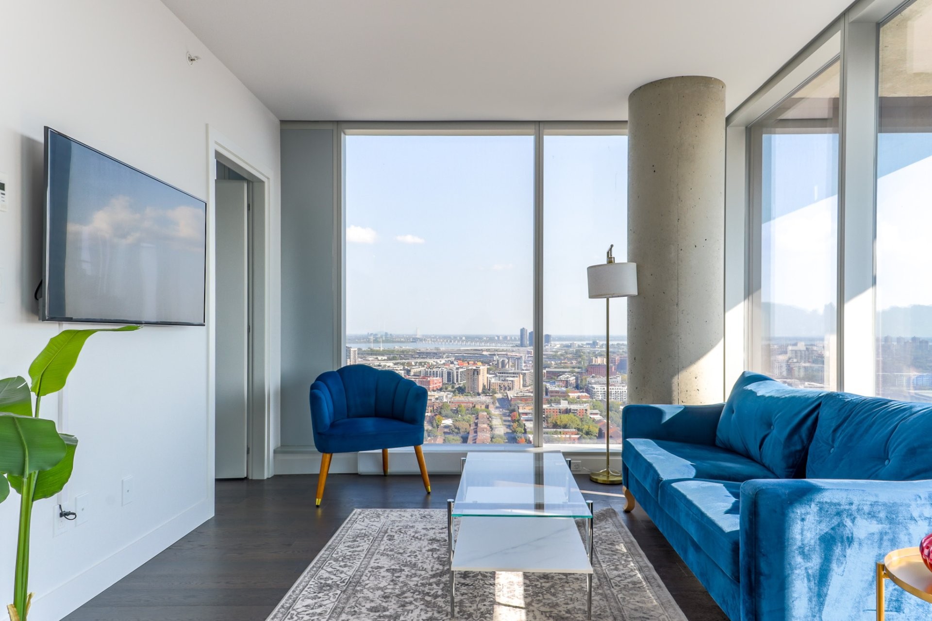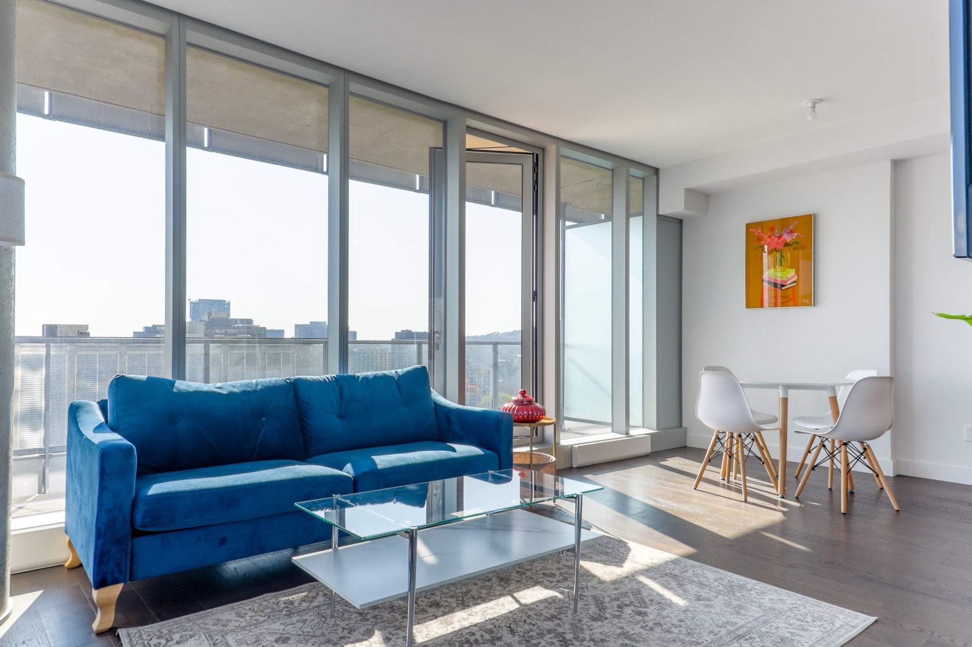 Condo haut de gamme, luxueux, 2 chambres, 2 salles de bain, unité de coin. Très lumineux et ENTIÈREMENT MEUBLÉ au milieu du centre-ville et...