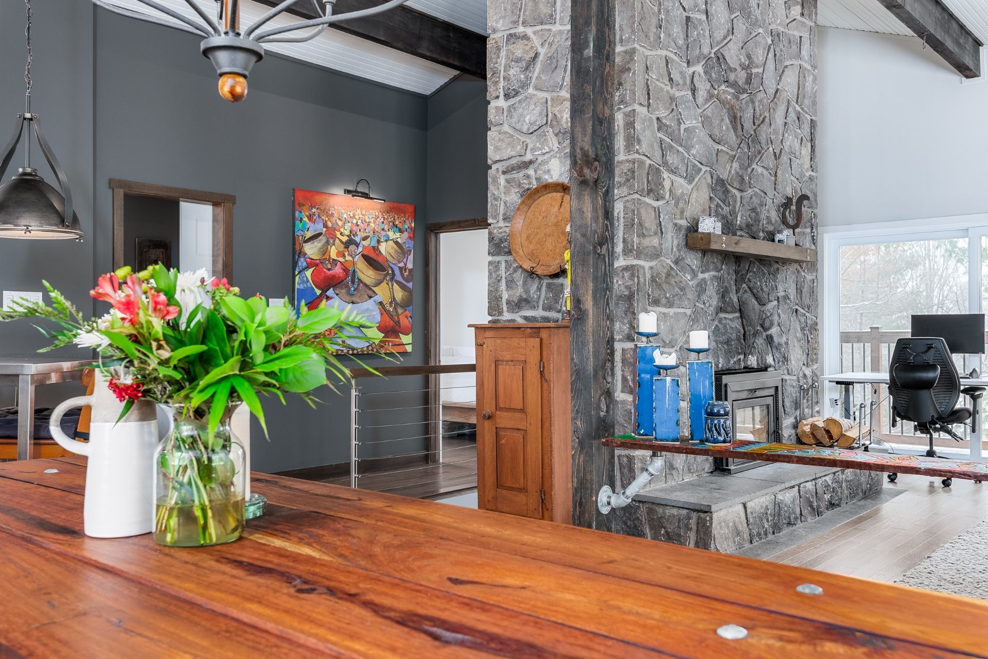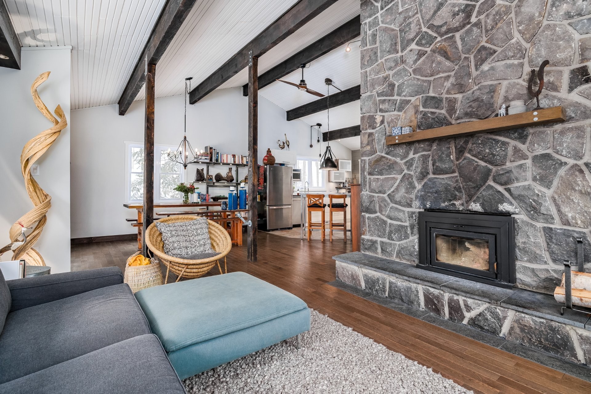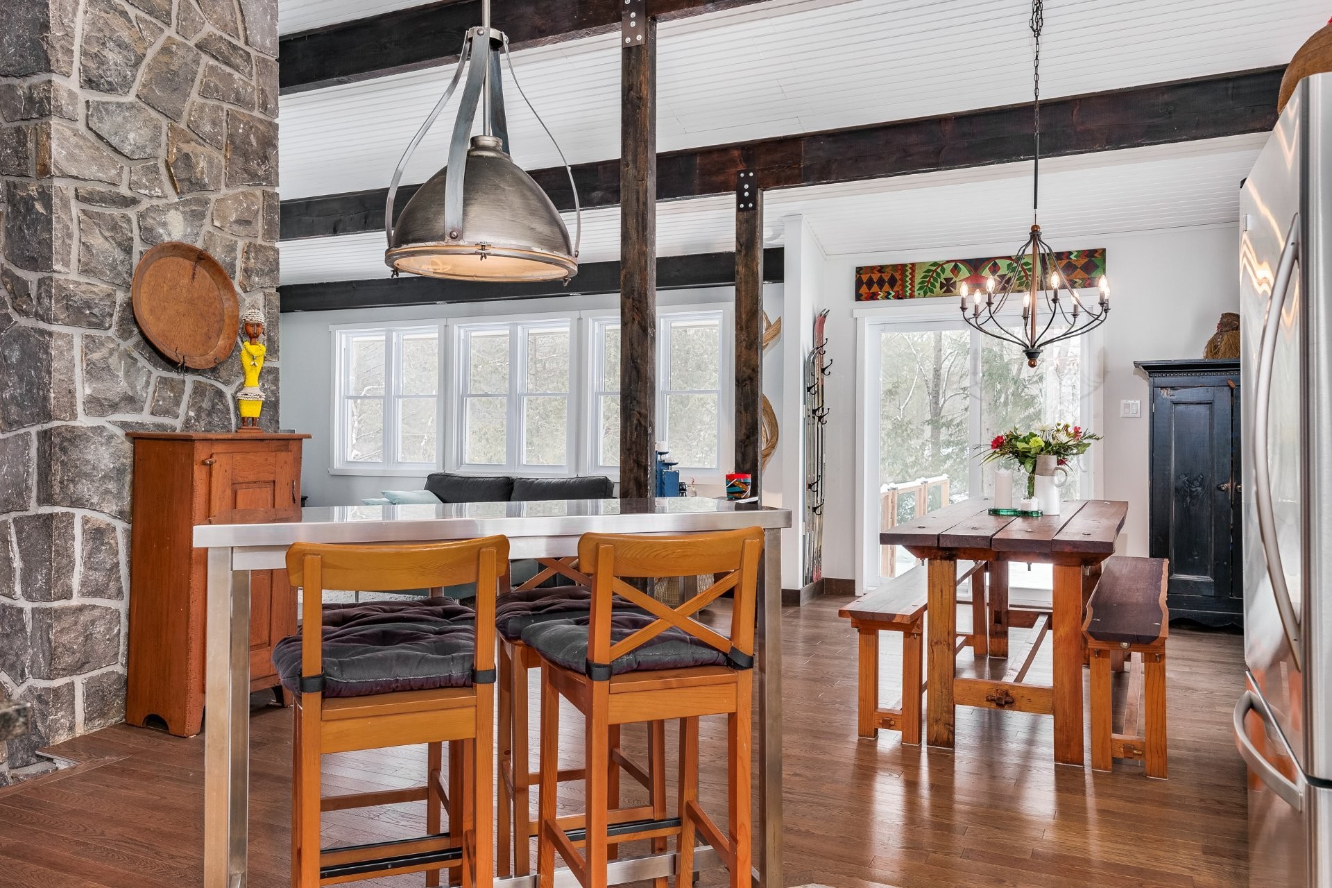 For rent: Magnificent Swiss chalet-style house nestled in the trees. This property offers you a majestic stone fireplace, beautiful cathedral style ceilings, a magnificent staircase with central silt, 2 beautiful bathrooms, 3 bedrooms.
