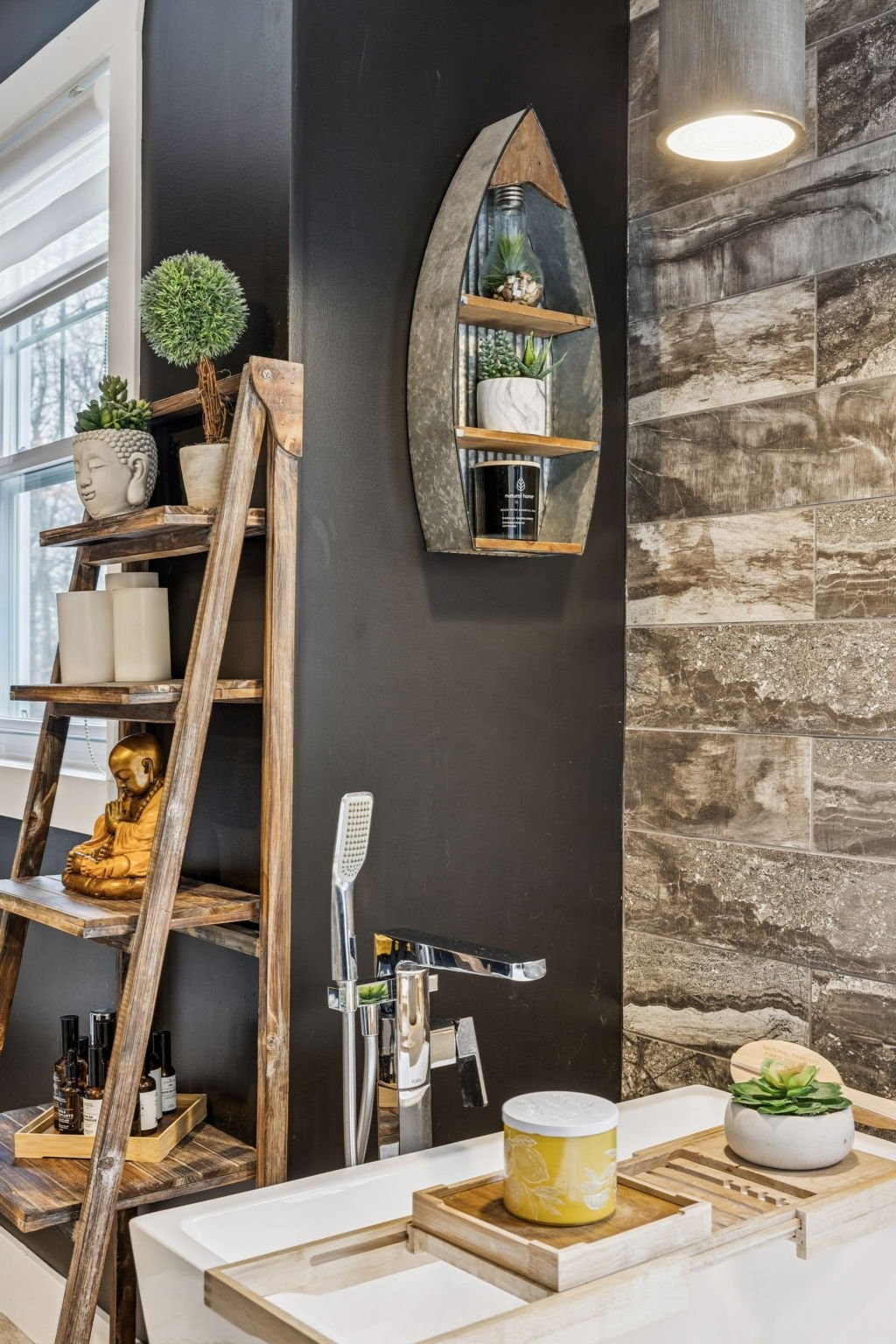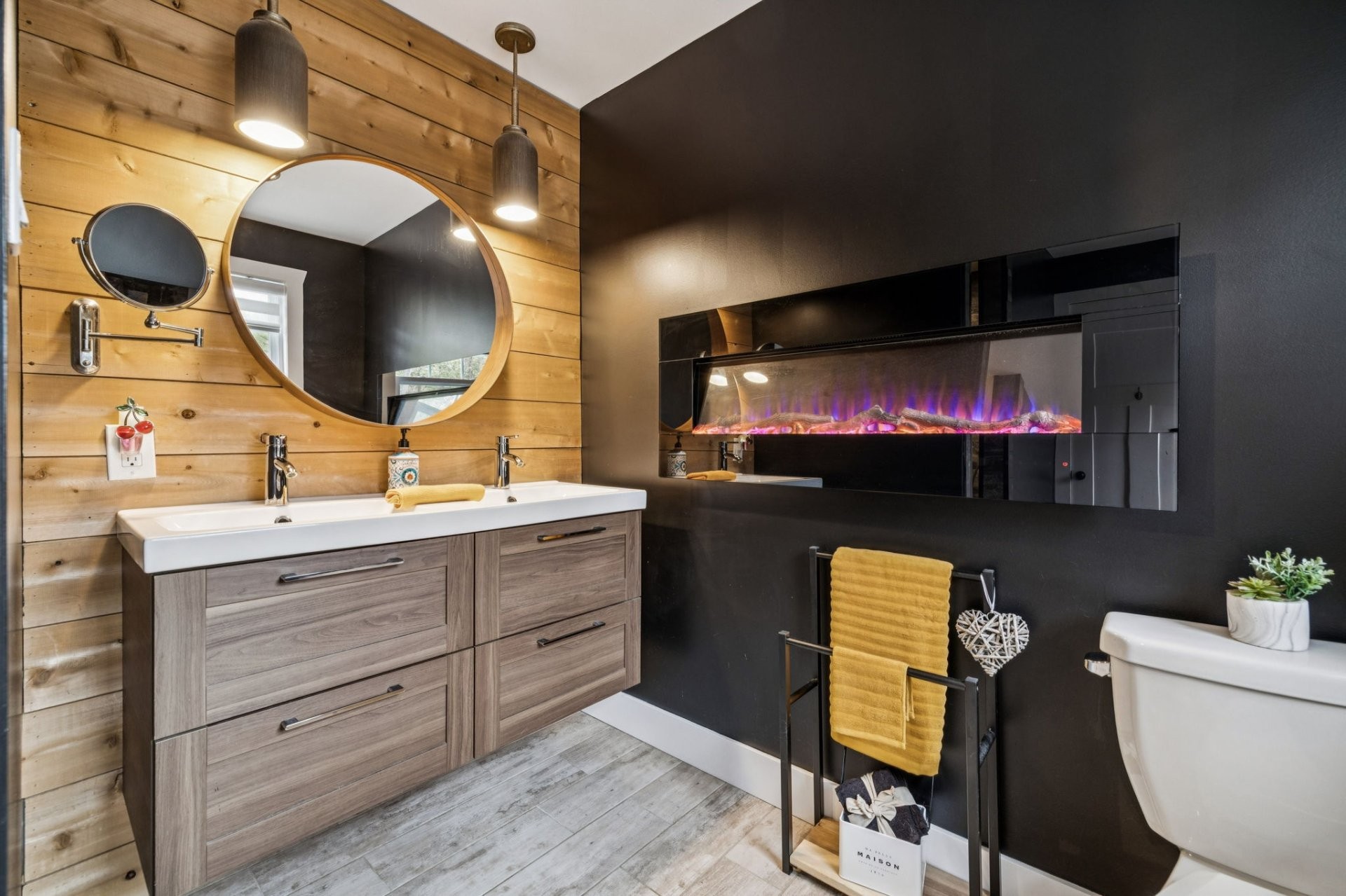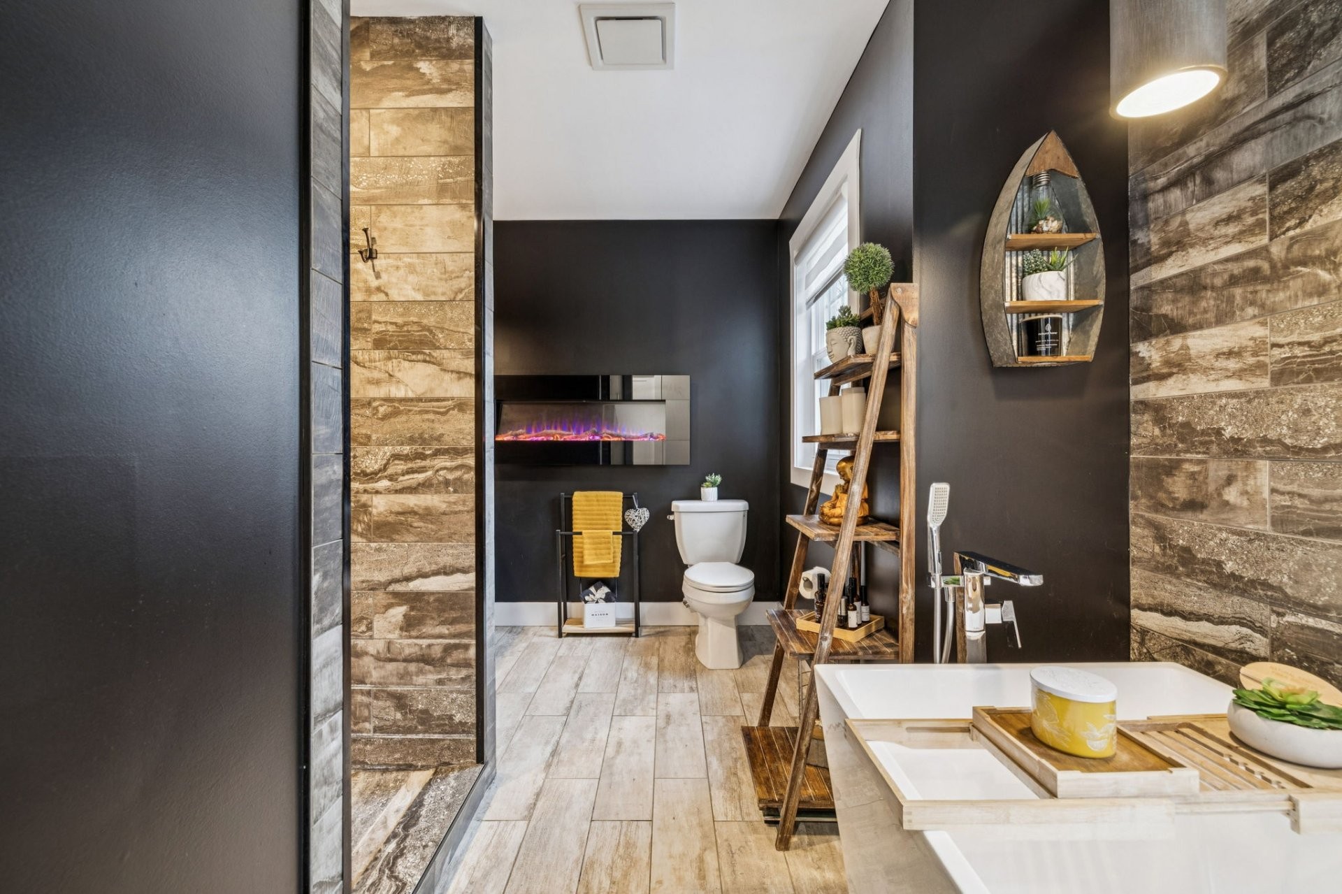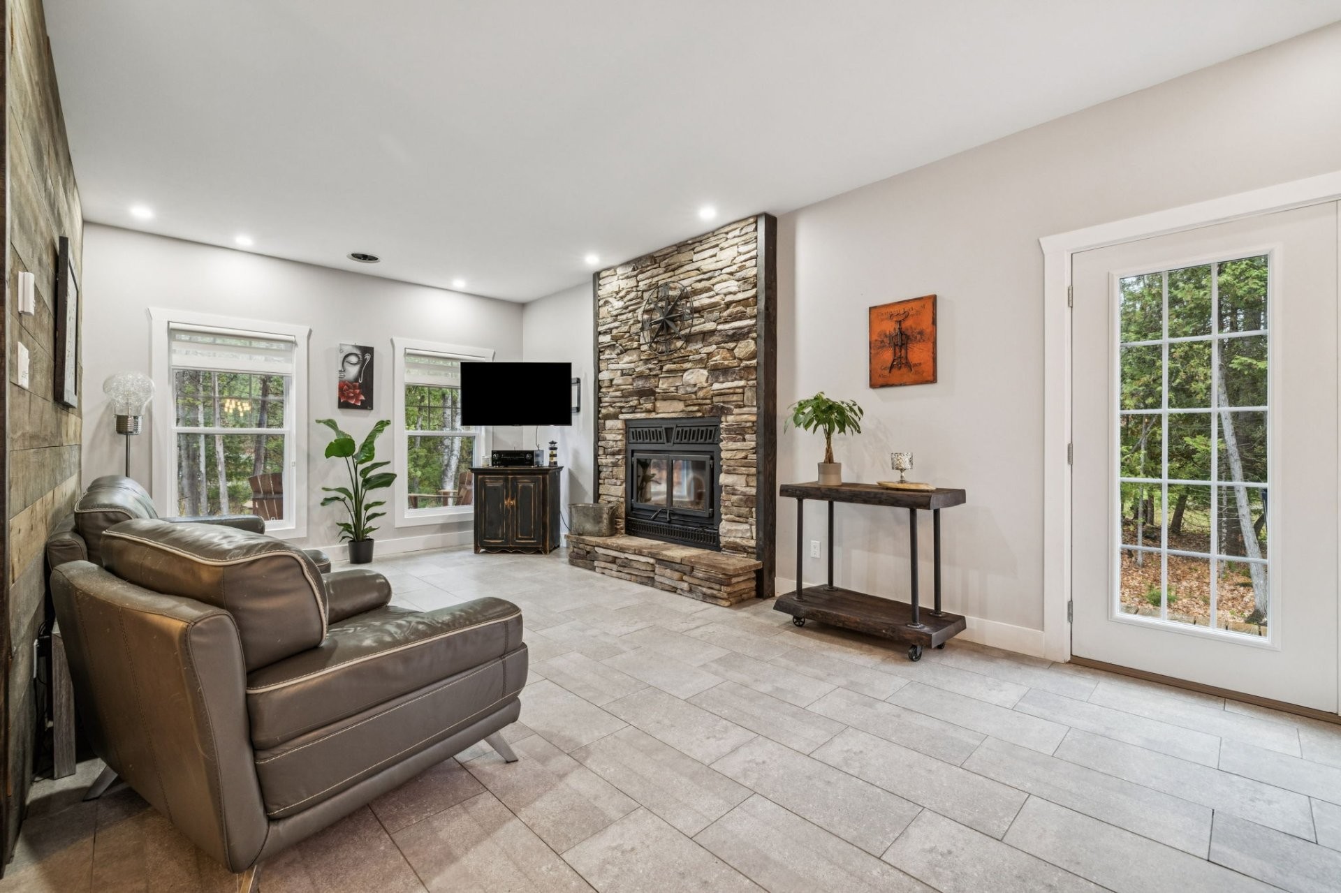 Window coverings. Dishwasher. Electric fireplace in the primary bathroom. Water heater. Wall-mounted air conditioner. Built-in speakers. Central vacuum and accessories. Complete water treatment system with on-demand filtration. Wood shed.