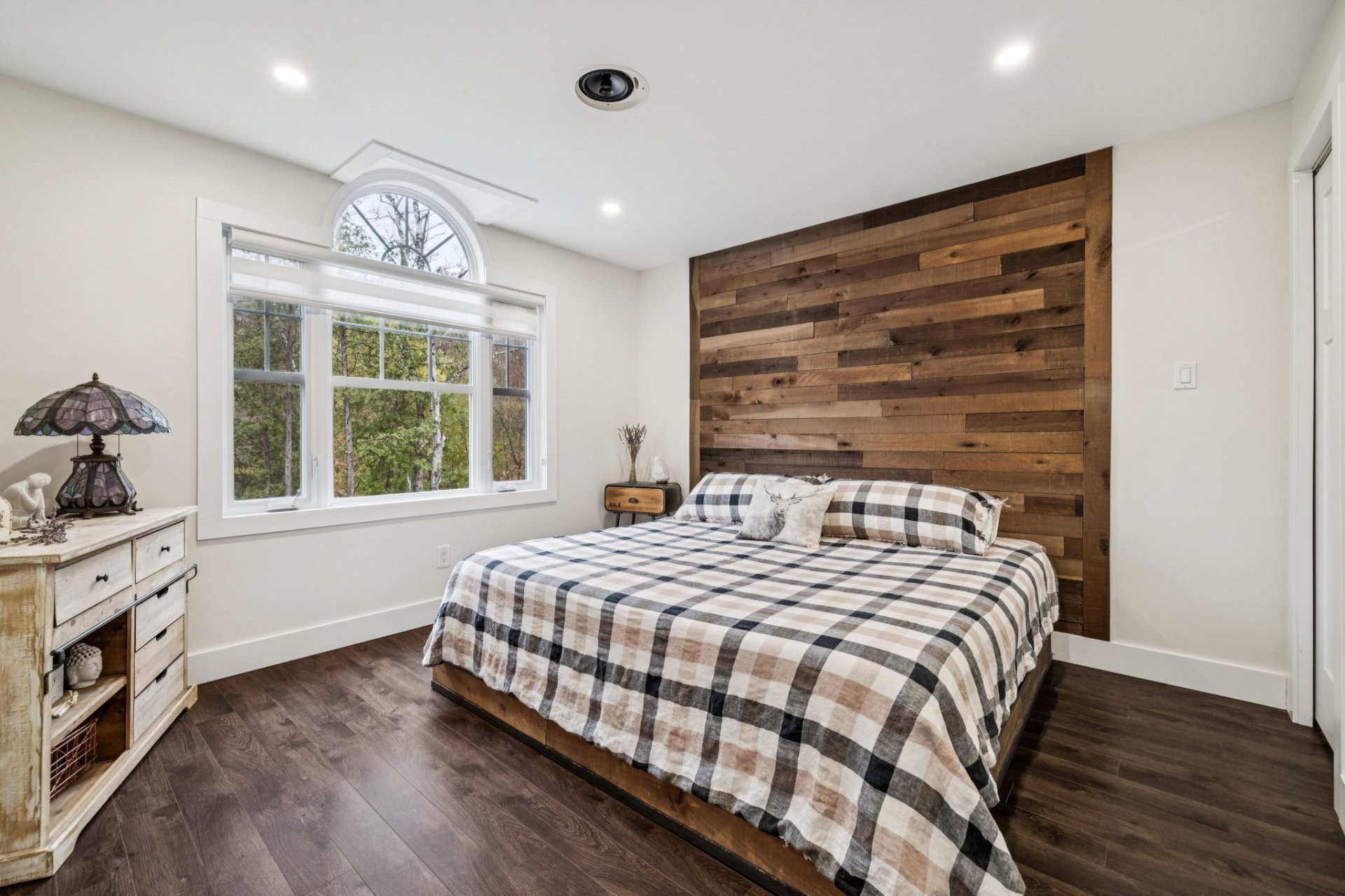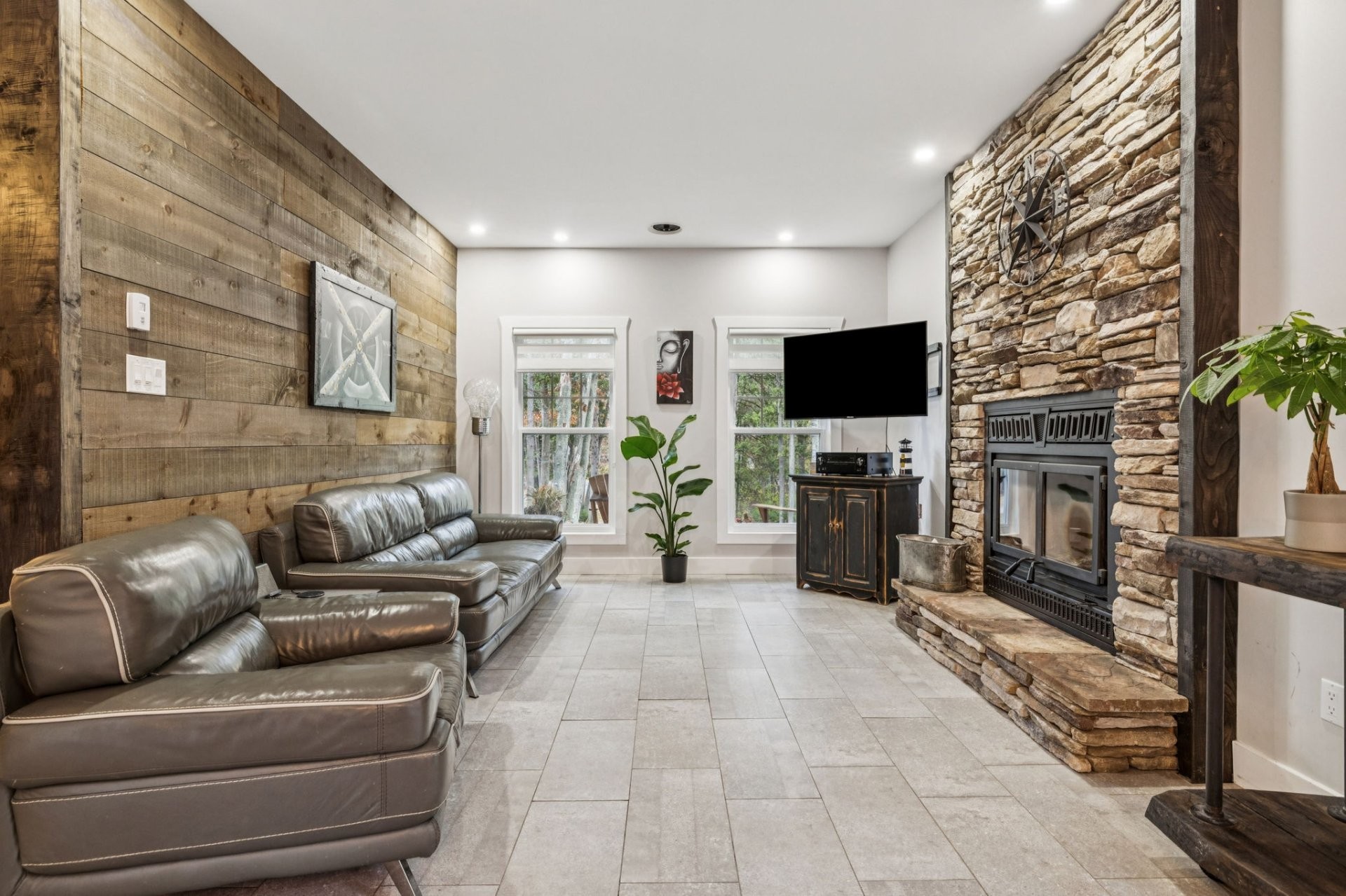 A large lot bordered by mature trees, with no rear neighbors. The absolute tranquility of nature, just 8 minutes from the highway and all services! An inviting porch, abundant natural light, spacious rooms... it's all here! Built in 2018, this property with a garage offers over 2,100 sq. ft. of living space: 5 spacious bedrooms, 3 full bathrooms with large ceramic showers, plus a powder room. Upstairs, a versatile loft, and all the comfort of a home with radiant floors throughout, including in the garage! Wood-burning fireplace, 10 ft ceilings, 2 laundry rooms, and much more! A must-see.