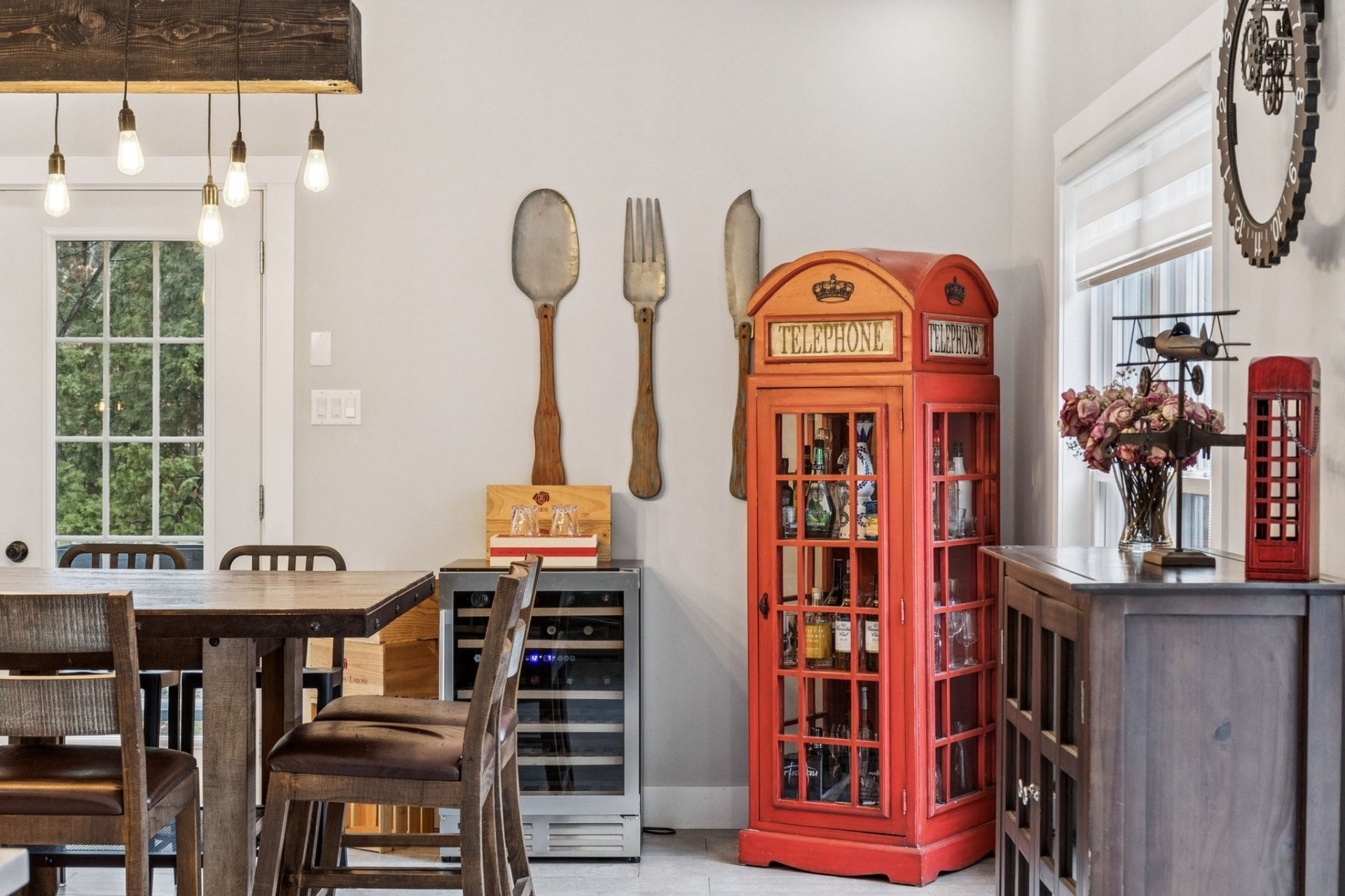 5 spacious bedrooms.3 full bathrooms, each featuring a large ceramic shower.1 powder room on the main floor. A large versatile space on the upper level, perfect for working from home, a playroom, or even a home theater.10-foot ceilings on the main floor. A welcoming kitchen with a peninsula and views of the backyard and wooded area. A dining room filled with natural light, open to the living room and providing access to the terrace.2 laundry rooms, including one in the basement. Hardwood staircases on all levels. Wood-burning fireplace in the living room. Radiant floors throughout the home, including the attached garage! Wall-mounted air conditioning.