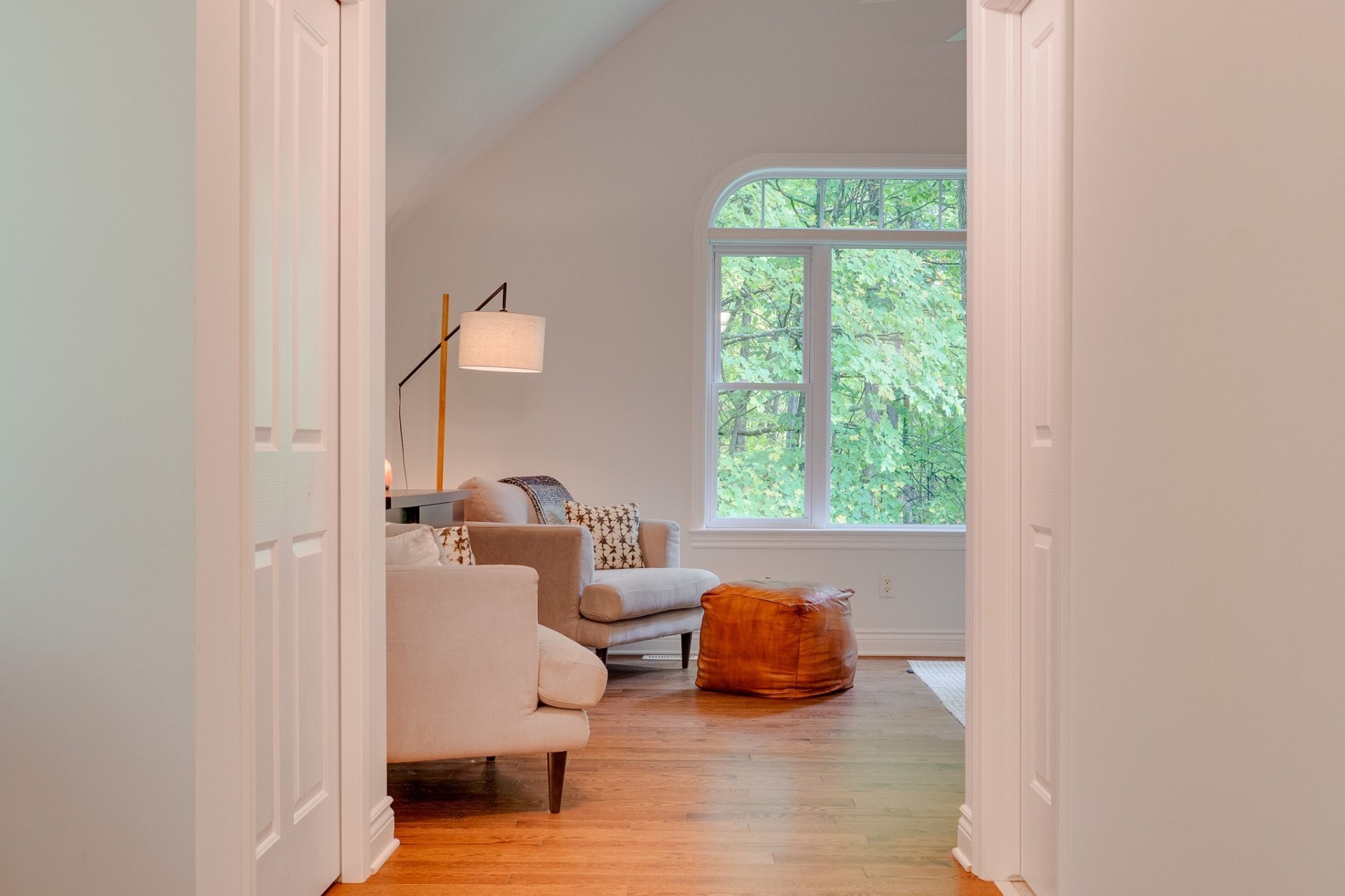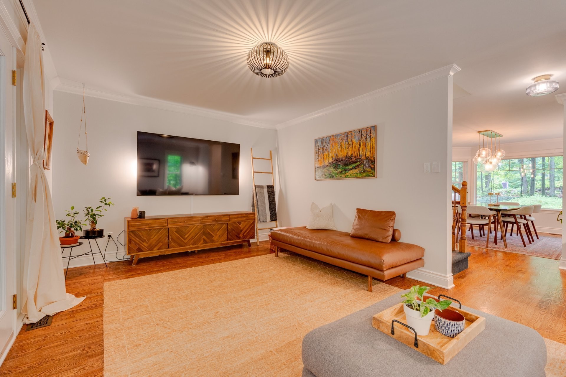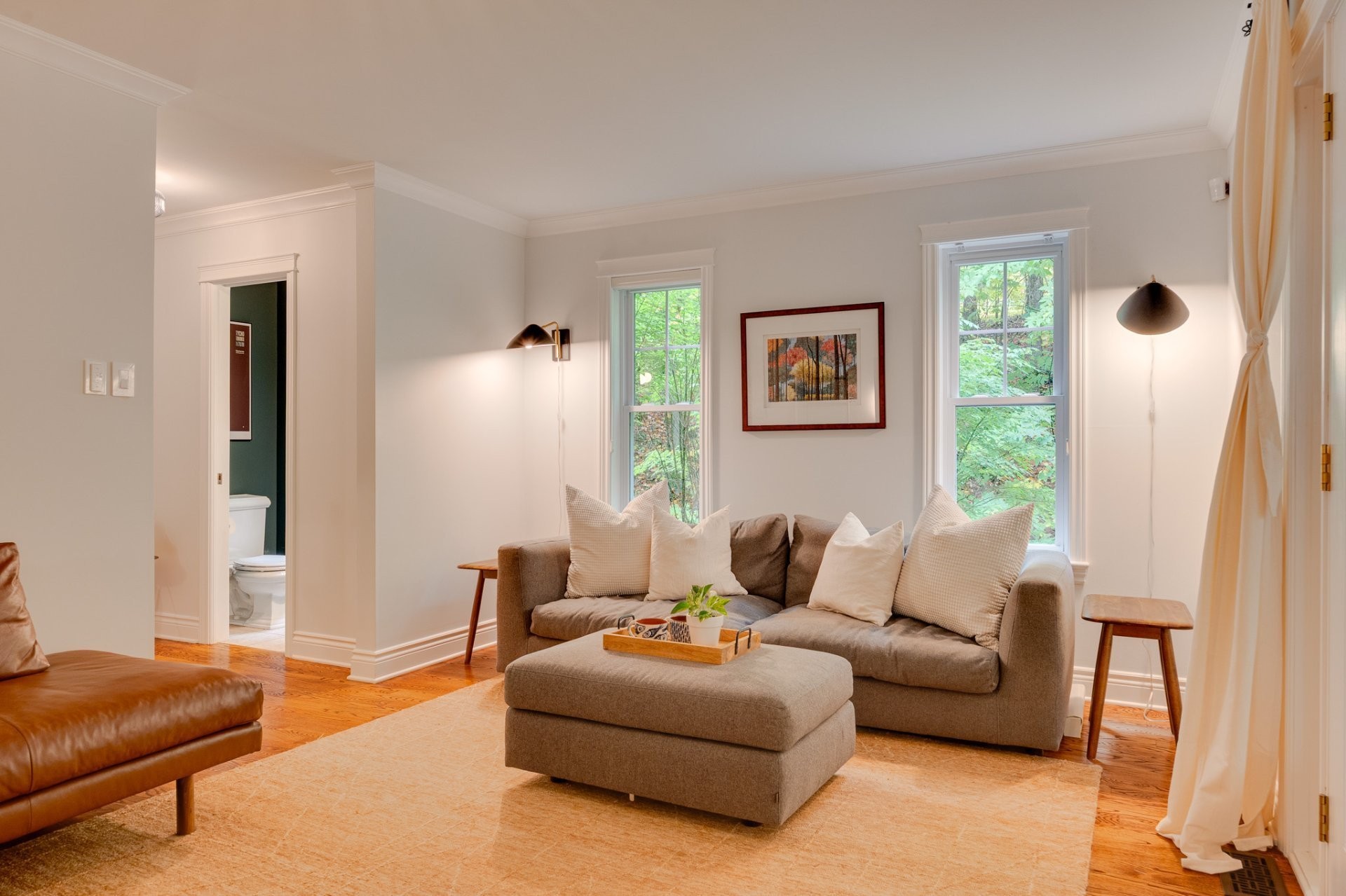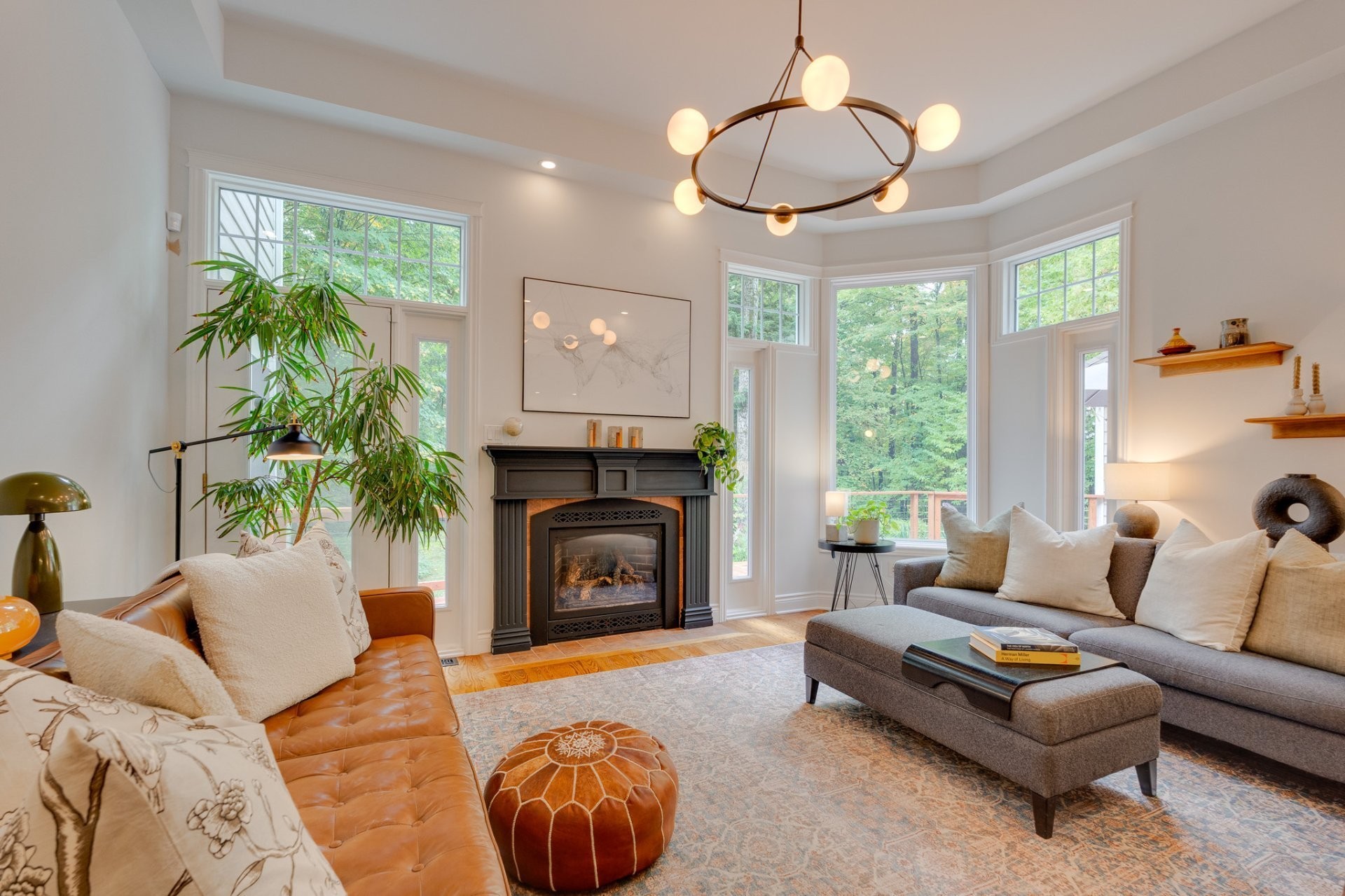 In the heart of Old Chelsea, this timeless craftsman-style home sits on a private two-acre wooded estate, just a 3-minute stroll from cafés, boutiques and galleries--and literally steps from Gatineau Park. Offering 3+1 bedrooms, deep porches and a screened-in veranda with pine ceilings, it blends comfort and character. Inside, a dining room with spectacular fenestration frames the landscape, complemented by open living spaces, oak floors and refined details. Outdoors, a pond with waterfall, firepit and a spa pavilion inspired by Nordic tradition create a retreat-like atmosphere. A rare opportunity in one of Chelsea's most coveted addresses.