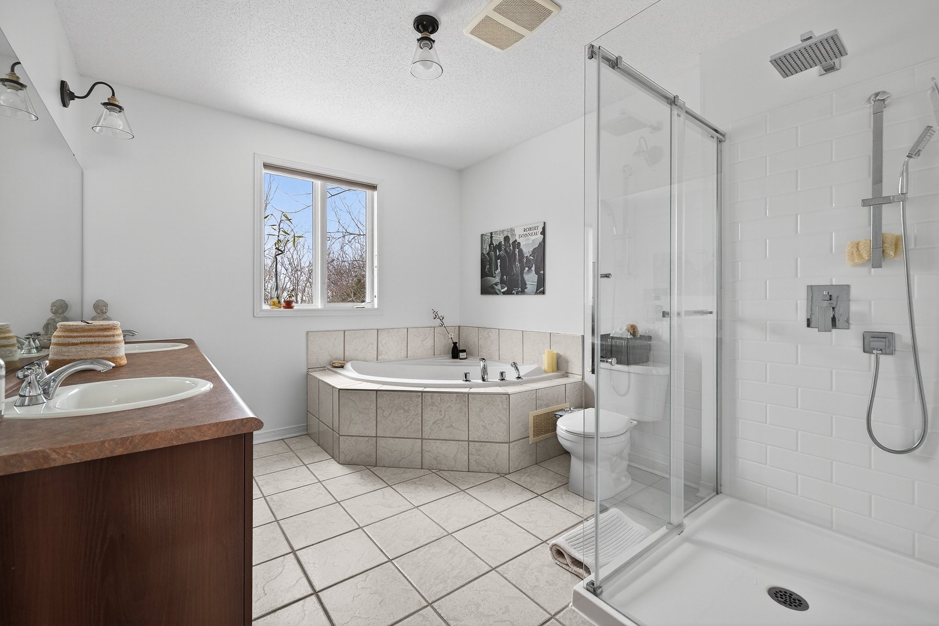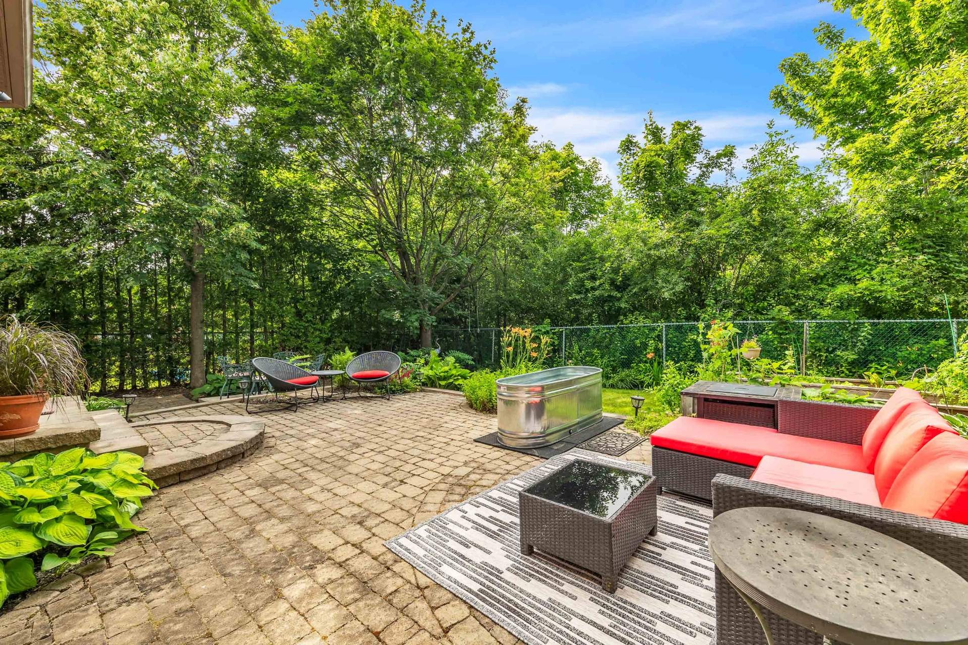 Outdoors, the allure continues with a fully landscaped private backyard -- a serene retreat framed by lush gardens and with no rear neighbours, offering a rare sense of privacy and sanctuary within the city. The outdoor terrace is finished with classic tumbled interlock in soft taupe tones, offering a European-inspired, old-world character that complements the lush natural surroundings. The interlocking stone driveway features elegant contrasting borders and thoughtfully integrated circular design elements, setting a sophisticated tone from the moment you arrive. Perfectly positioned, this home is within walking distance of several excellent schools, daycares, public transit, as well as many beautiful parks, making it ideal for family life, yet close enough to the vibrant heart of Ottawa to enjoy its cultural, culinary, and lifestyle amenities with ease. An address of distinction, a residence of remarkable quality -- this is refined living in one of Gatineau's most desirable neighbourhoods.