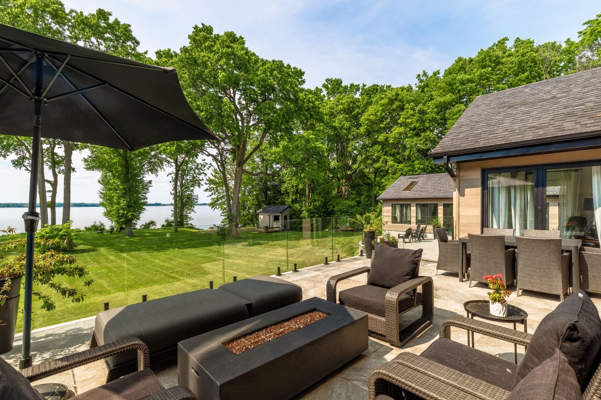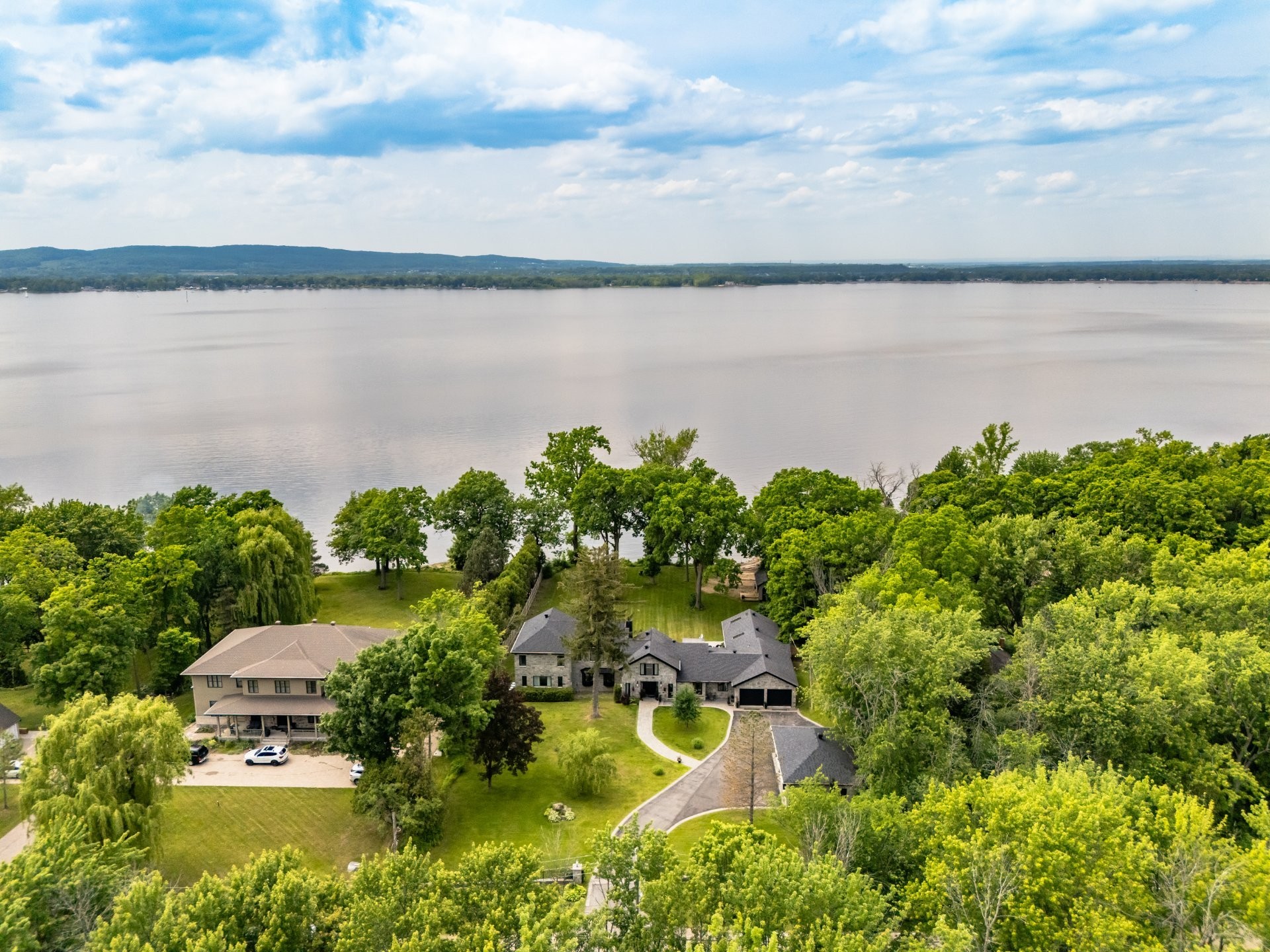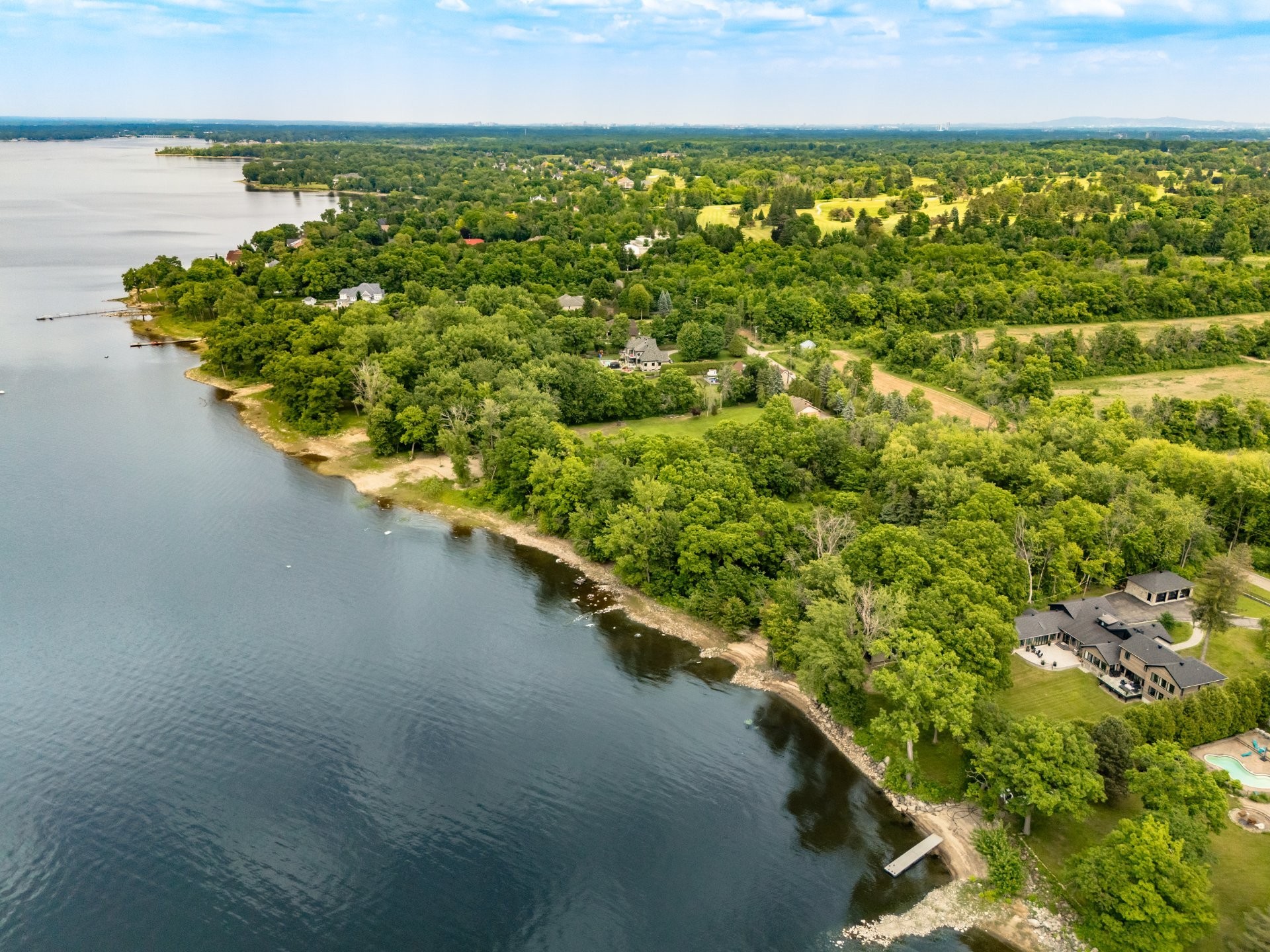 Handsome and imposing waterfront estate,in prime location,w/ panoramic views;this all-stone 7,348 sqft residence,set on a large 52,842 sq ft lot,was built and renovated to a high standard,w/ quality fixtures & finishes,and boasts 5-car garage(2 + 3),7 bedrooms,6.5 bathrooms(4 ensuite),luxury indoor pool pavilion + shower,bar,4 fireplaces,grand oak staircase(basement to 2nd floor),porcelain and hardwood floors (1st & 2nd),chef's custom wood kitchen with premium appliances,dinette,formal dining room,2 living rooms,games room/family (cinema) room,primary bedroom suite,custom walk-ins,balcony & large unistone patio,private backyard & sandy beach.