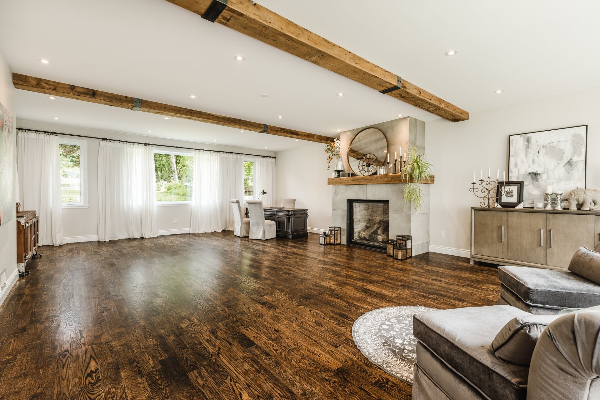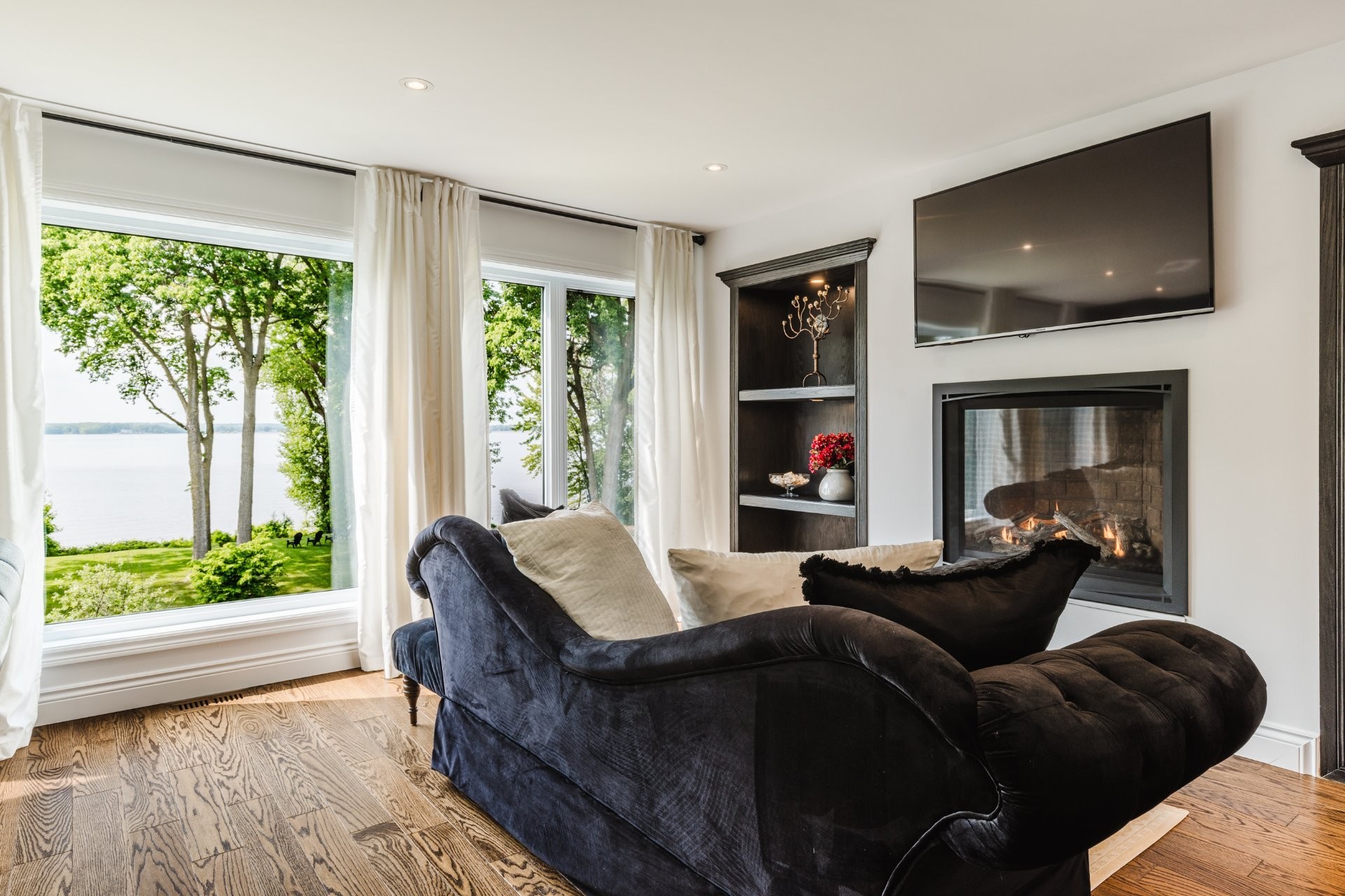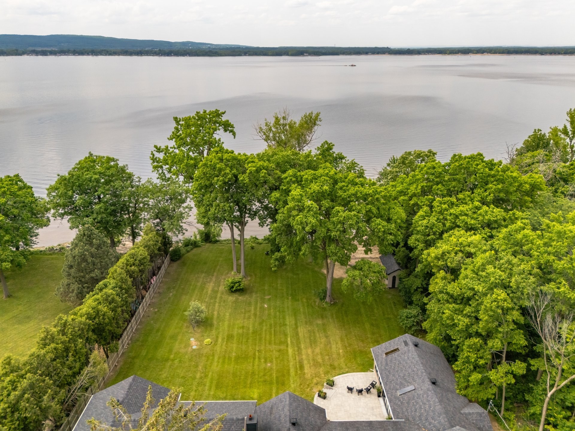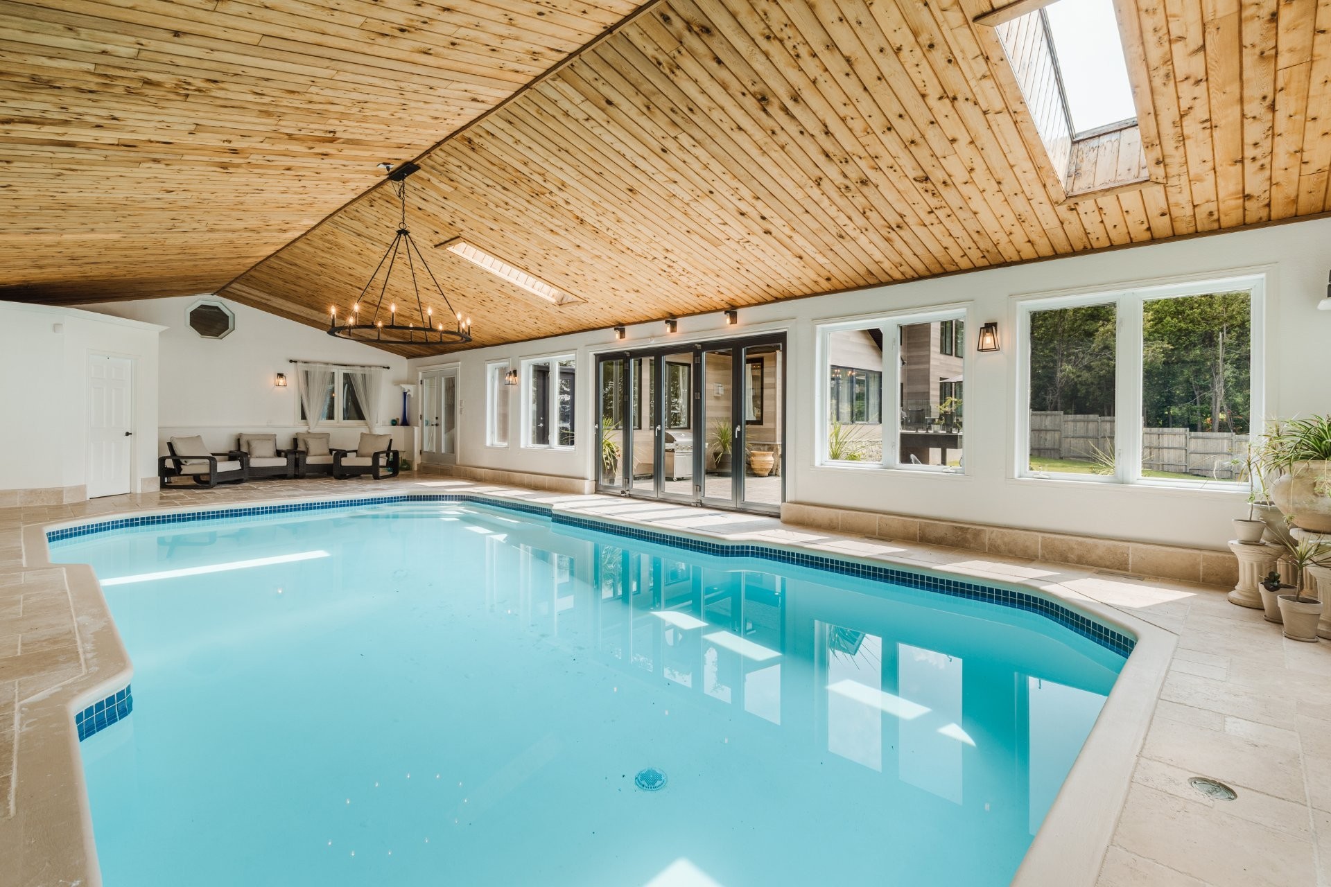 Handsome and imposing waterfront estate,in prime location,w/ panoramic views;this all-stone 7,348 sqft residence,set on a large 52,842 sq ft lot,was built and renovated to a high standard,w/ quality fixtures & finishes,and boasts 5-car garage(2 + 3),7 bedrooms,6.5 bathrooms(4 ensuite),luxury indoor pool pavilion + shower,bar,4 fireplaces,grand oak staircase(basement to 2nd floor),porcelain and hardwood floors (1st & 2nd),chef's custom wood kitchen with premium appliances,dinette,formal dining room,2 living rooms,games room/family (cinema) room,primary bedroom suite,custom walk-ins,balcony & large unistone patio,private backyard & sandy beach.