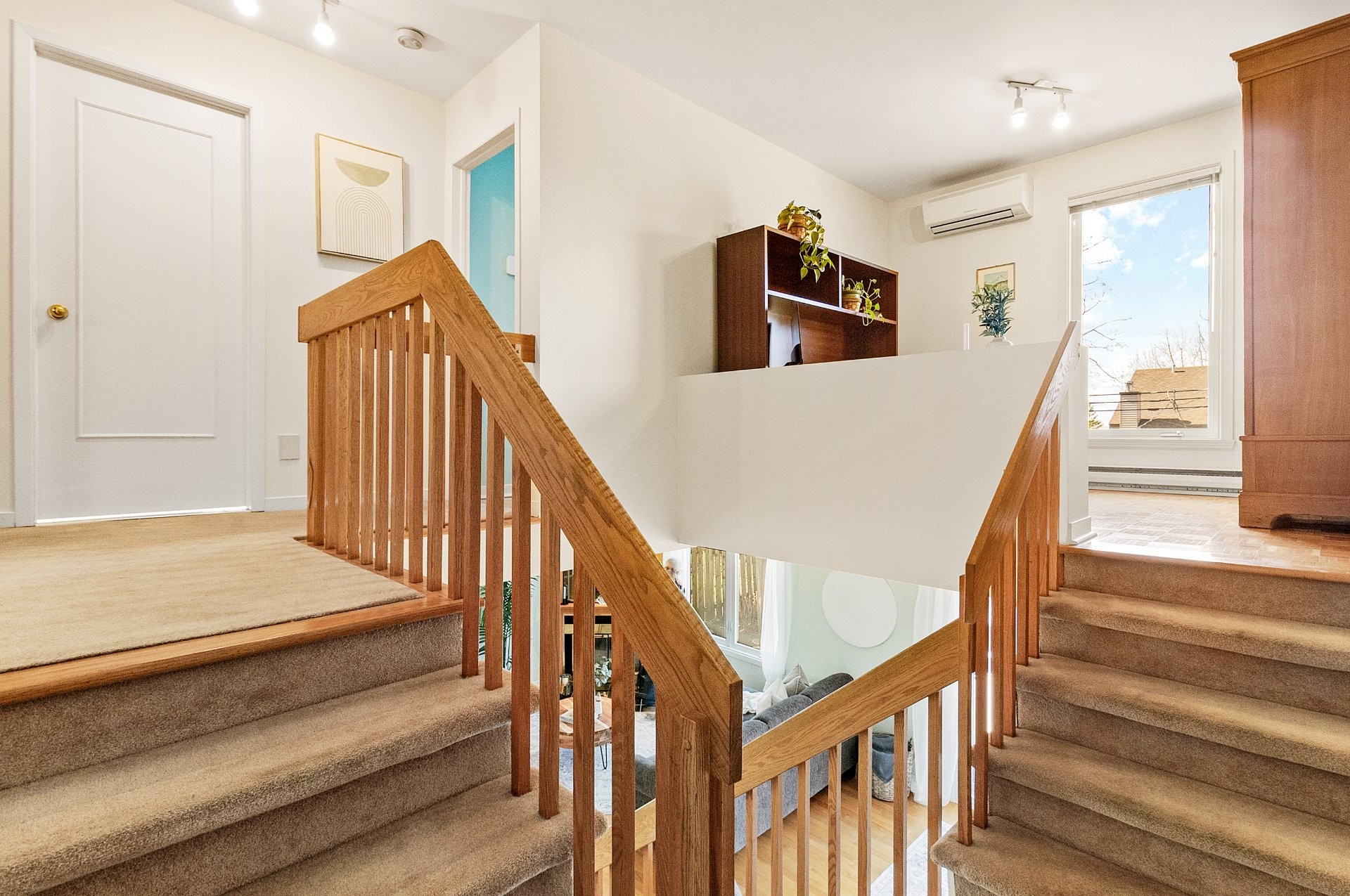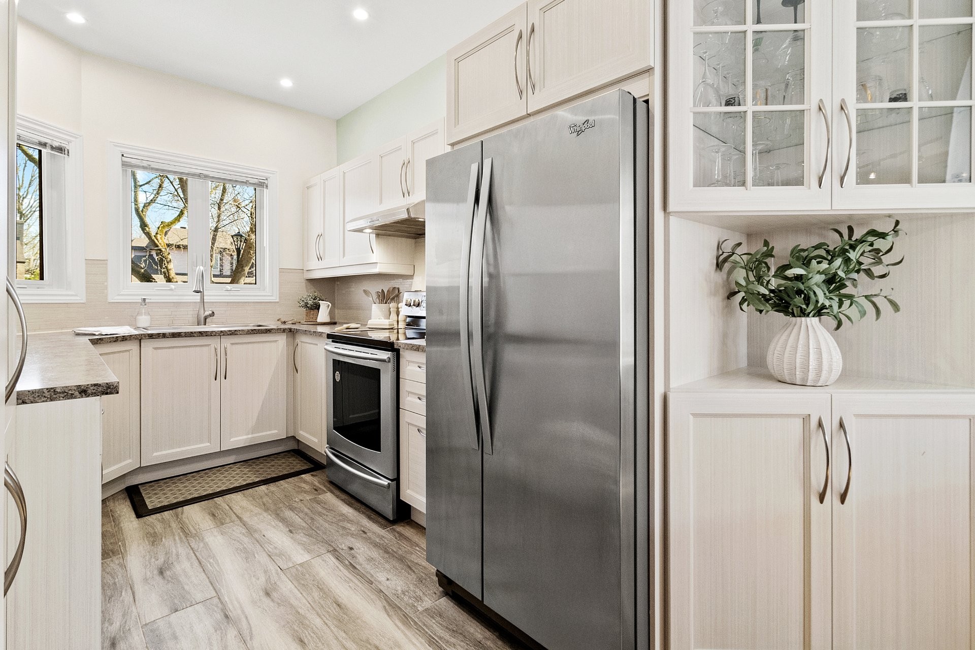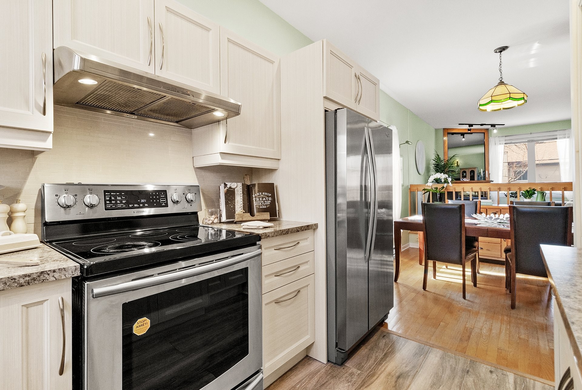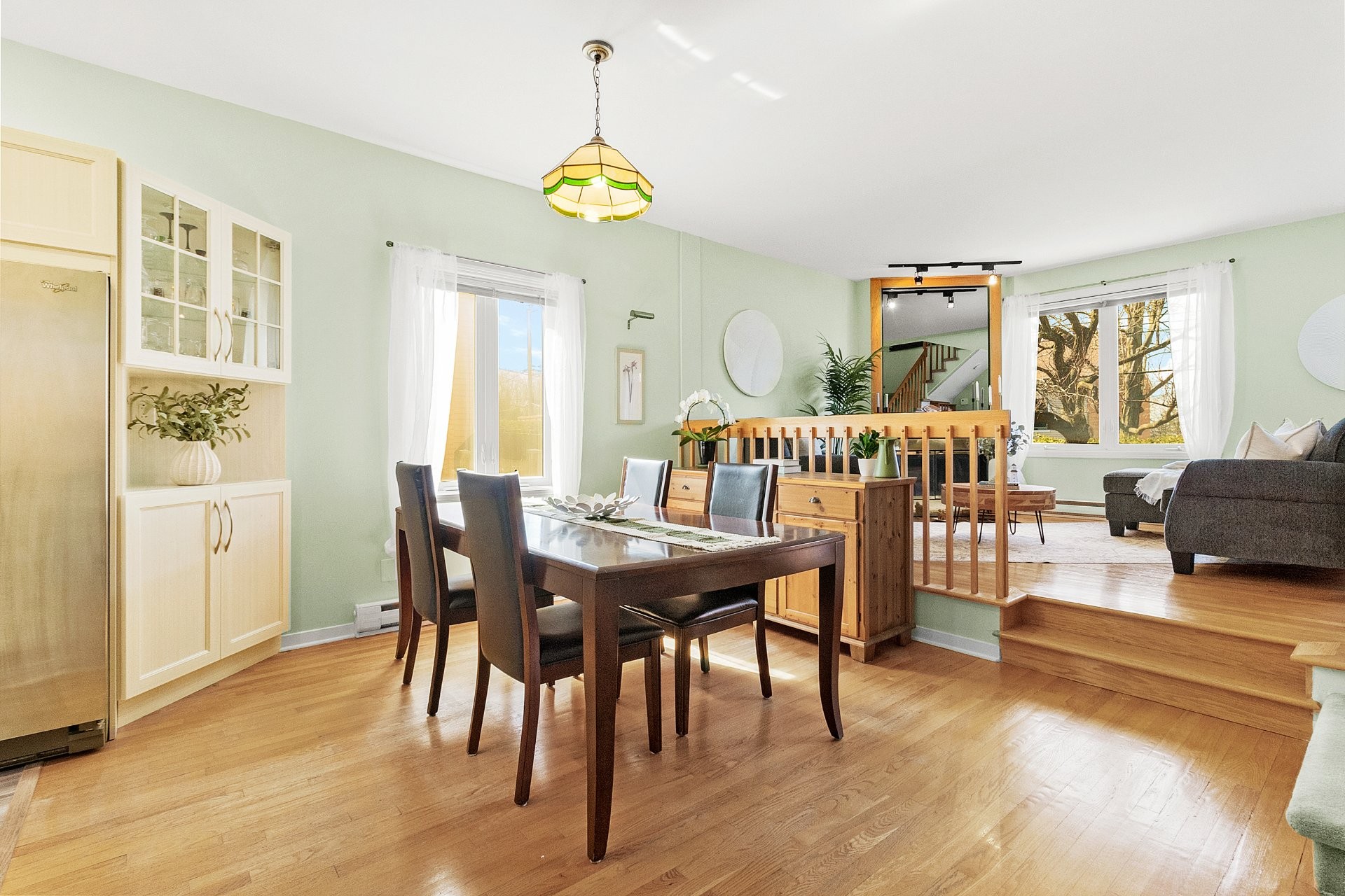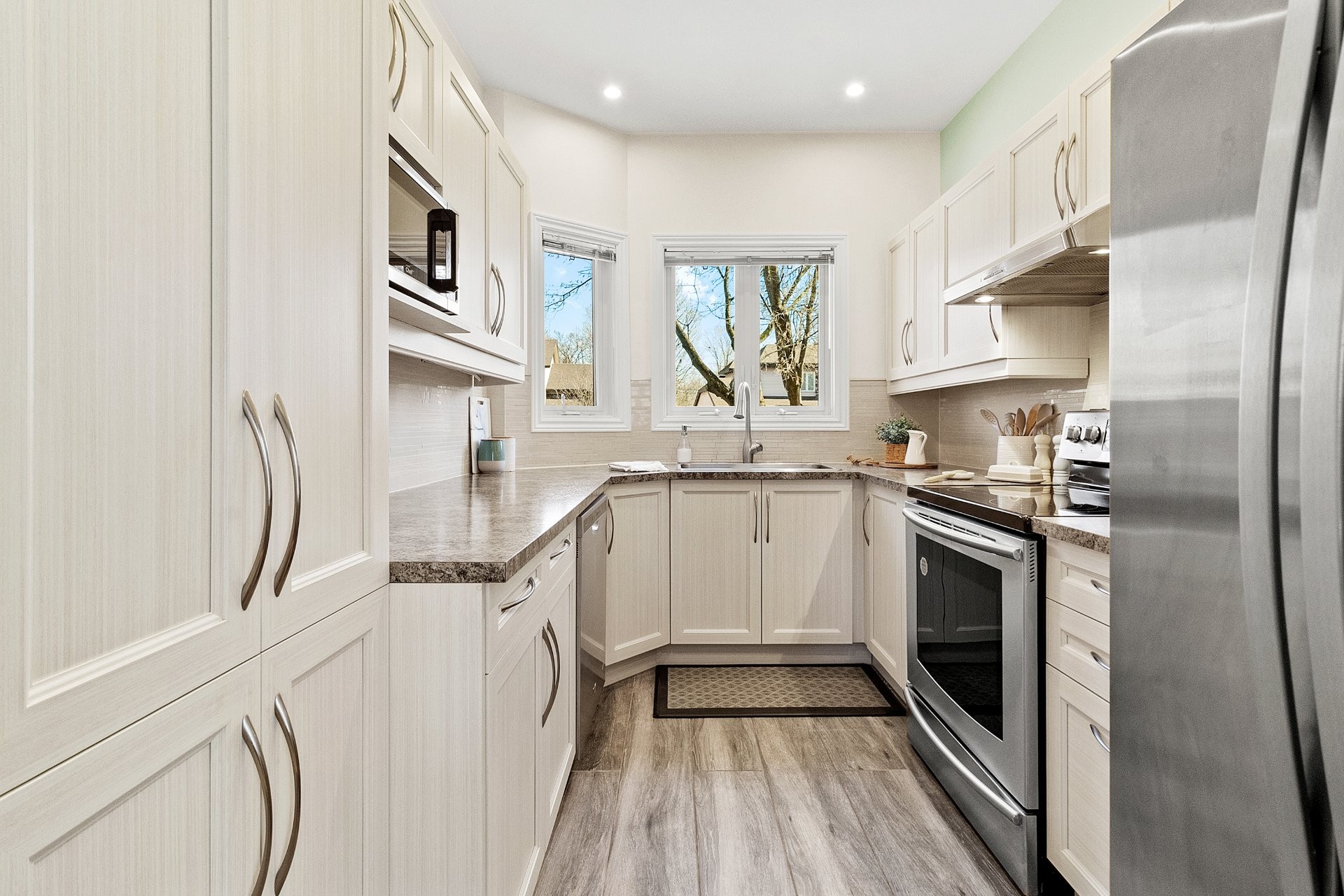 Welcome to this large, solidly constructed semi-detached townhouse in the sought-after Pierrefonds West area - offering more living space than many detached homes. Ideally located near highways, restaurants, and shopping, this property combines convenience with a peaceful setting. Meticulously maintained over the years, the home has benefited from numerous renovations, including an updated kitchen, and modernized bathrooms. The standout feature is the expansive, spa-like primary bathroom, complete with a separate shower and luxurious soaker tub - your own private retreat. A bright top floor mezzanine provides the perfect space for a home office or lounge area, with the potential to be converted into a third bedroom. Additional flexibility is available in the basement for future customization. Enjoy outdoor living with a large front terrace- ideal for morning coffee- and a private backyard featuring a deck, perfect for entertaining or relaxing. The garage is equipped with an epoxy floor and an organized storage system, with pulley system, adding both style and functionality. Situated on a quiet dead-end street, this home is next to a vast green space with parks, trails, and walking paths - perfect for families and outdoor enthusiasts alike. Easy to maintain and affordably priced, this is a rare opportunity in a desirable neighbourhood. Homes like this don't stay on the market for long