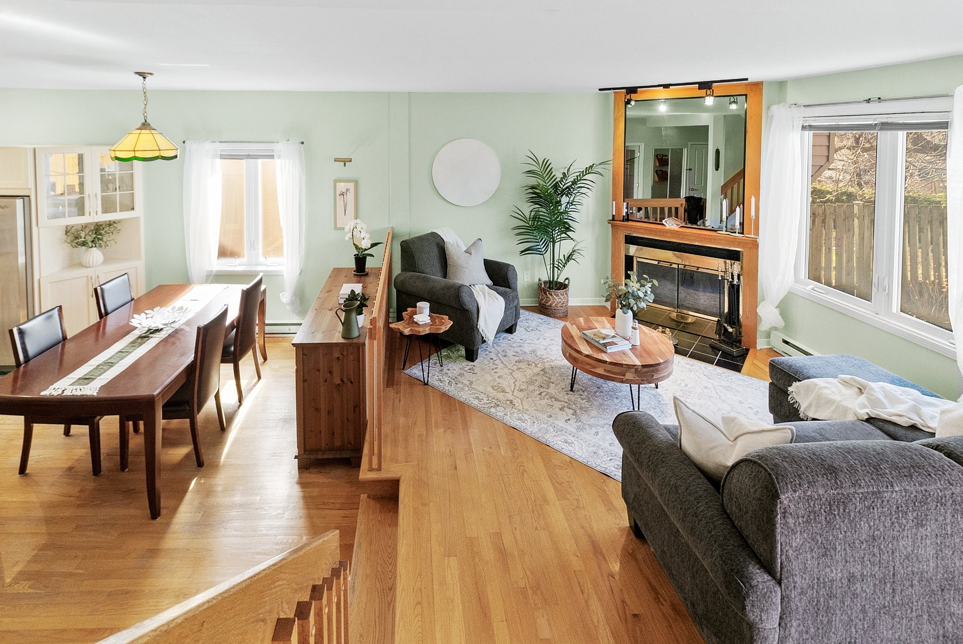 Introducing this large, solidly built, semi-detached townhome in Pierrefonds West - offering more space than many detached homes.Ideally located near highways, shopping, and restaurants.Meticulously maintained over the years with several renovations including kitchen and bathrooms.Spacious Bedrooms, with spa-like primary bathroom featuring a separate shower and luxurious soaker tub.Bright mezzanine ideal for office or lounge, with potential for a 3rd bedroom.Large front professional terrace and private backyard with deck.Garage with epoxy floors and storage system.Quiet dead-end street facing green space with parks and trails. Don't miss out!