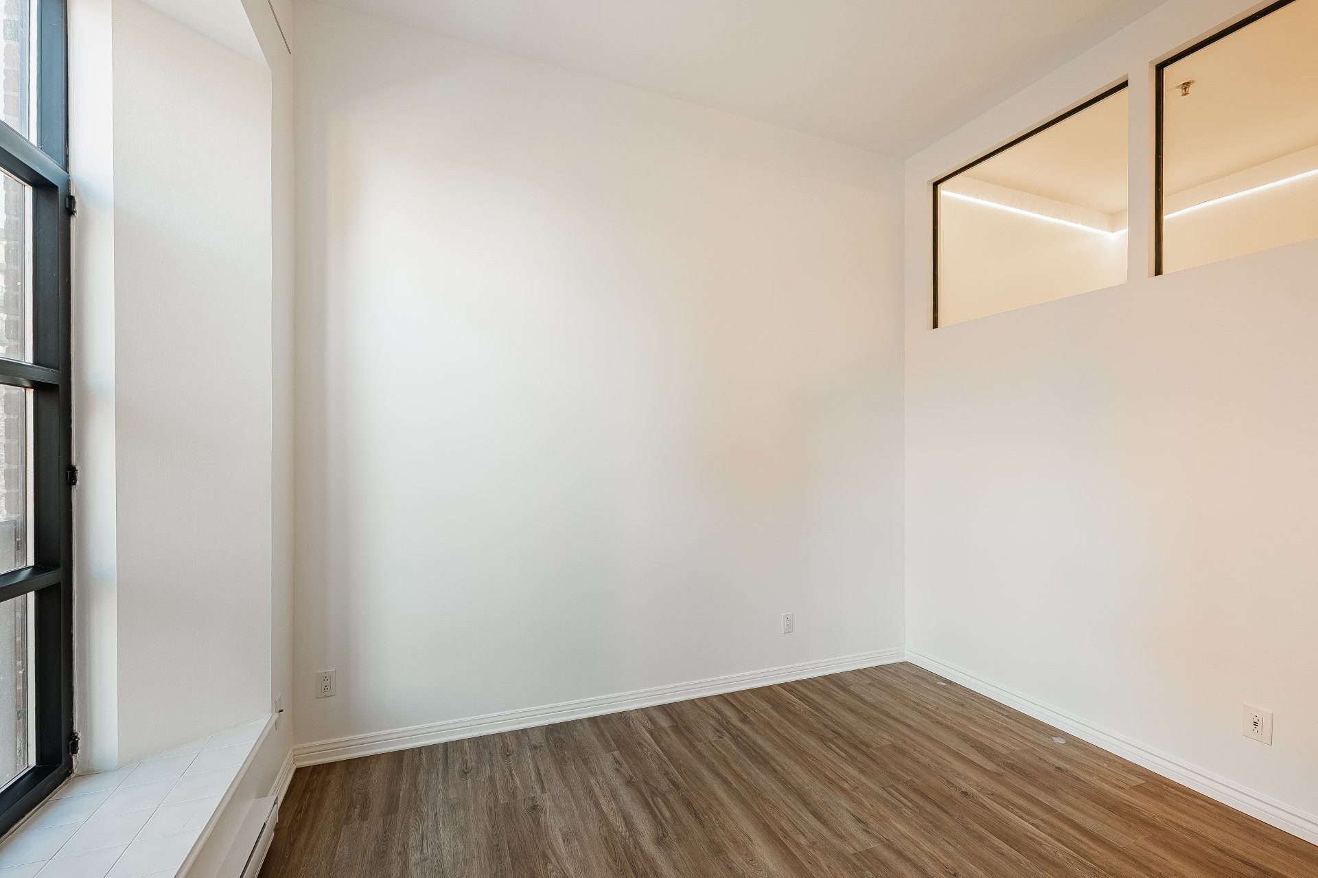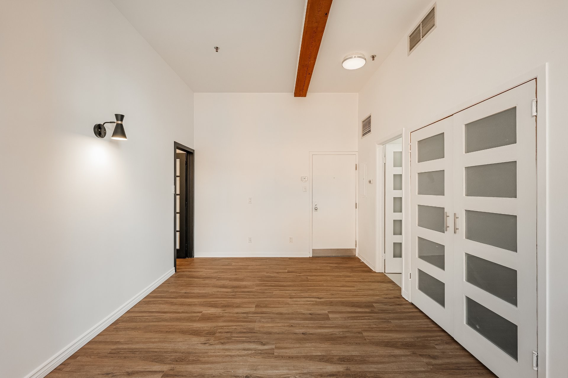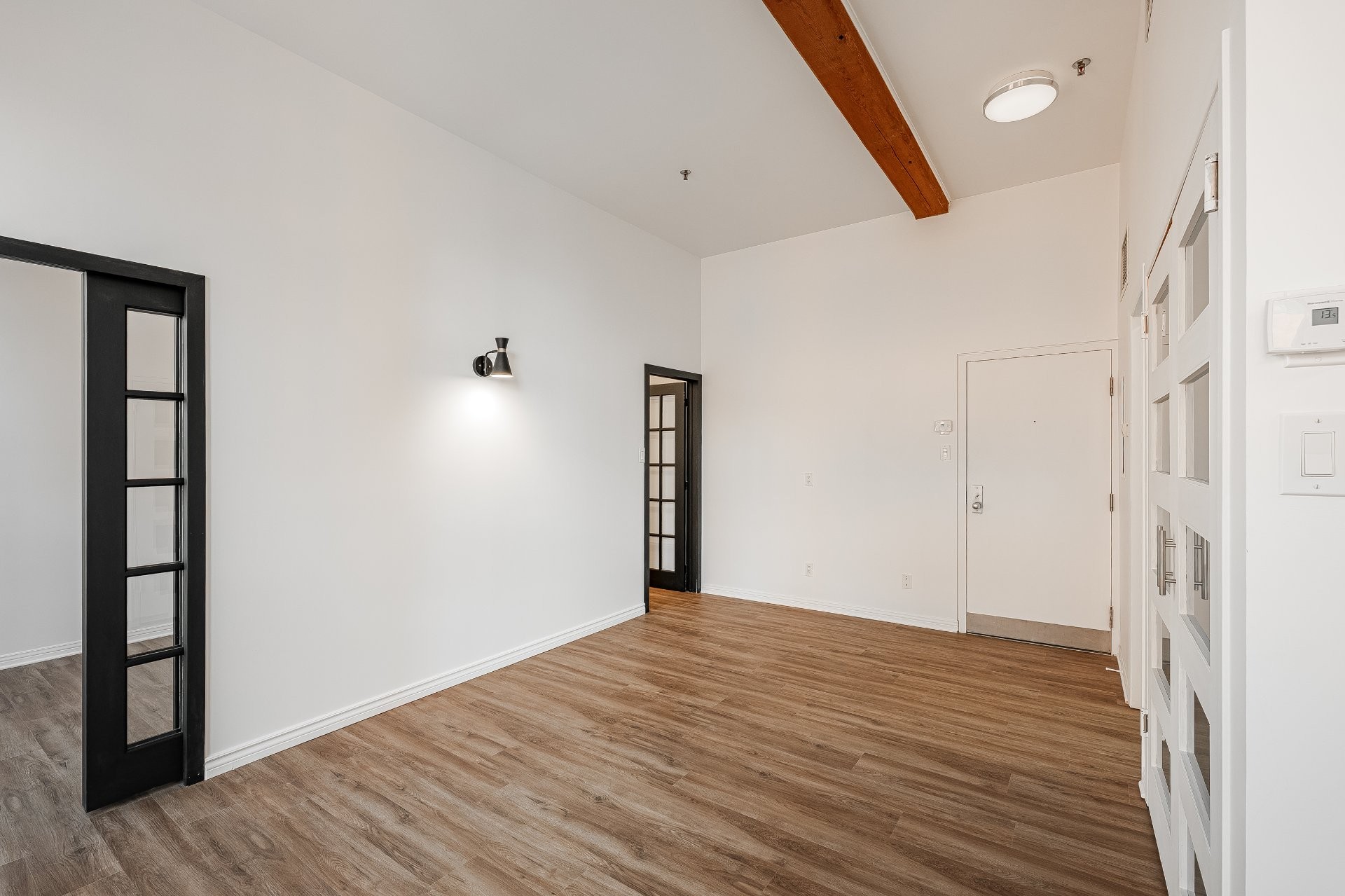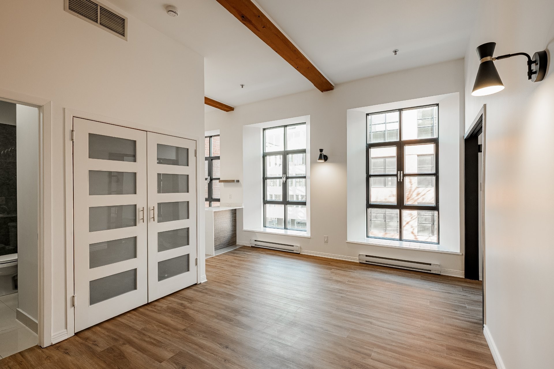 Stunning 3rd floor condo at the Corticelli Lofts! Located in the vibrant community of Pointe-Saint-Charles. A condo complex perched along the Lachine canal with integrated waterways flowing amongst the buildings - unlike anything in Montreal! One bedroom condo with separate office. New flooring, quartz kitchen counters and A/C system. Wood beams & over 10 feet high ceilings accented with tall black windows - a hallmark esthetic of this historic building's origin. Enjoy views from the 3rd floor of the trees & peaceful waterway below. Storage locker and parking tag for the complex's communal parking lot included! Available immediately.