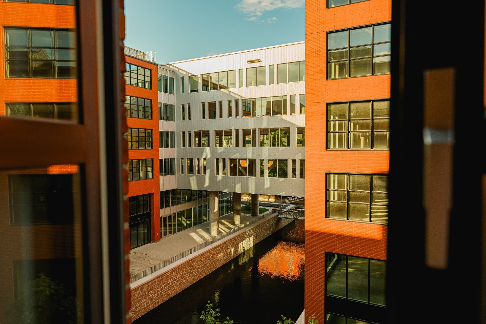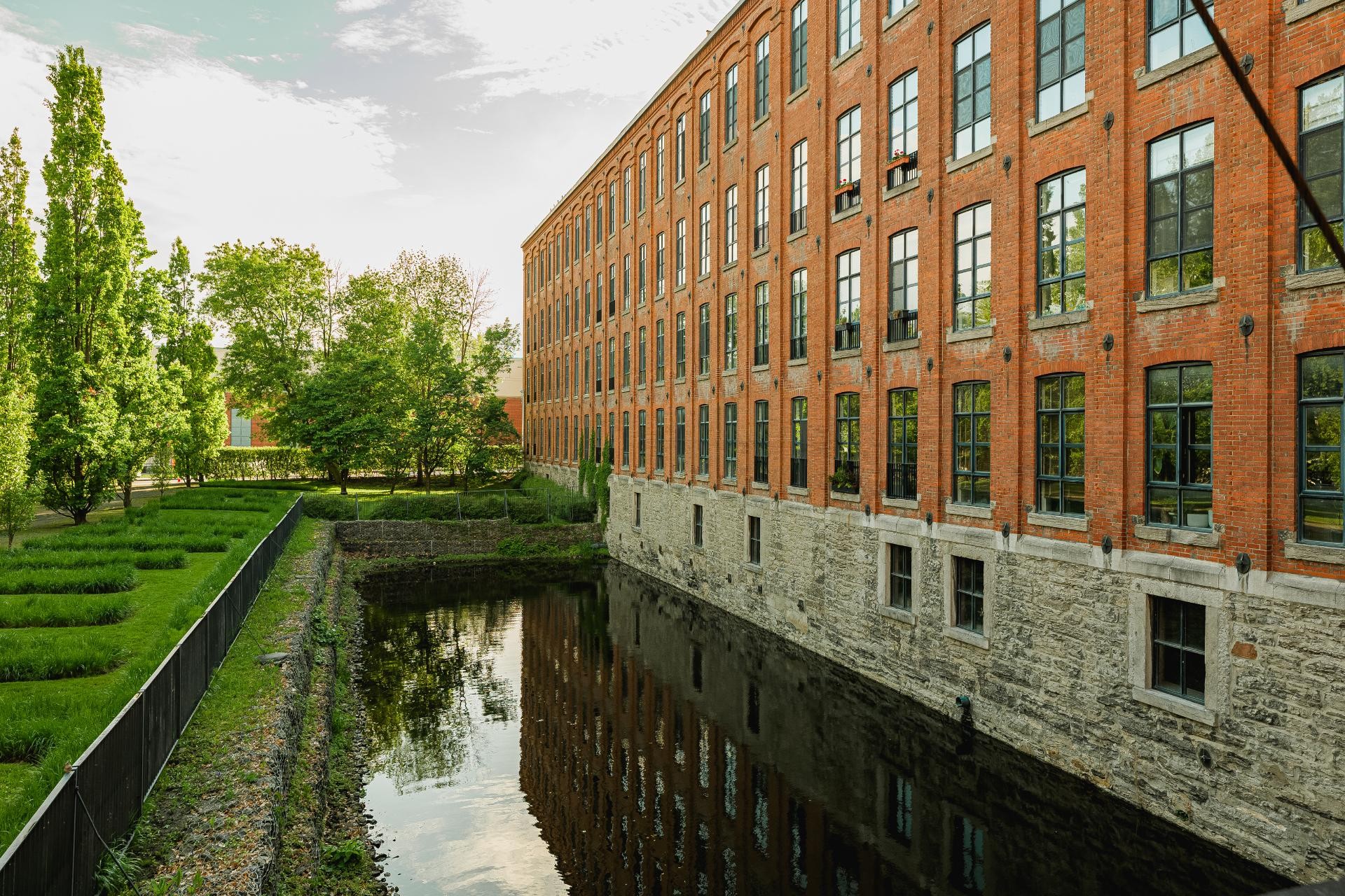 The Corticelli Lofts is a building emanating historical charm and European flair. This magnificent 1904 red brick and stone building, once a factory, was converted to condos in 1989. Maintained with precision and an emphasis on preserving original details like gorgeous masonry, wooden beams and posts throughout. A complex truly reminiscent of Venice or Amsterdam, surrounded by winding waterways, beautiful grounds and lush gardens.