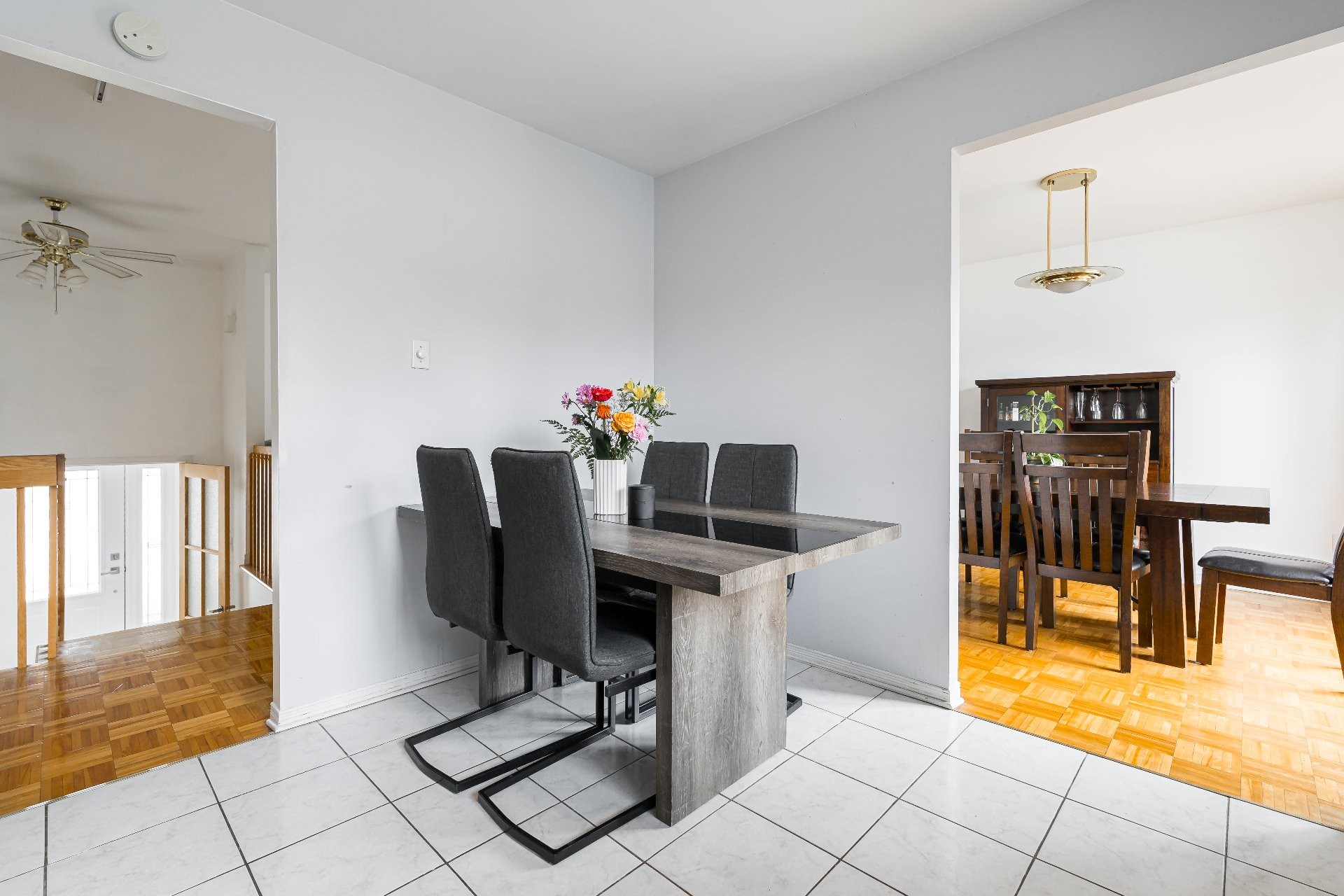 As you enter, you are welcomed by an expanded foyer with double doors. A few steps up, you'll find the bright and inviting main living area, including the living room, dining room, and kitchen, perfect for everyday living and entertaining. Continuing up another short flight of stairs are three well-sized bedrooms and a full bathroom.