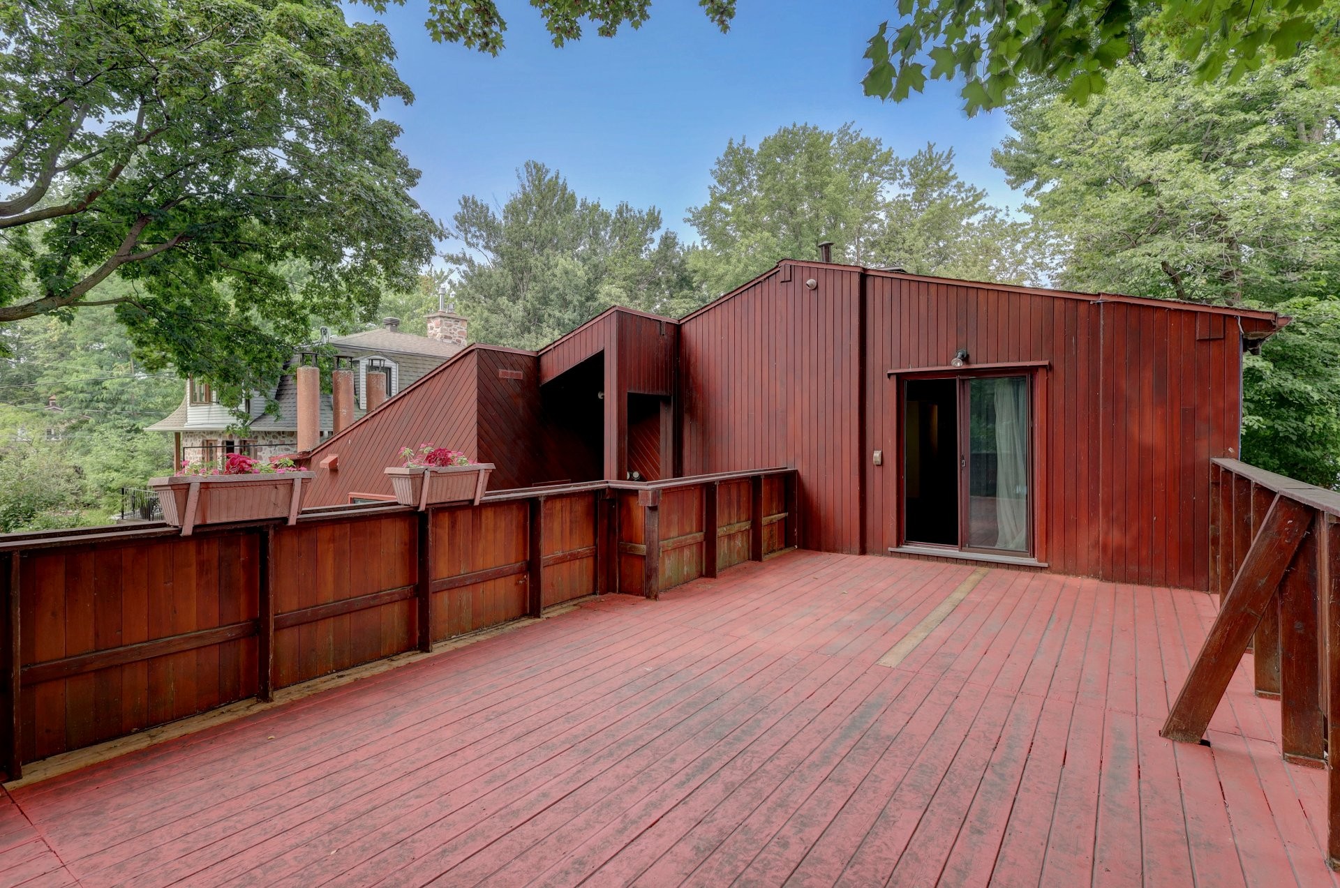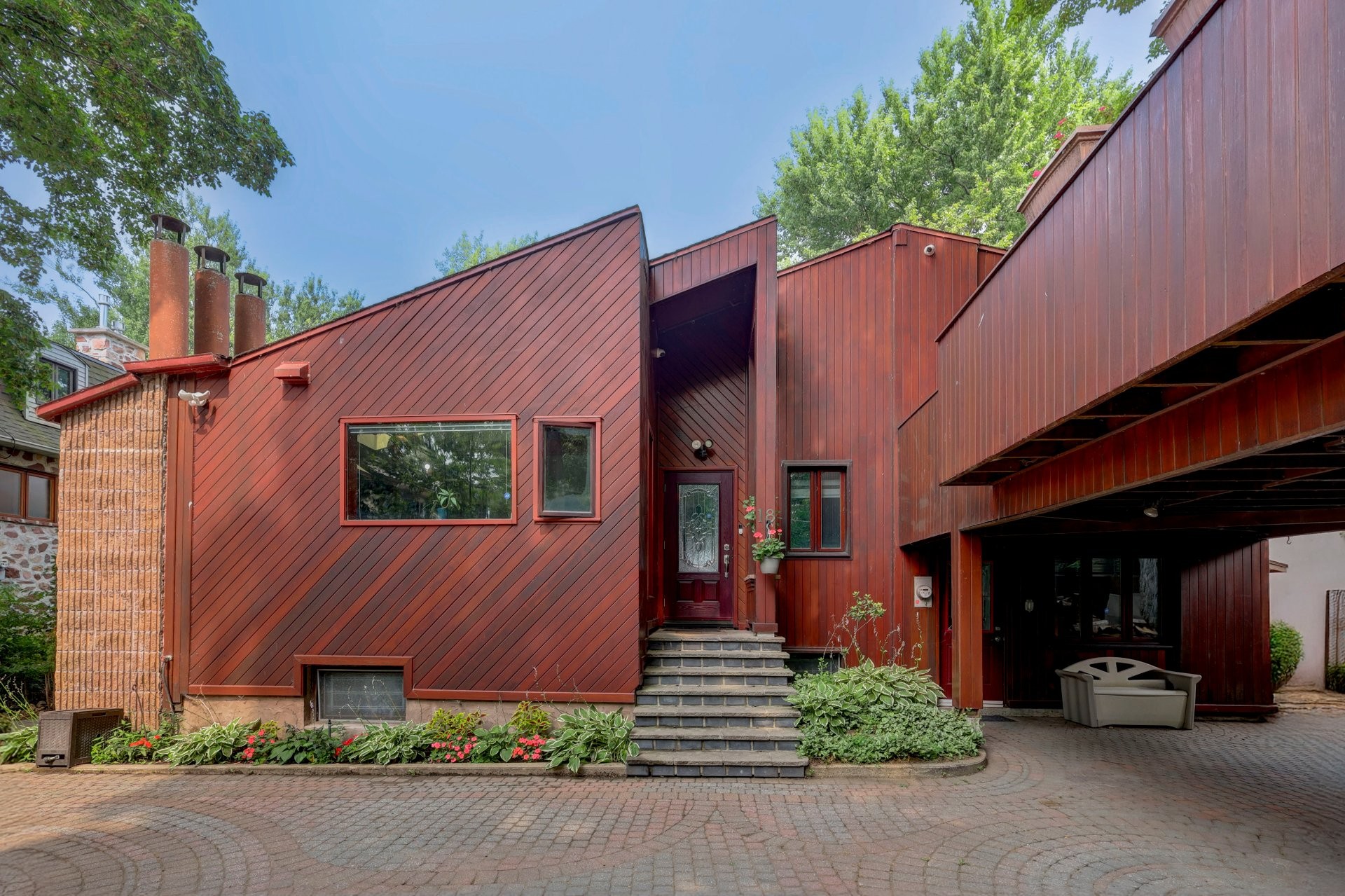 The garden-level entrance leads to two bedrooms and a full bathroom, one bedroom offering direct access to the patio and yard. The upper level is home to two additional bedrooms and a full bathroom. The front bedroom has a private 26'x15' wooded balcony, perfect for enjoying morning coffee or evening sunsets.