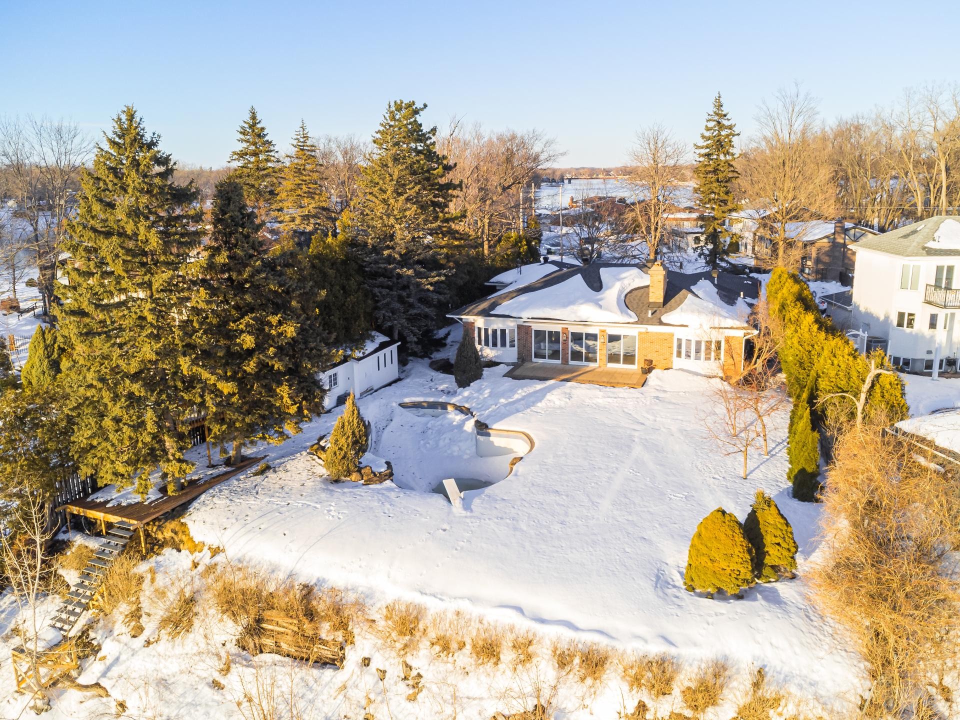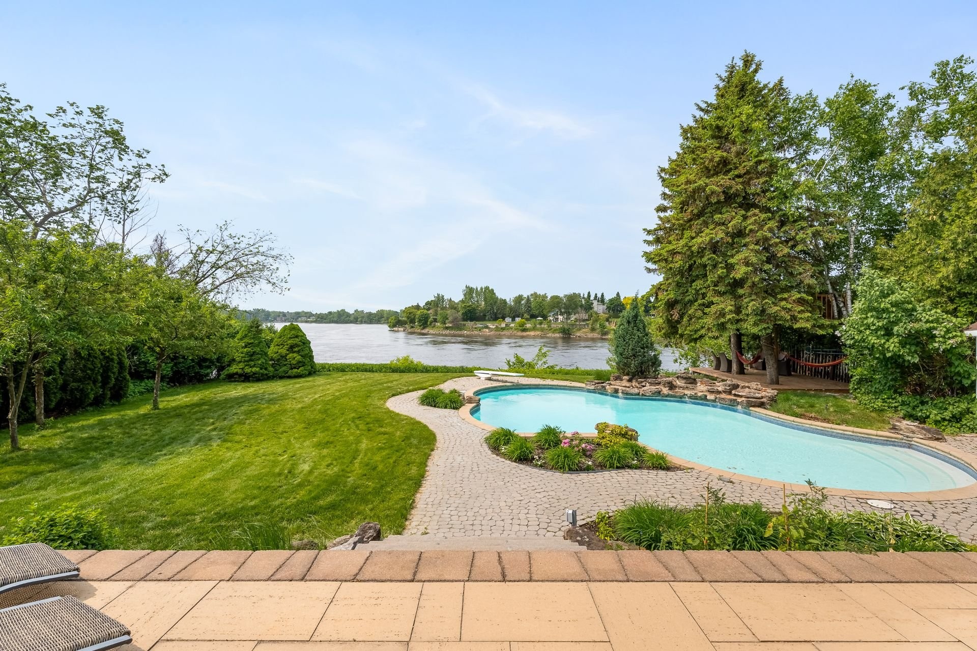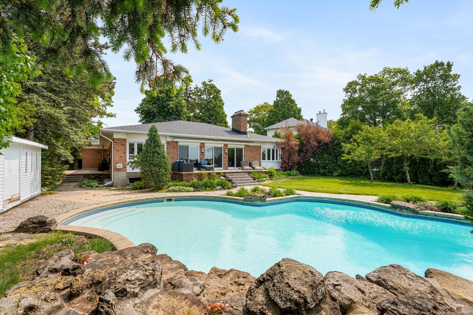 A breathtaking waterfront residence nestled along the shores of the Rivière-des-Prairies. This sprawling bungalow features 7 spacious bedrooms and 3.5 luxurious bathrooms, with elegant living spaces designed to meet the highest standards of refinement. The property also includes a stunning inground pool overlooking the river, perfect for outdoor relaxation and entertaining. Situated in the prestigious L'Île-Barwick community, this rare gem presents an unparalleled opportunity.