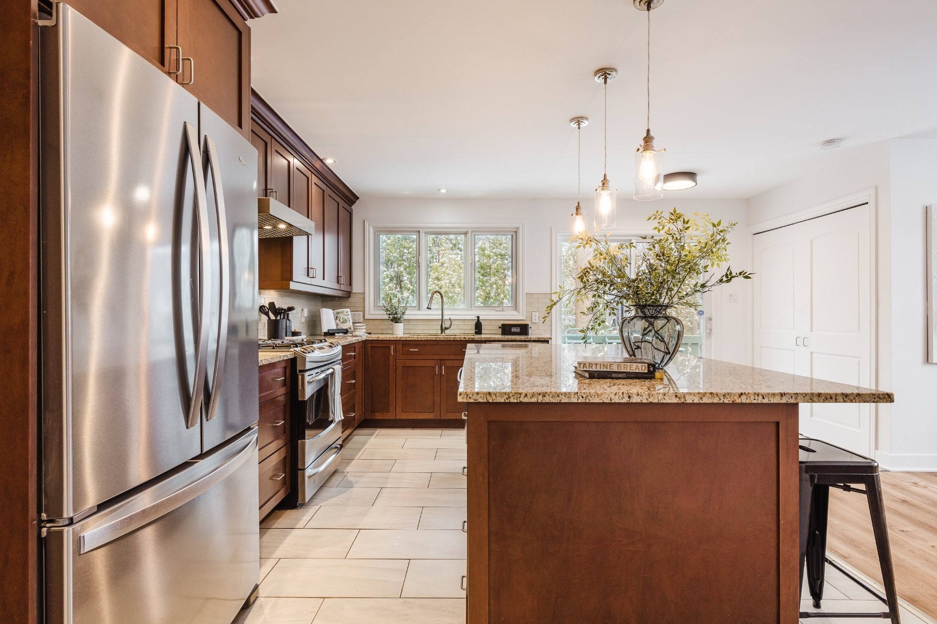 This bright and freshly updated split-level home sits on a quiet, tree-lined street with wholesome curb appeal. Featuring 4 spacious bedrooms, 2.5 baths, a chef's kitchen, an open dining area, and a large family room with access to the backyard and garage. Enjoy a private 7,000 sq ft lot with a deck, perfect for entertaining. Walk to Sherbrooke Academy, parks, pool, and bike paths. Minutes from transit, Hwy 20, and St-Charles Blvd. Lovingly maintained with recent updates, come see it for yourself!