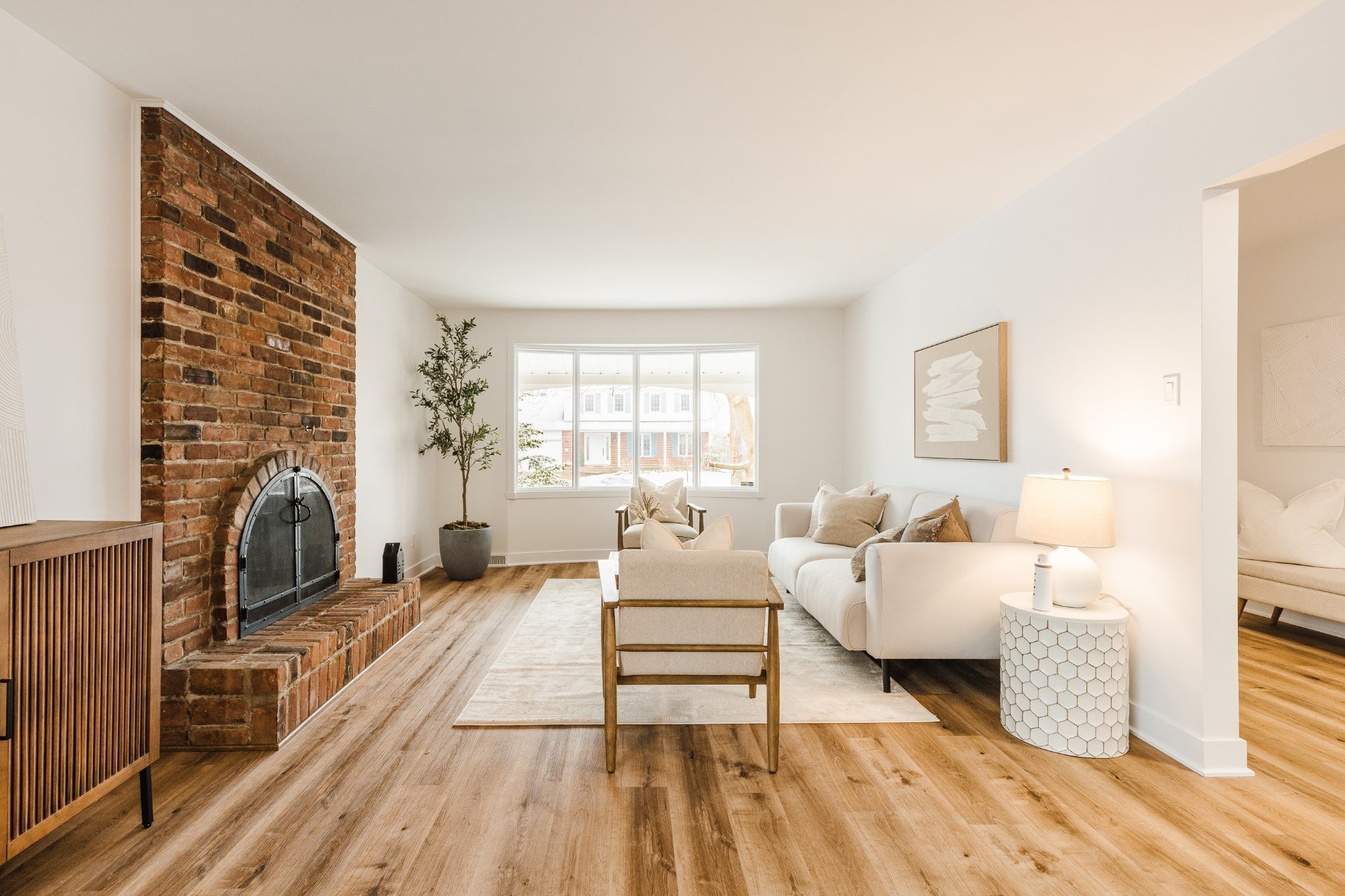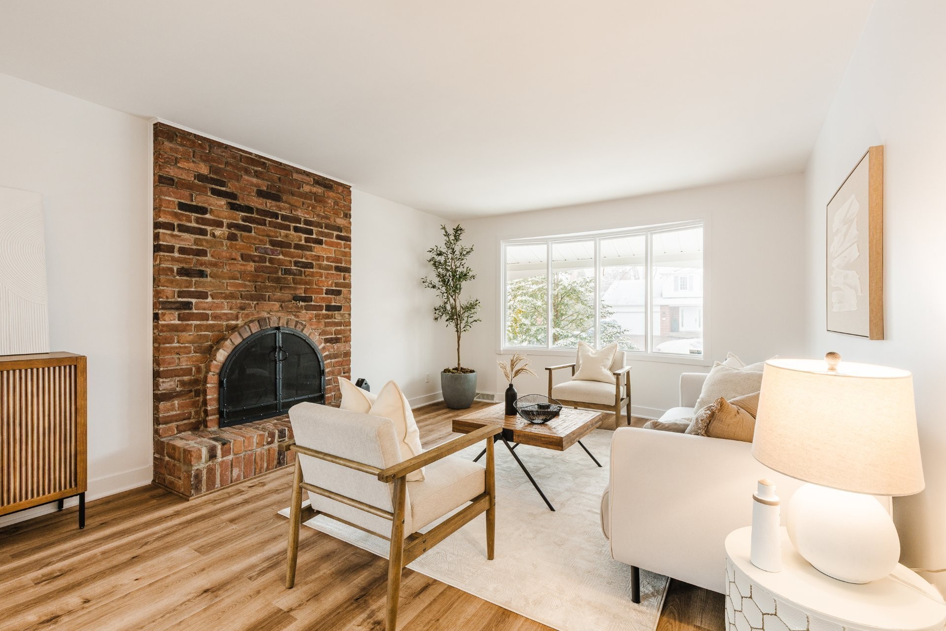 This bright and airy split-level home sits on a quiet, tree-lined street and will instantly capture your heart with its mature landscaping, elegant stone wall, and inviting curb appeal.